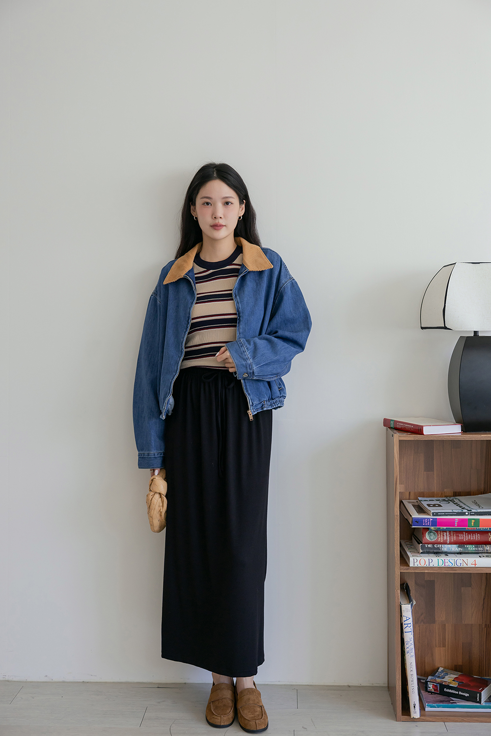 布魯克林街頭 拚色領拉鍊牛仔外套