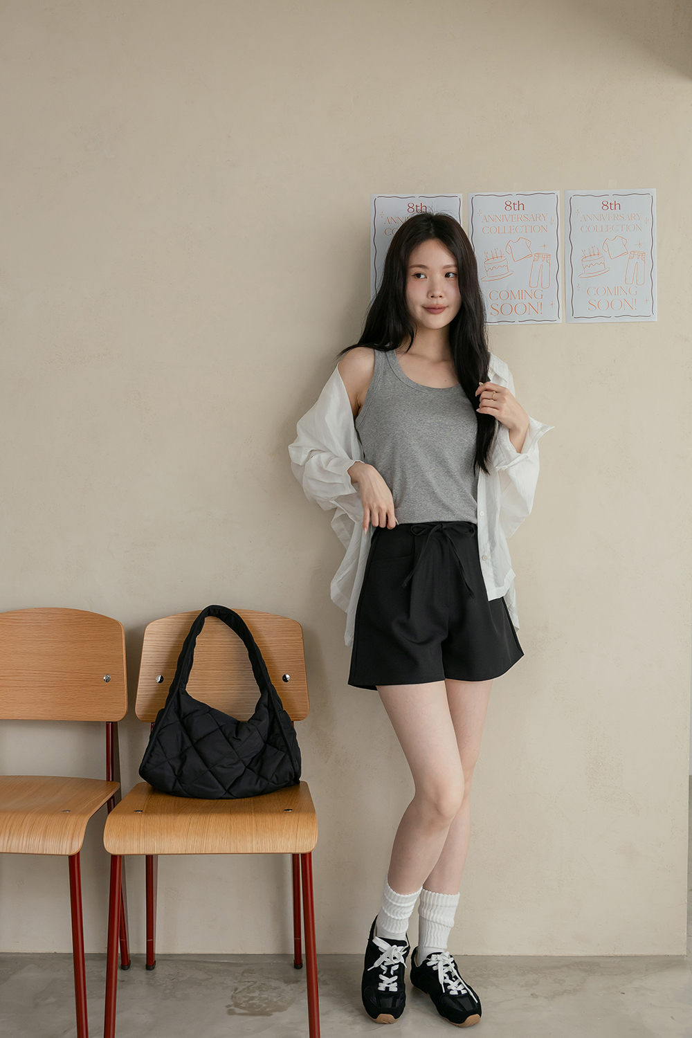 挺料的厚雪紡加上打褶設計的西裝短褲