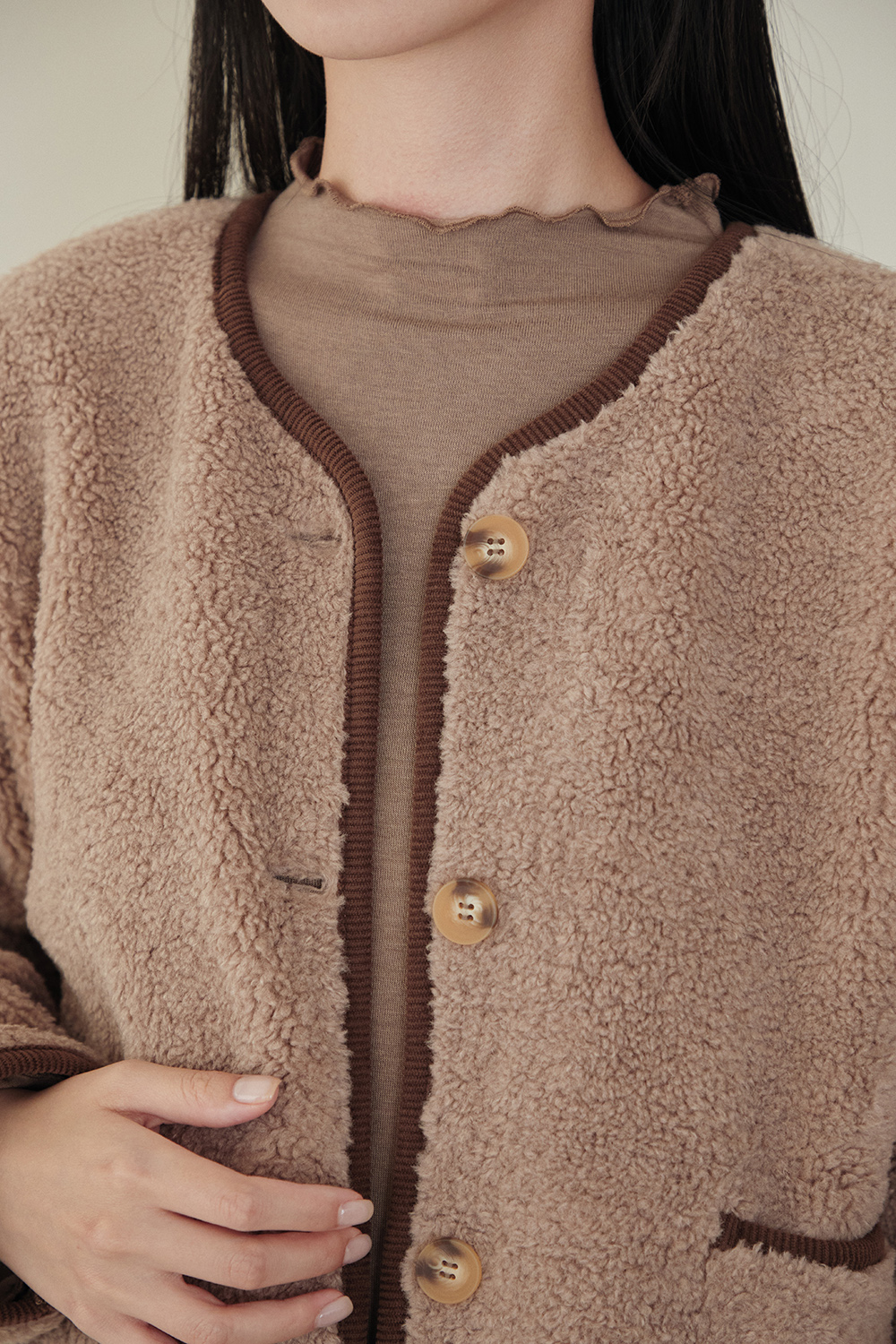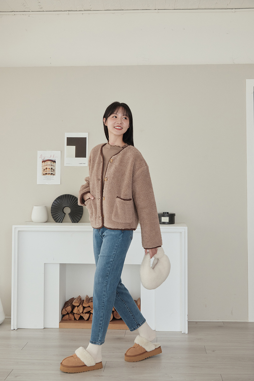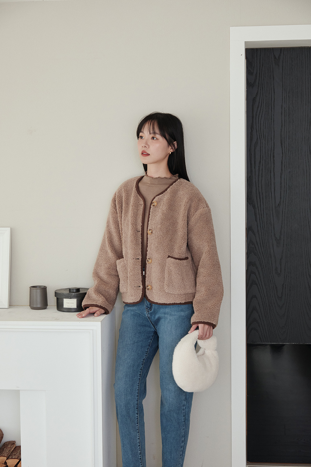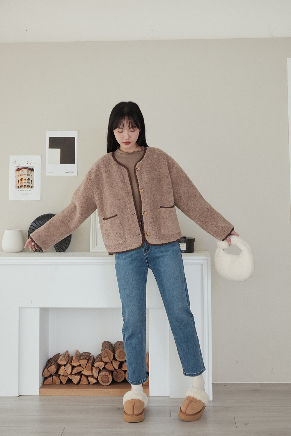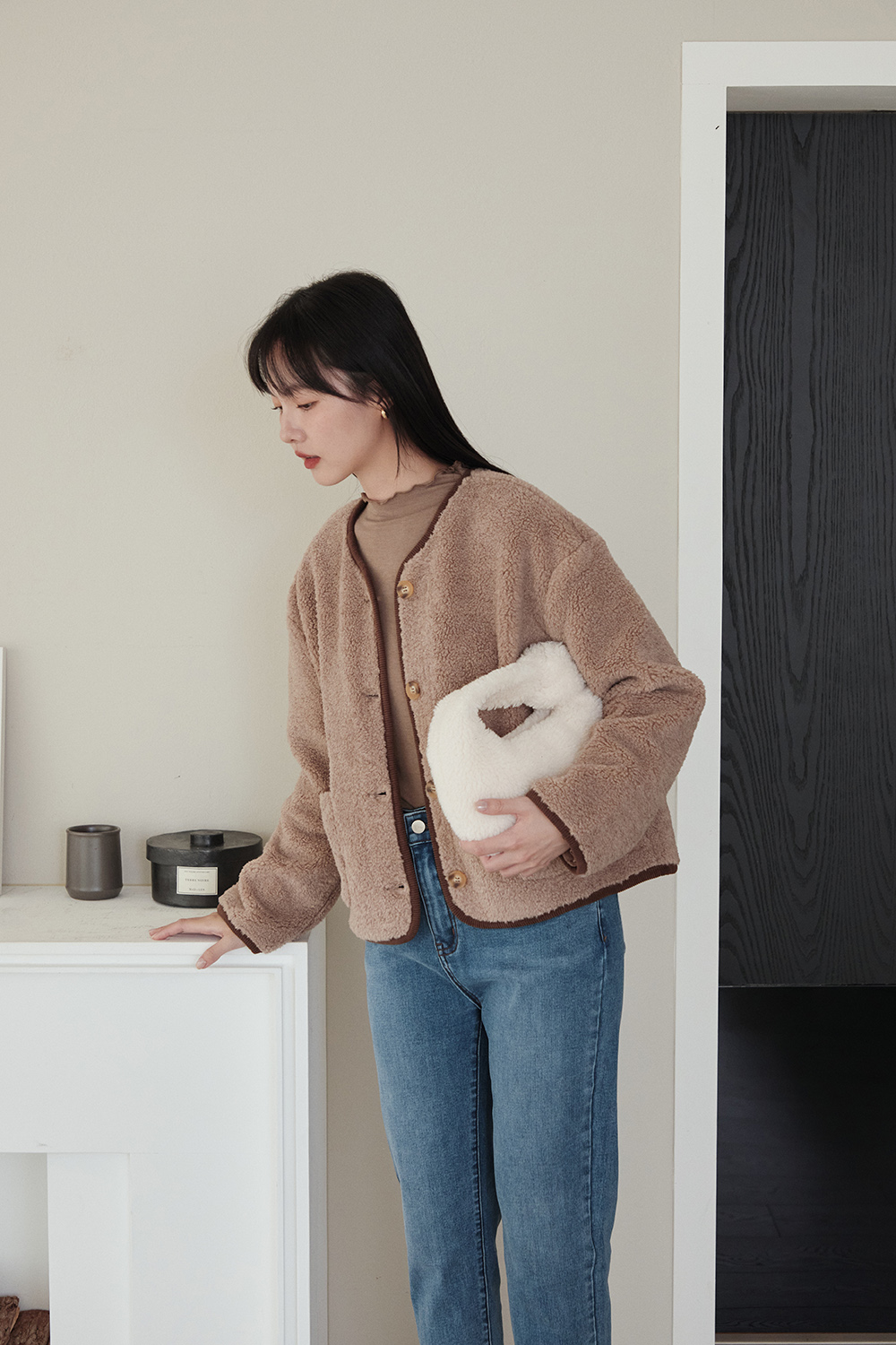 今年我們家這款羔羊毛外套 是做拼色滾邊設計