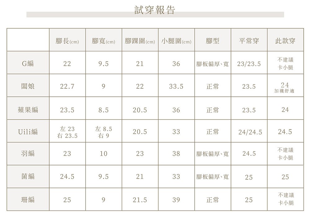 此款沒有拉鍊設計,尺寸請參考小腿圍去做挑選,帶大半號會更好穿脫✦材質成份:100%合成皮