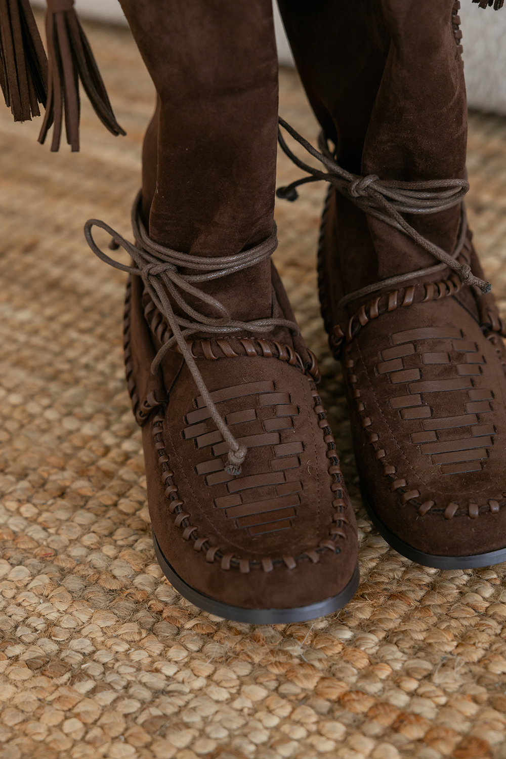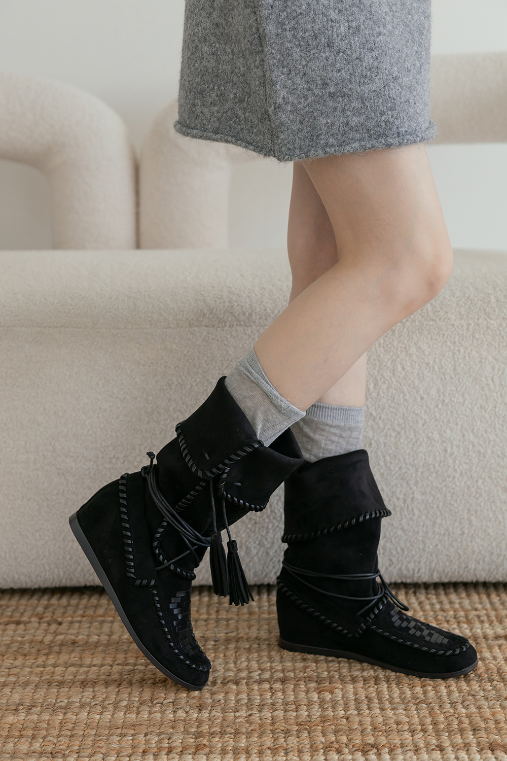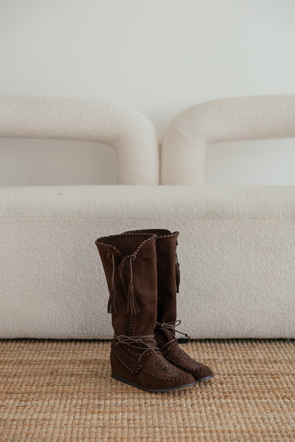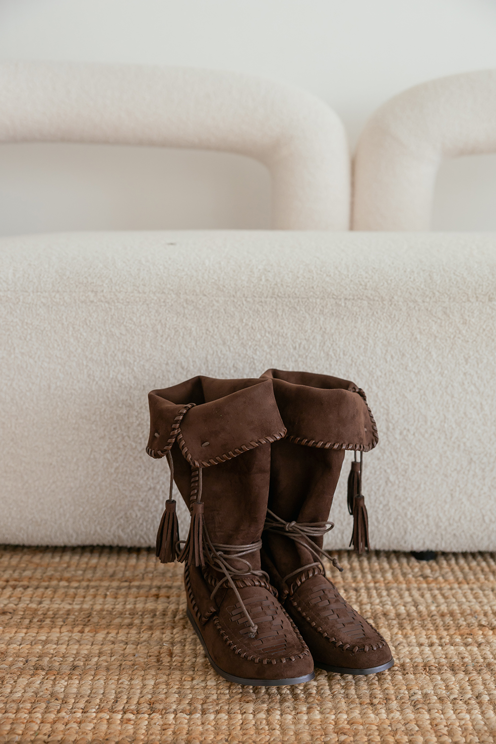 時髦寵兒 牛皮流蘇綁帶反褶長靴 時髦寵兒 牛皮流蘇綁帶反褶長靴