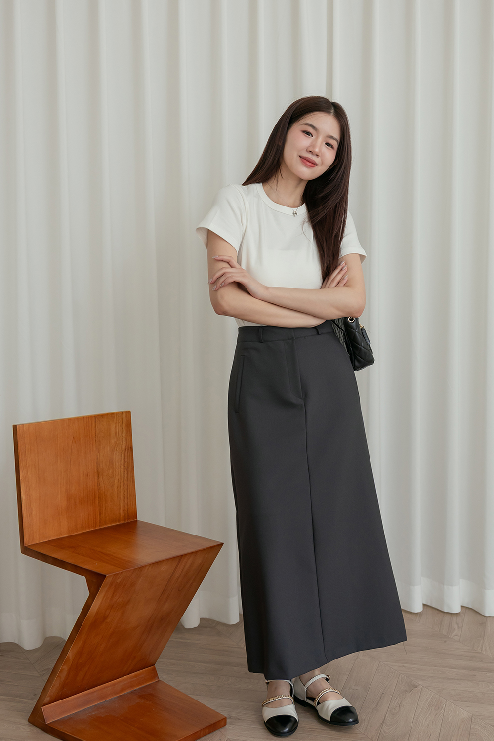 不是窄裙的剪裁 整件穿起來很順身顯瘦
