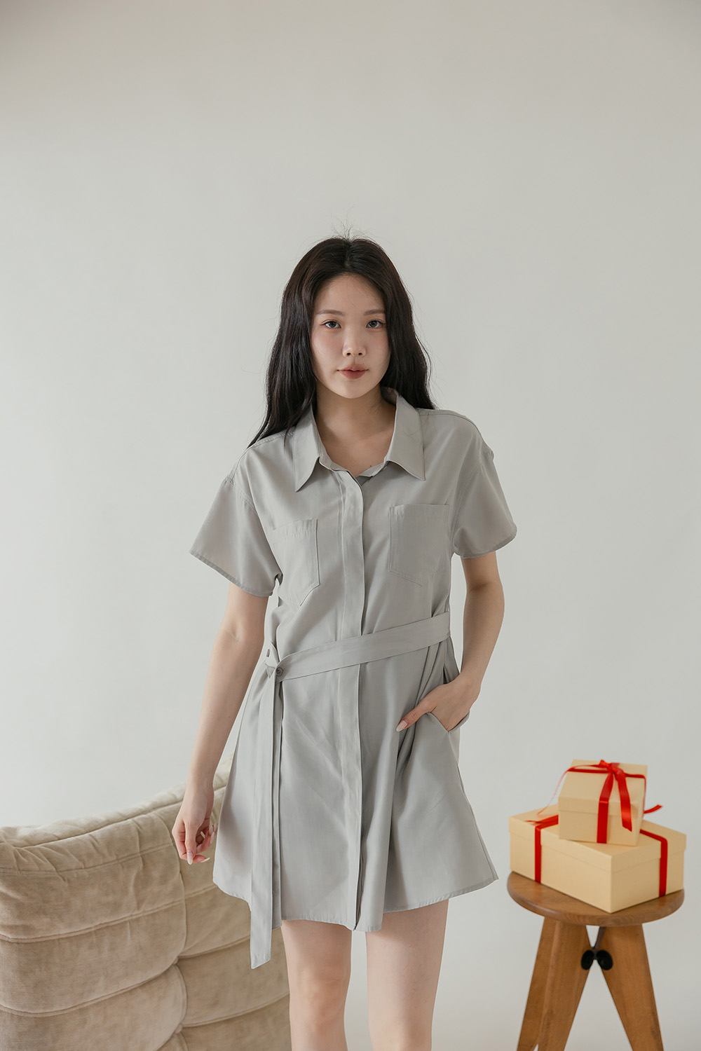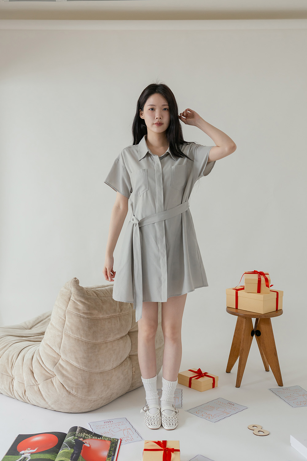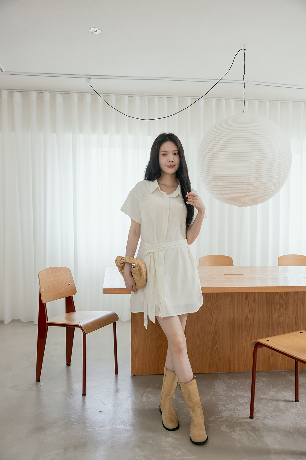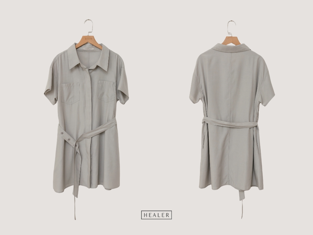 HEALER Made 薄片短洋 翻領開襟綁帶短洋裝