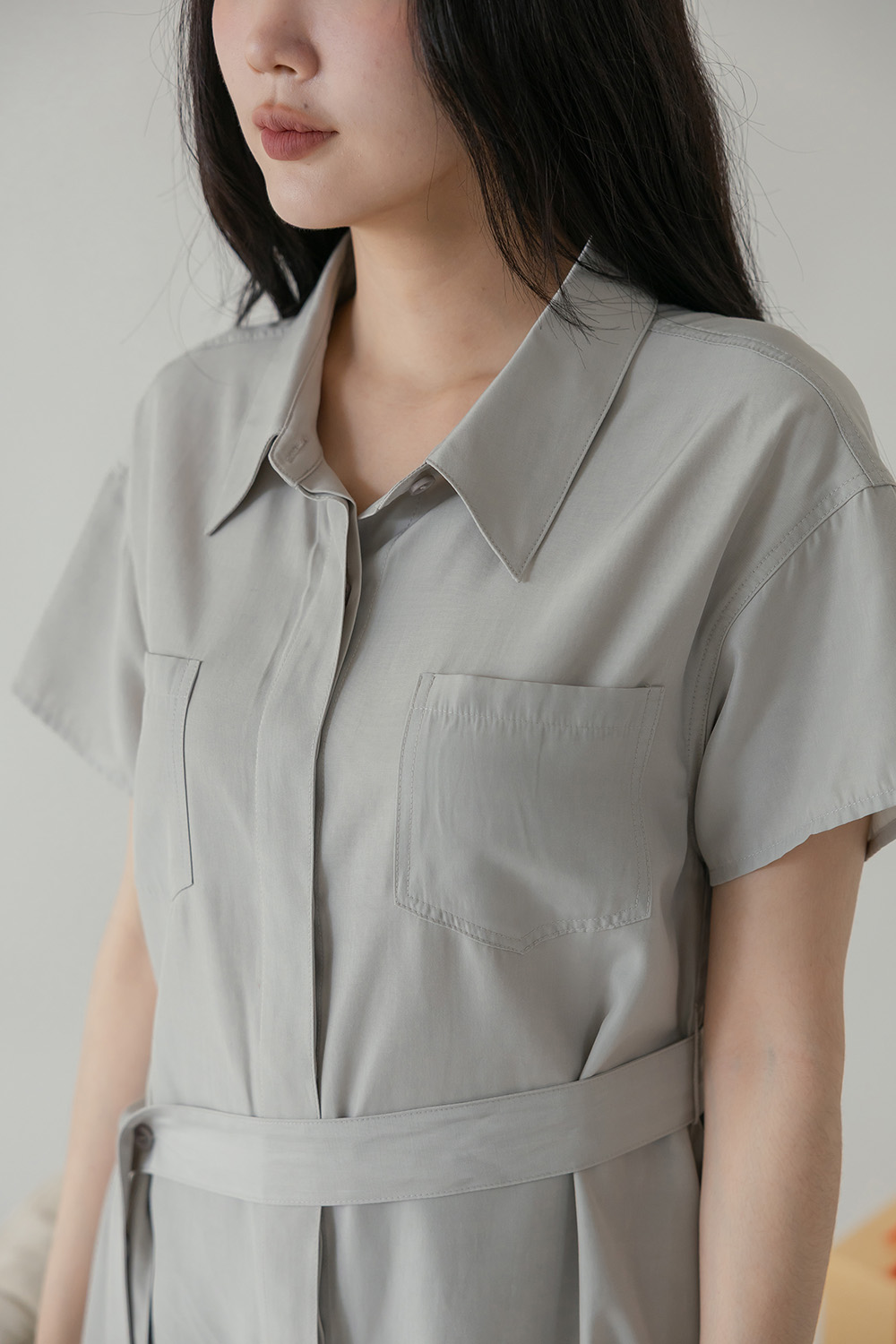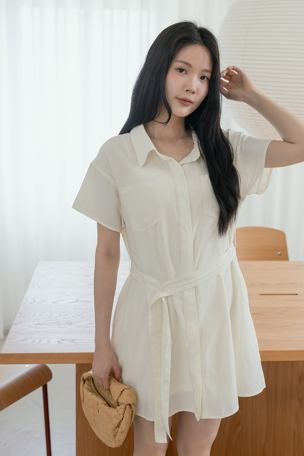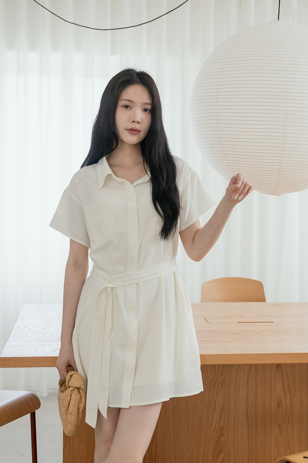 HEALER Made 薄片短洋 翻領開襟綁帶短洋裝