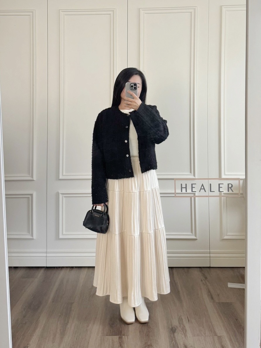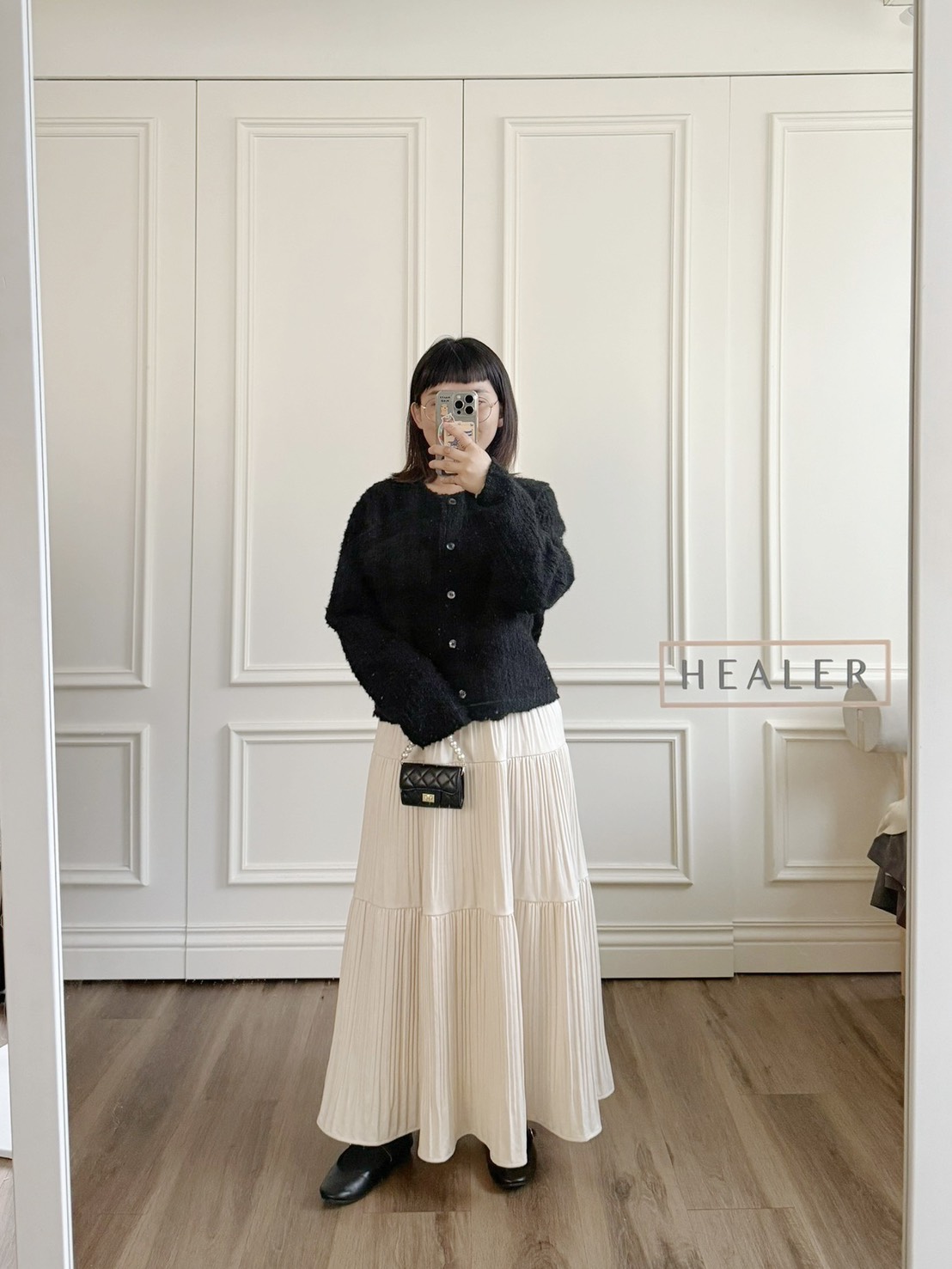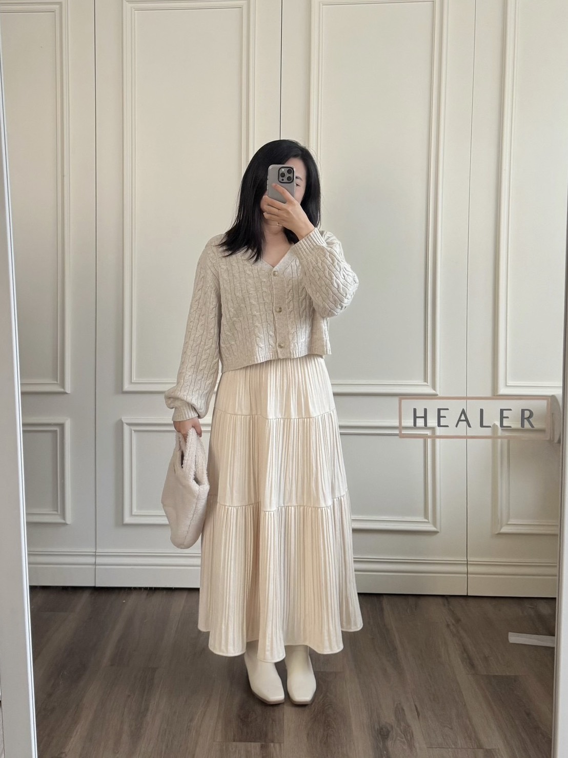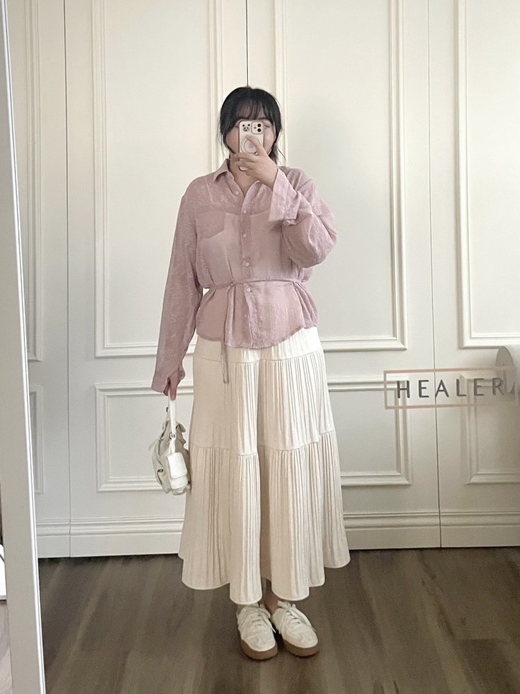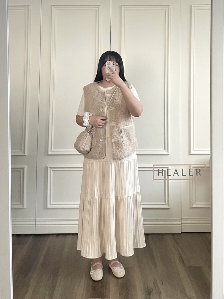 看到價格嚇一跳 細壓褶蛋糕長裙