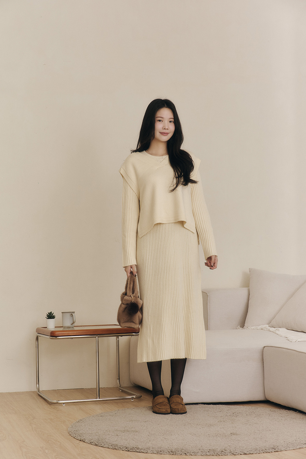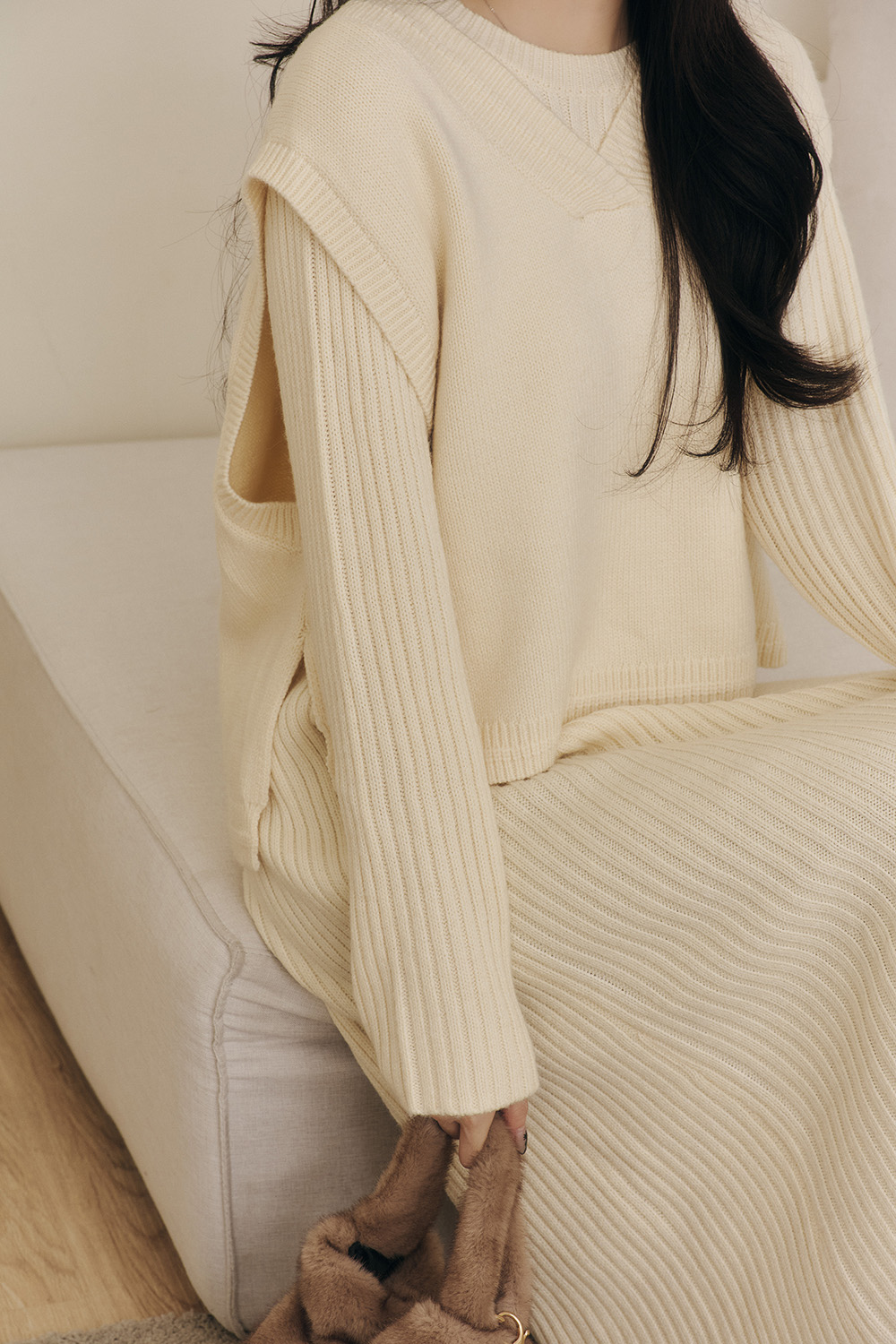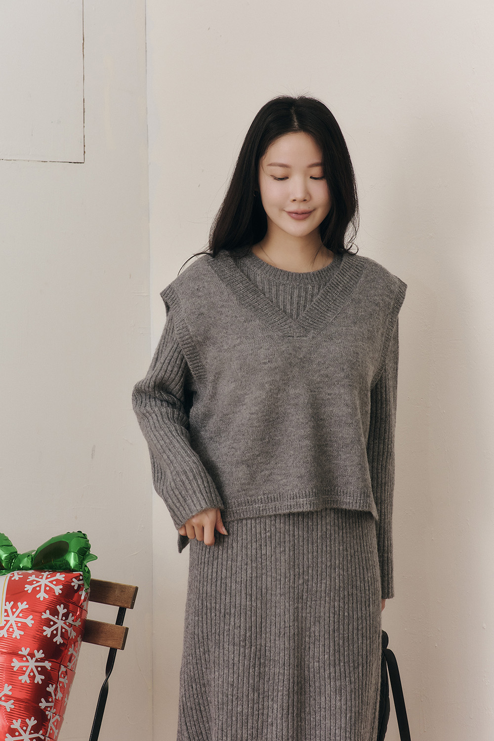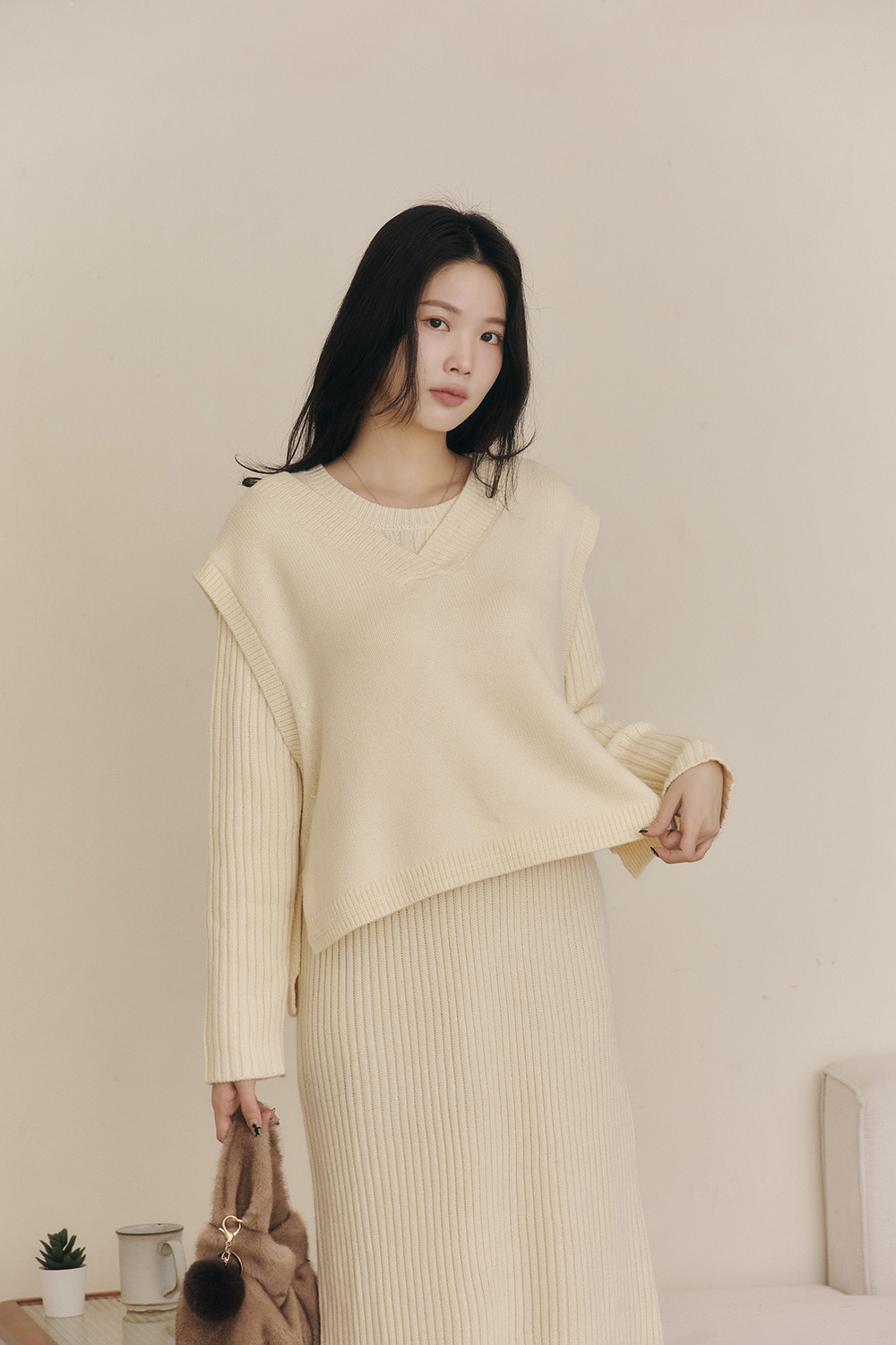 HEALER Made 貝諾松 V領背心坑條針織長洋裝