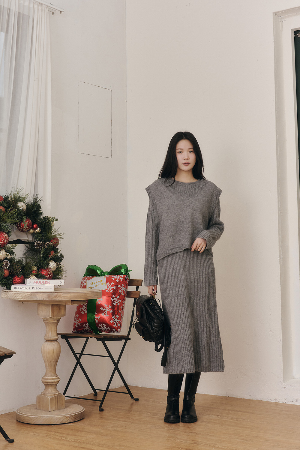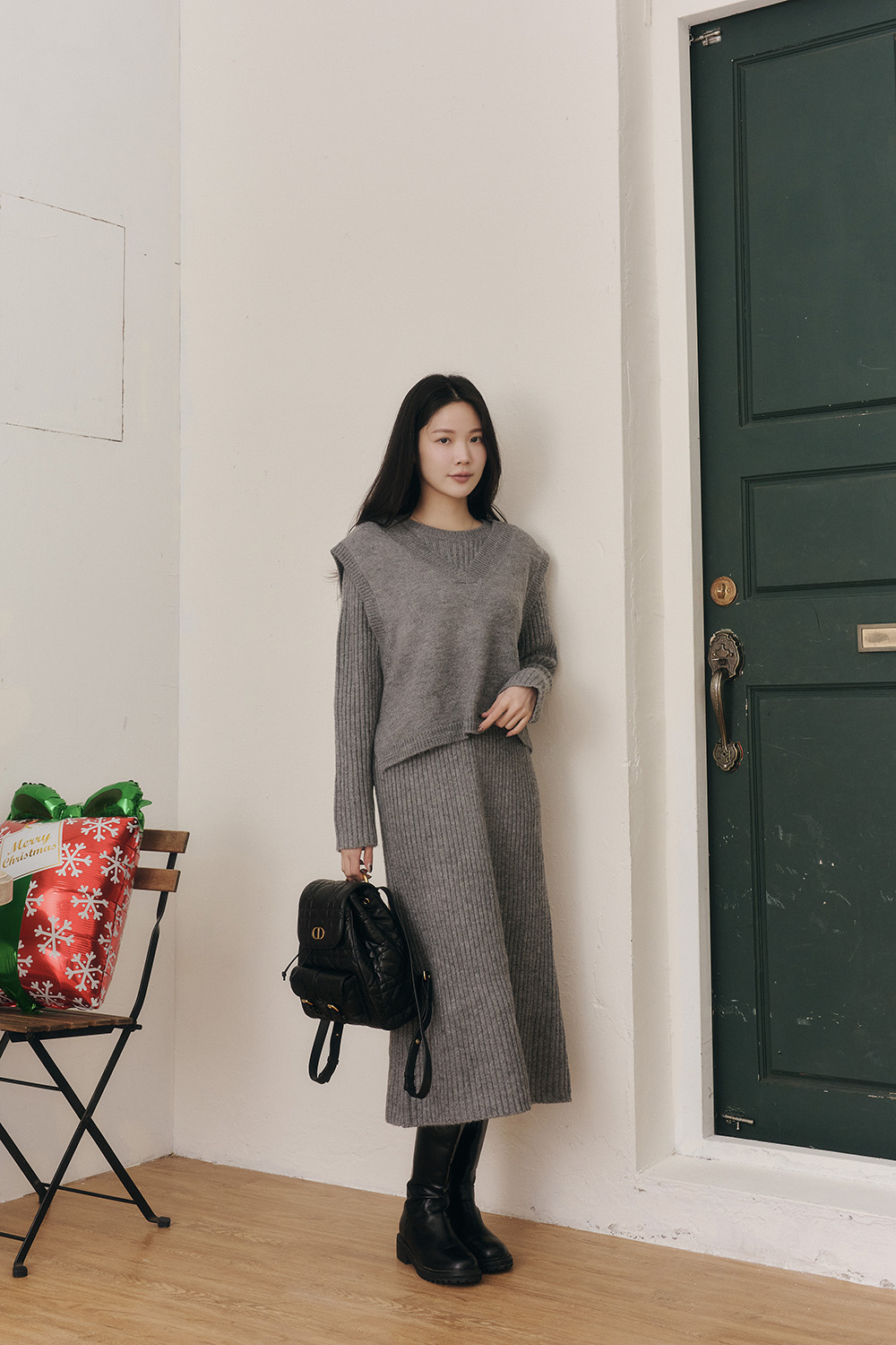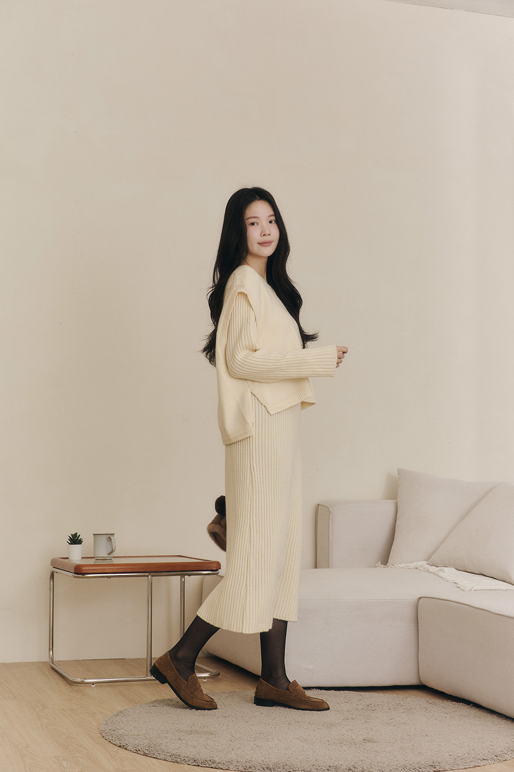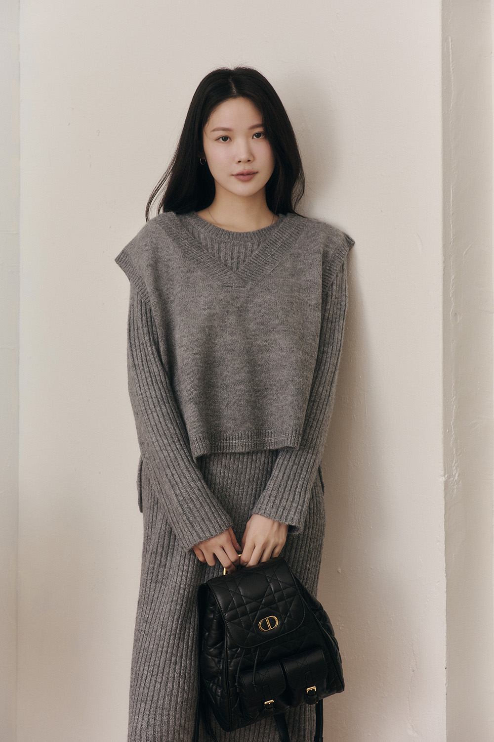 HEALER Made 貝諾松 V領背心坑條針織長洋裝