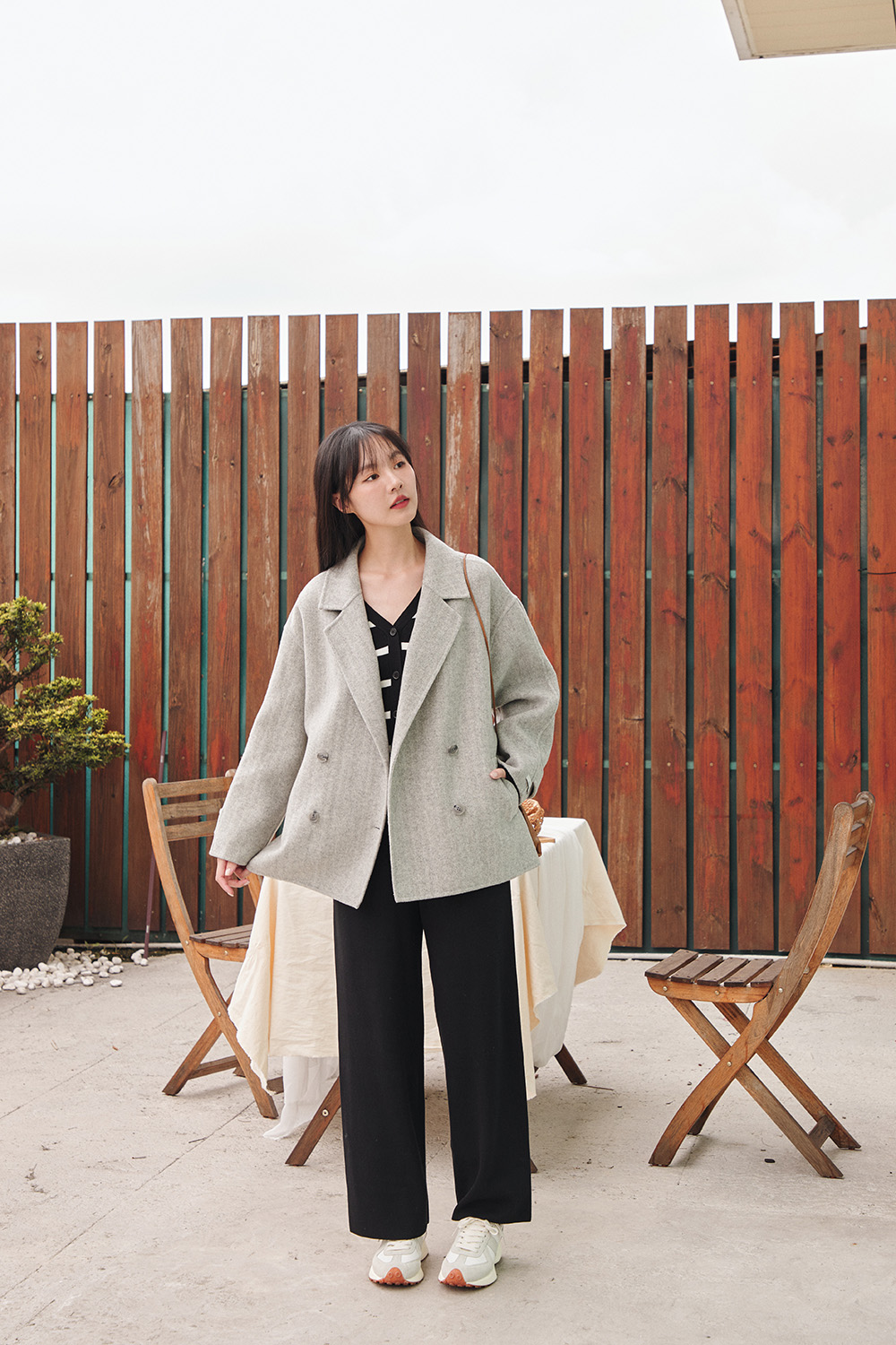 HEALER Made 冬日擁抱 90%羊毛人字紋雙排釦中長大衣 HEALER Made 冬日擁抱 90%羊毛人字紋雙排釦中長大衣