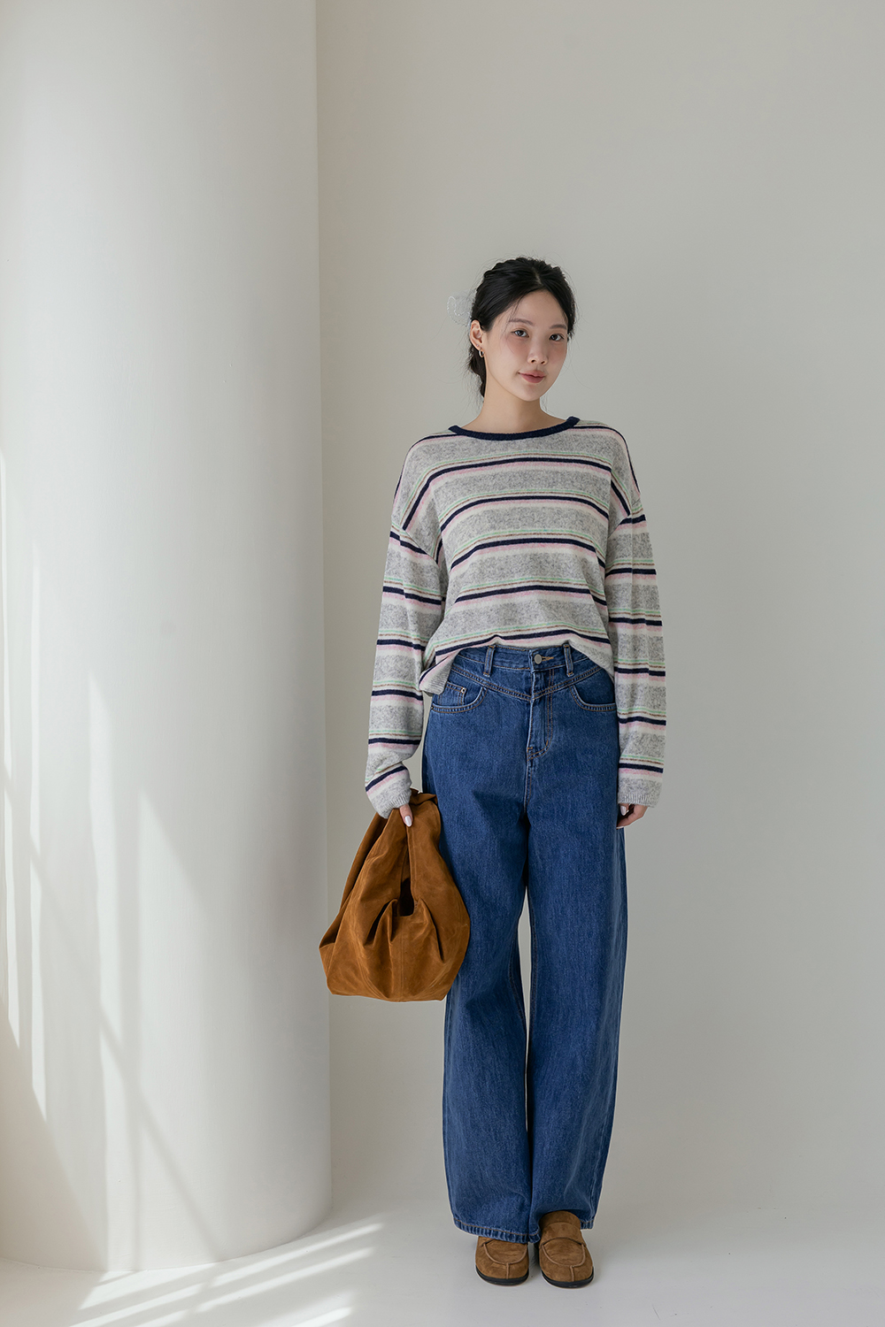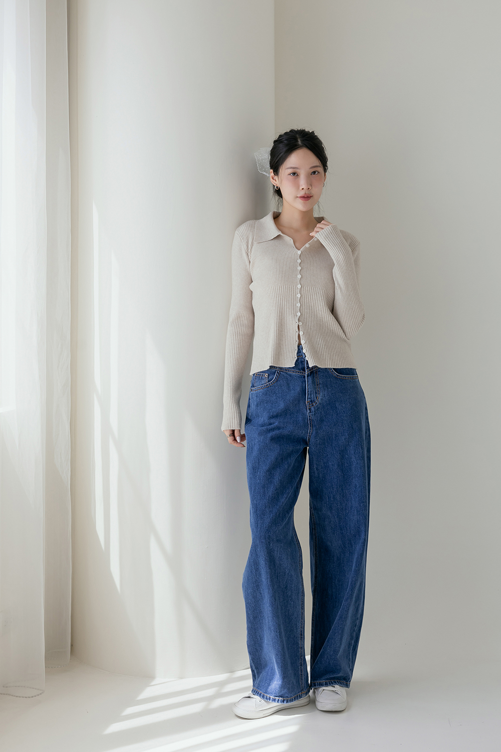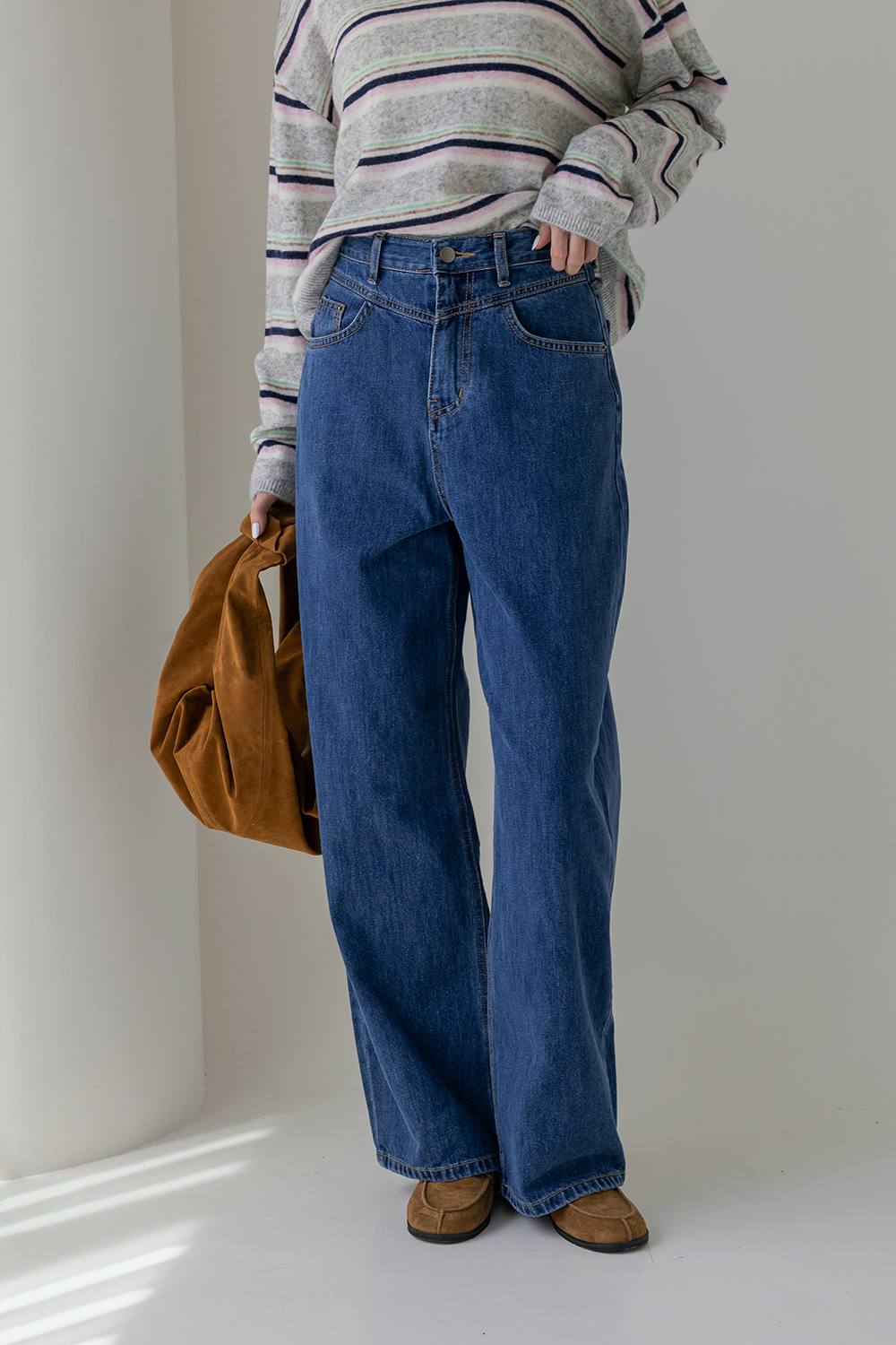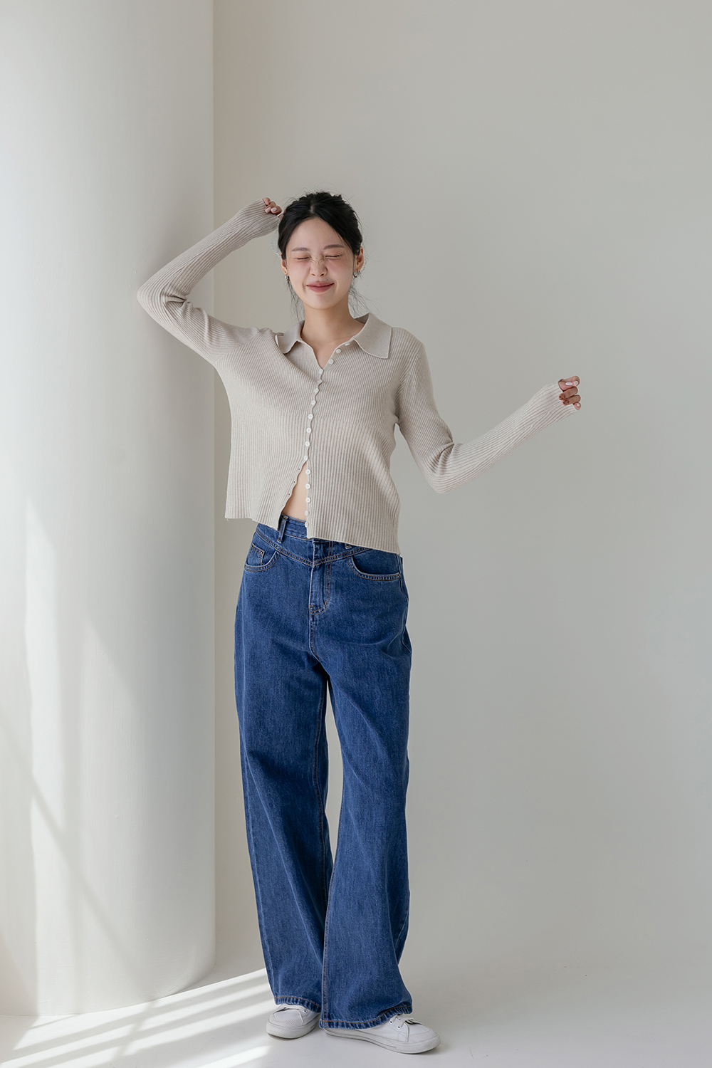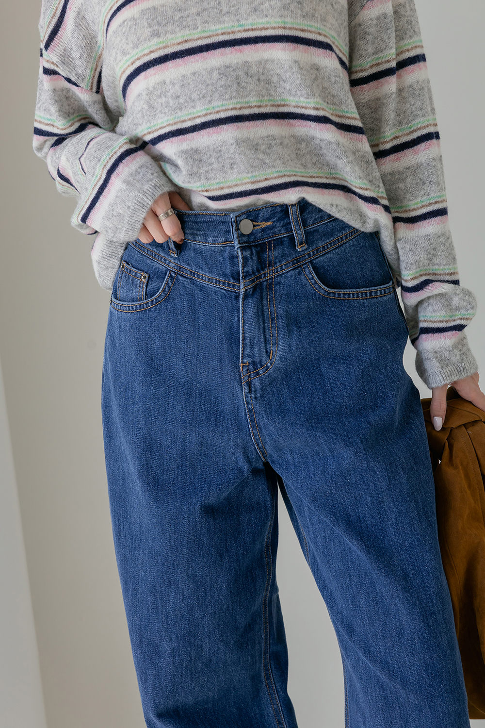 鬆弛輪廓 高腰長腿直筒牛仔褲