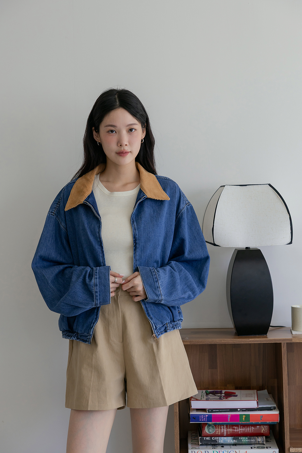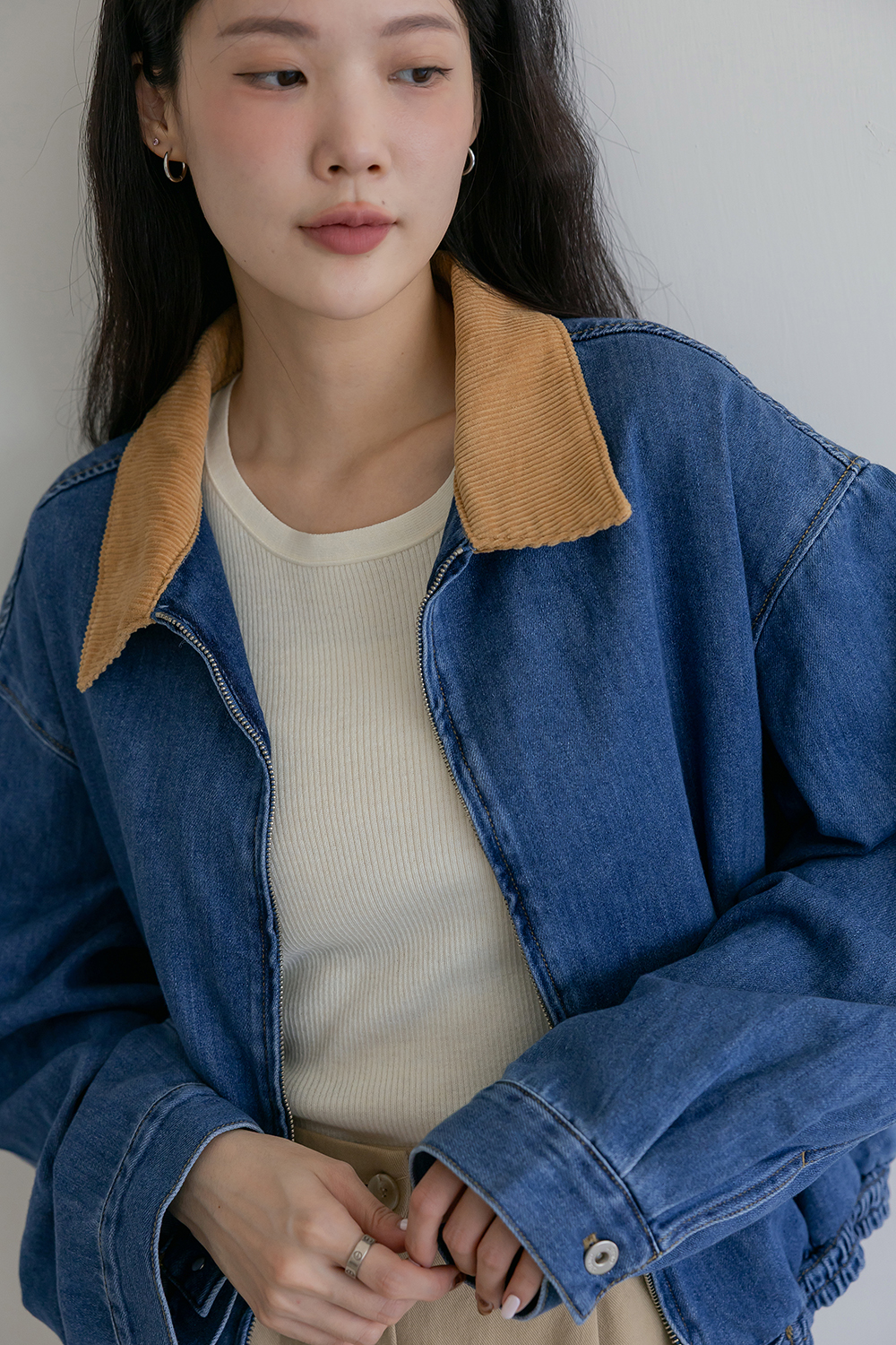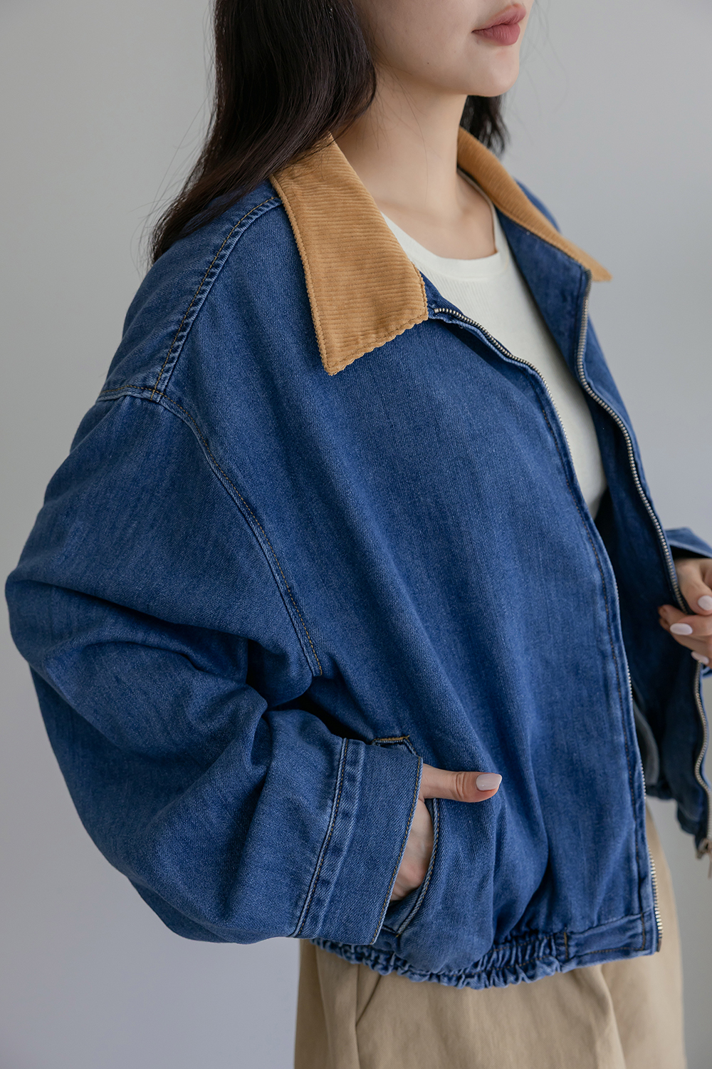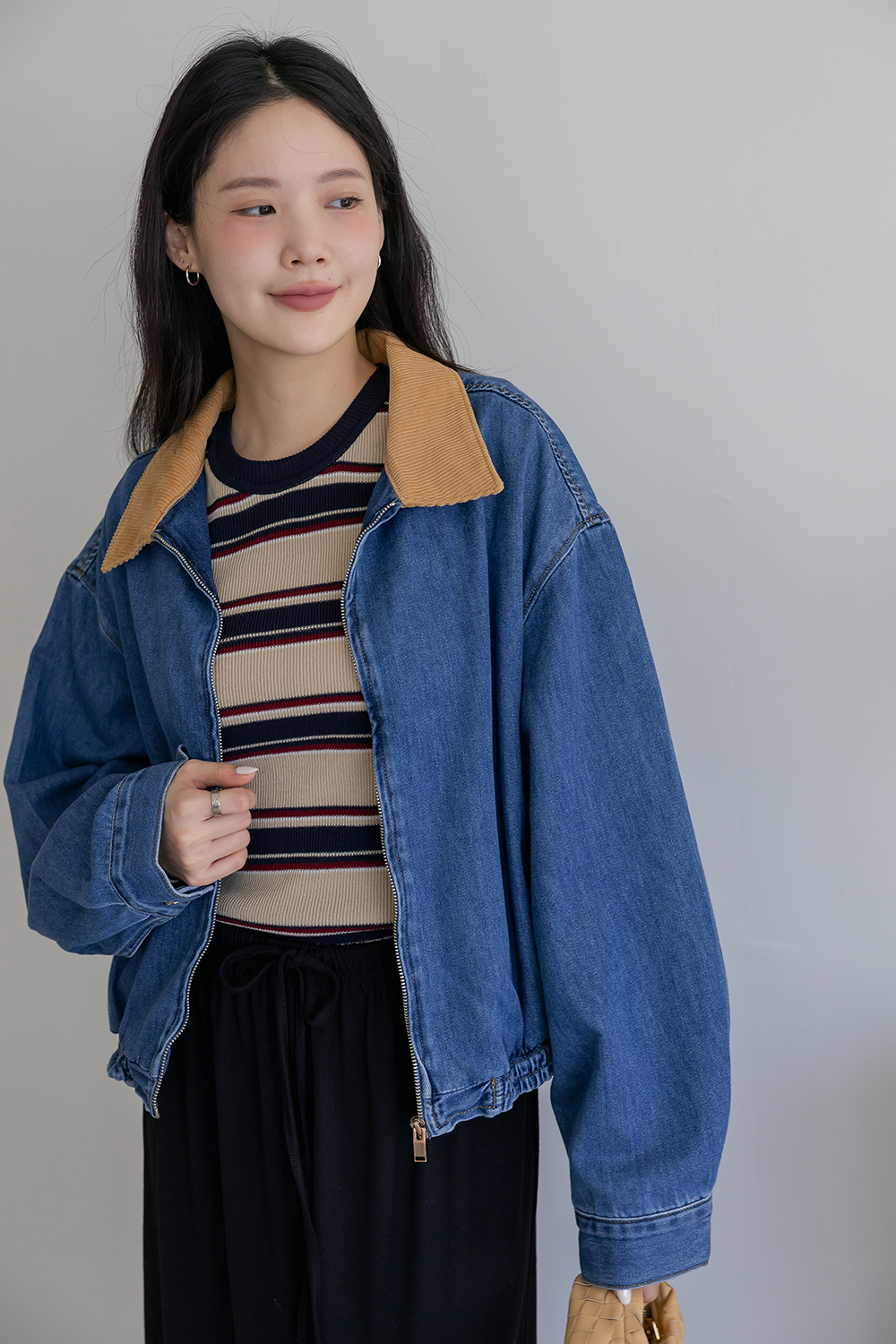 布魯克林街頭 拚色領拉鍊牛仔外套