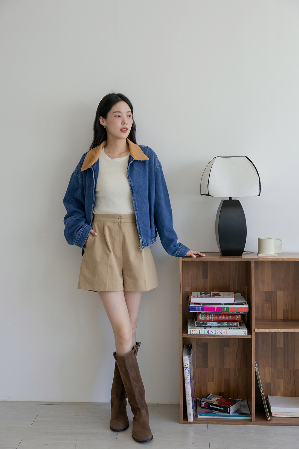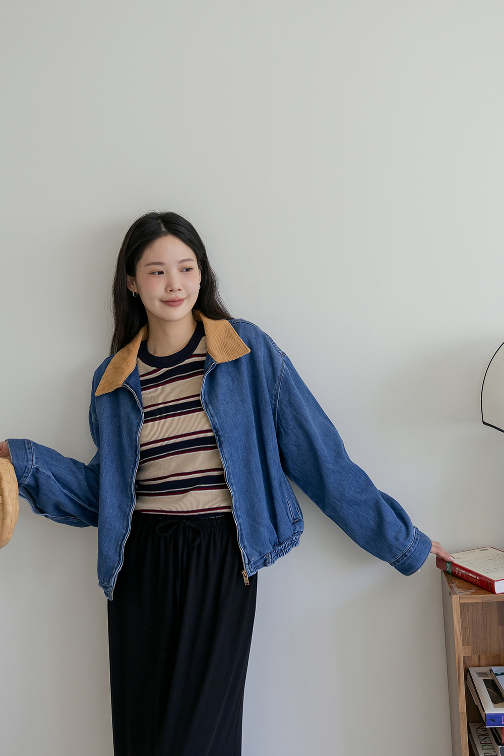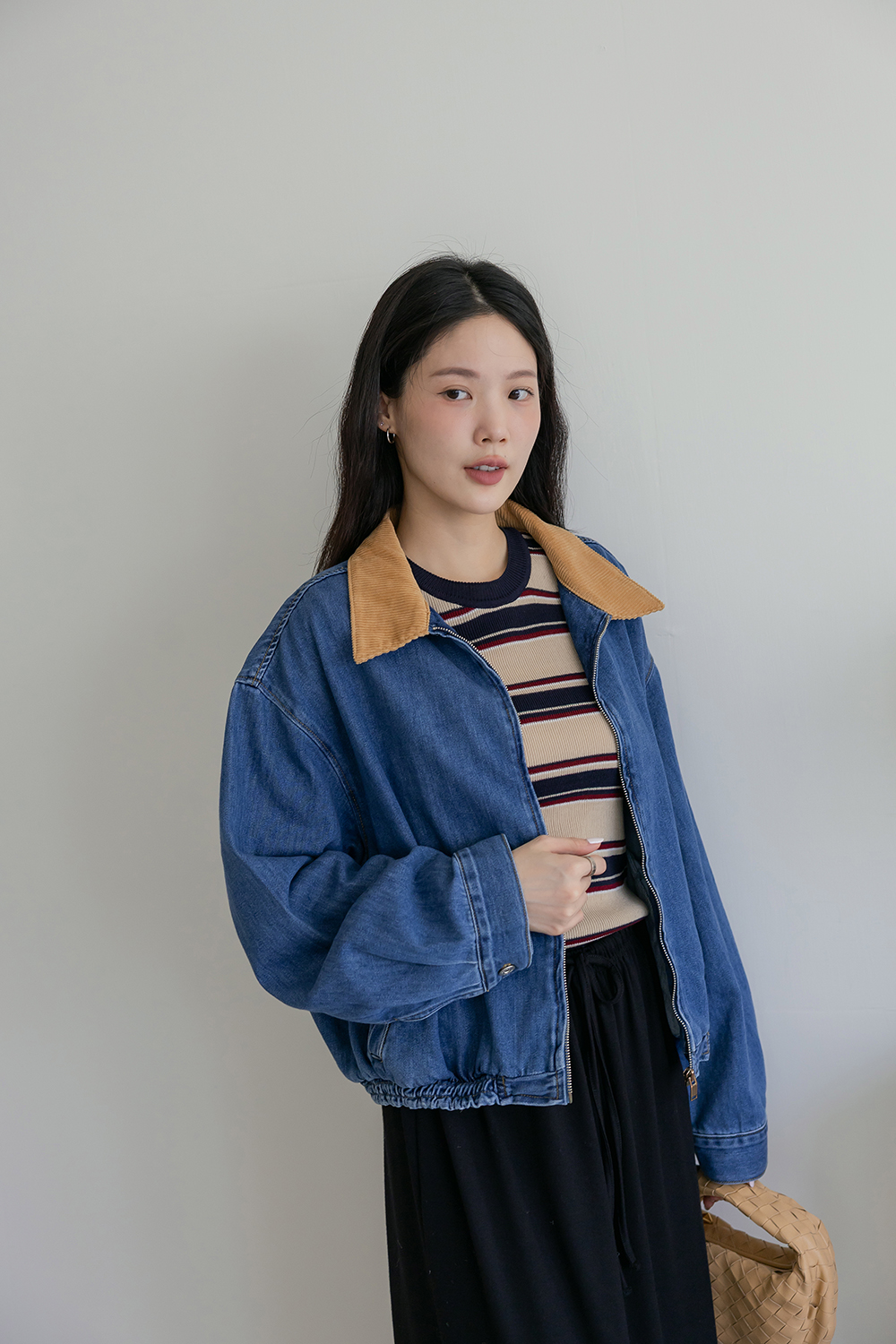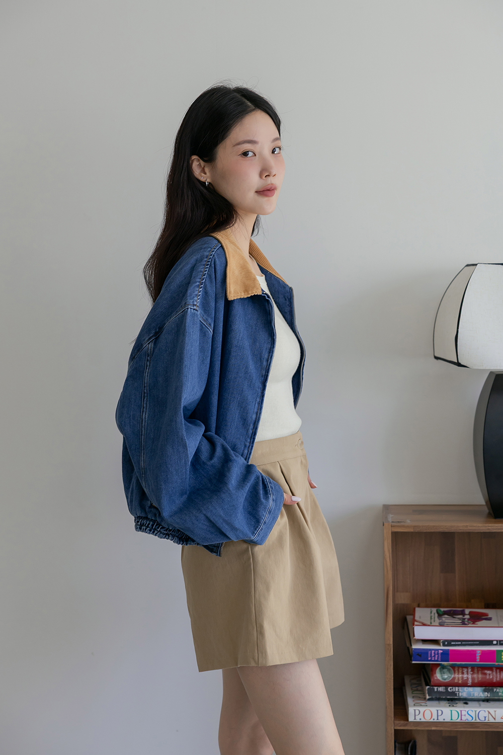 布魯克林街頭 拚色領拉鍊牛仔外套