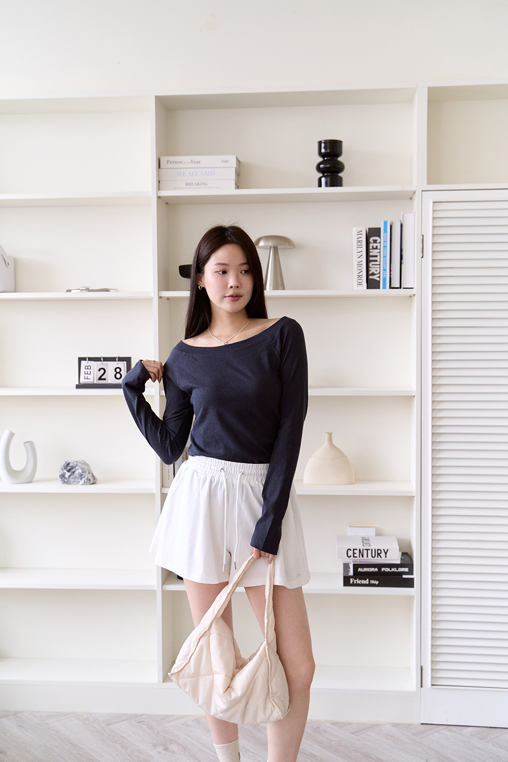 也可以穿的有點不對稱斜肩的感覺