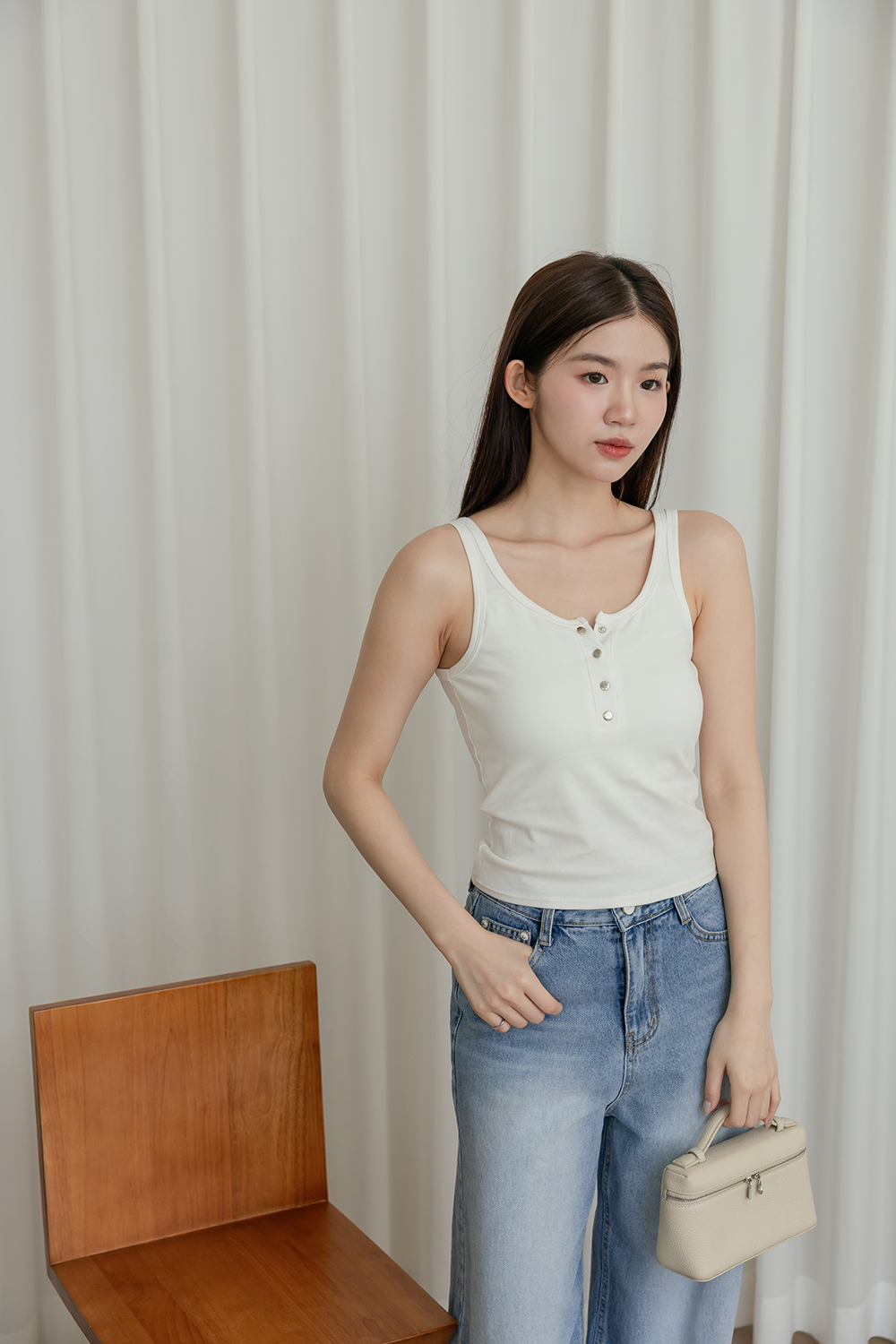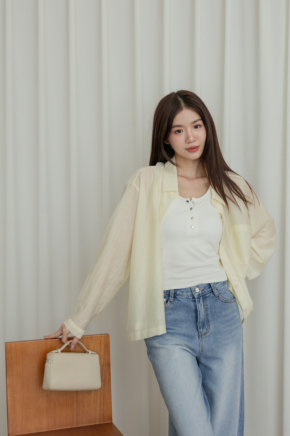 簡單罩衫配他都會比一般bratop更有型