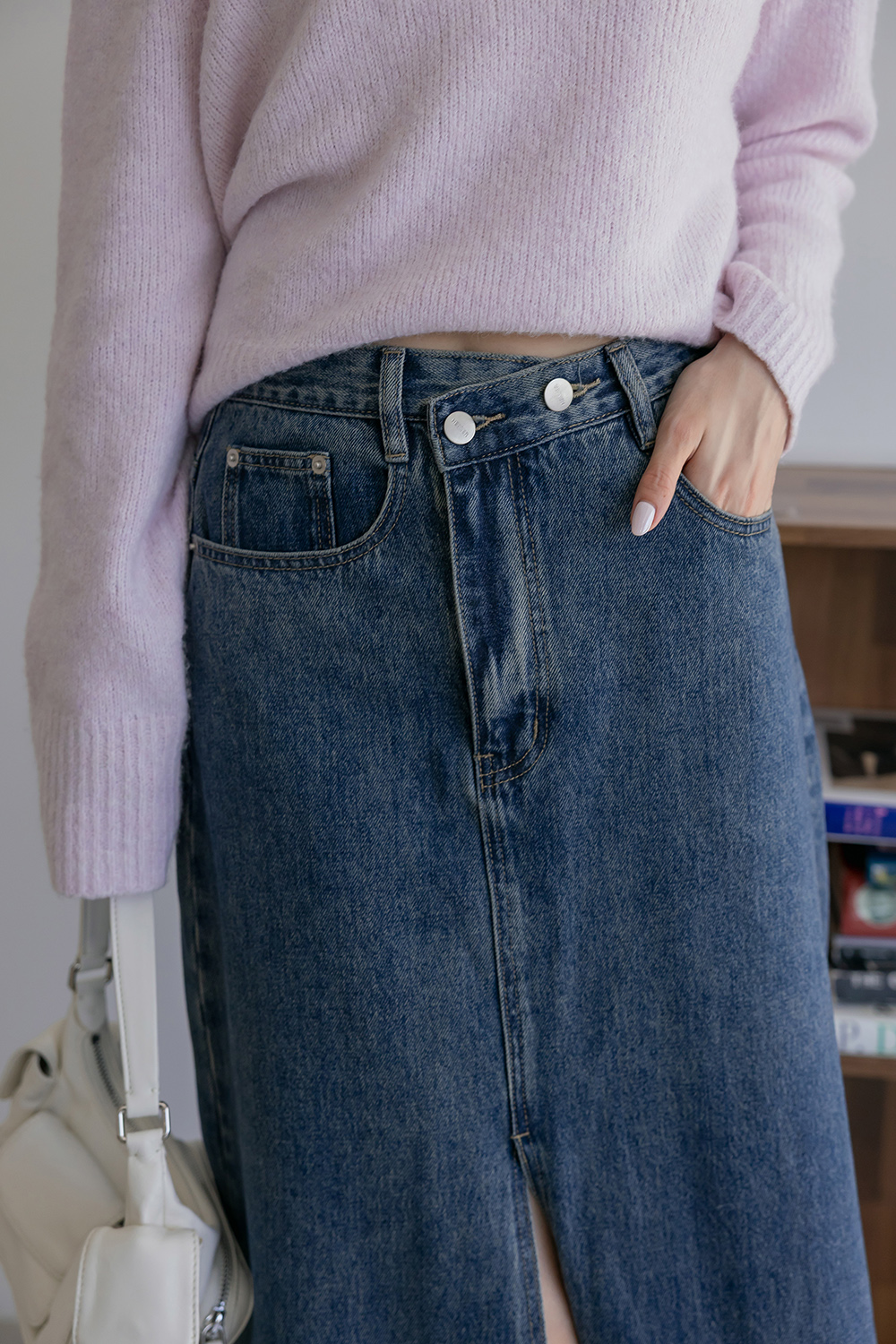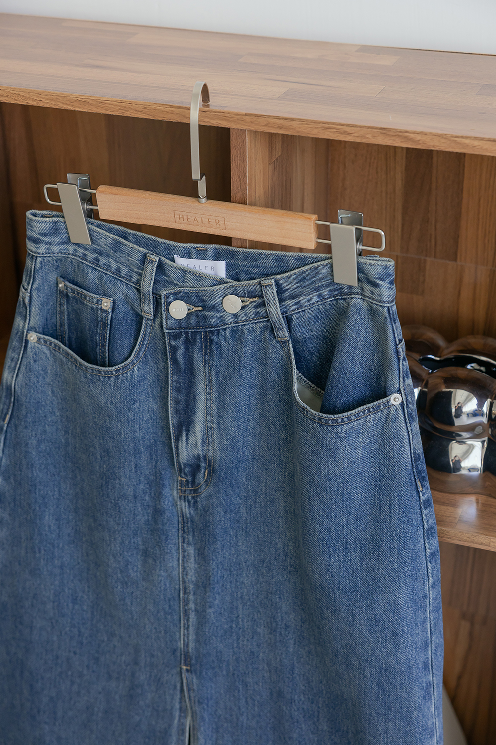 HEALER Made新色!超狂遮胯裙 斜釦牛仔長裙