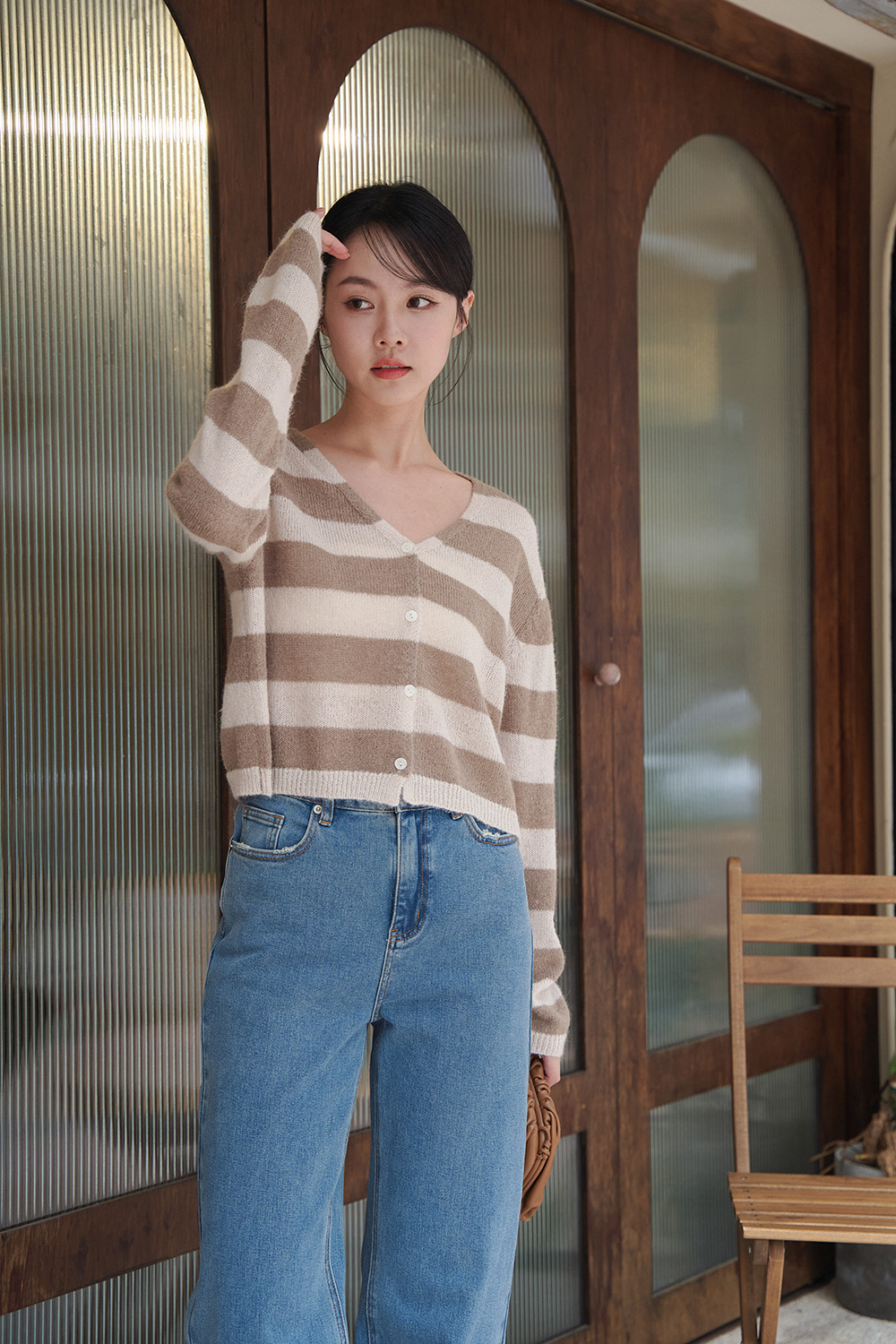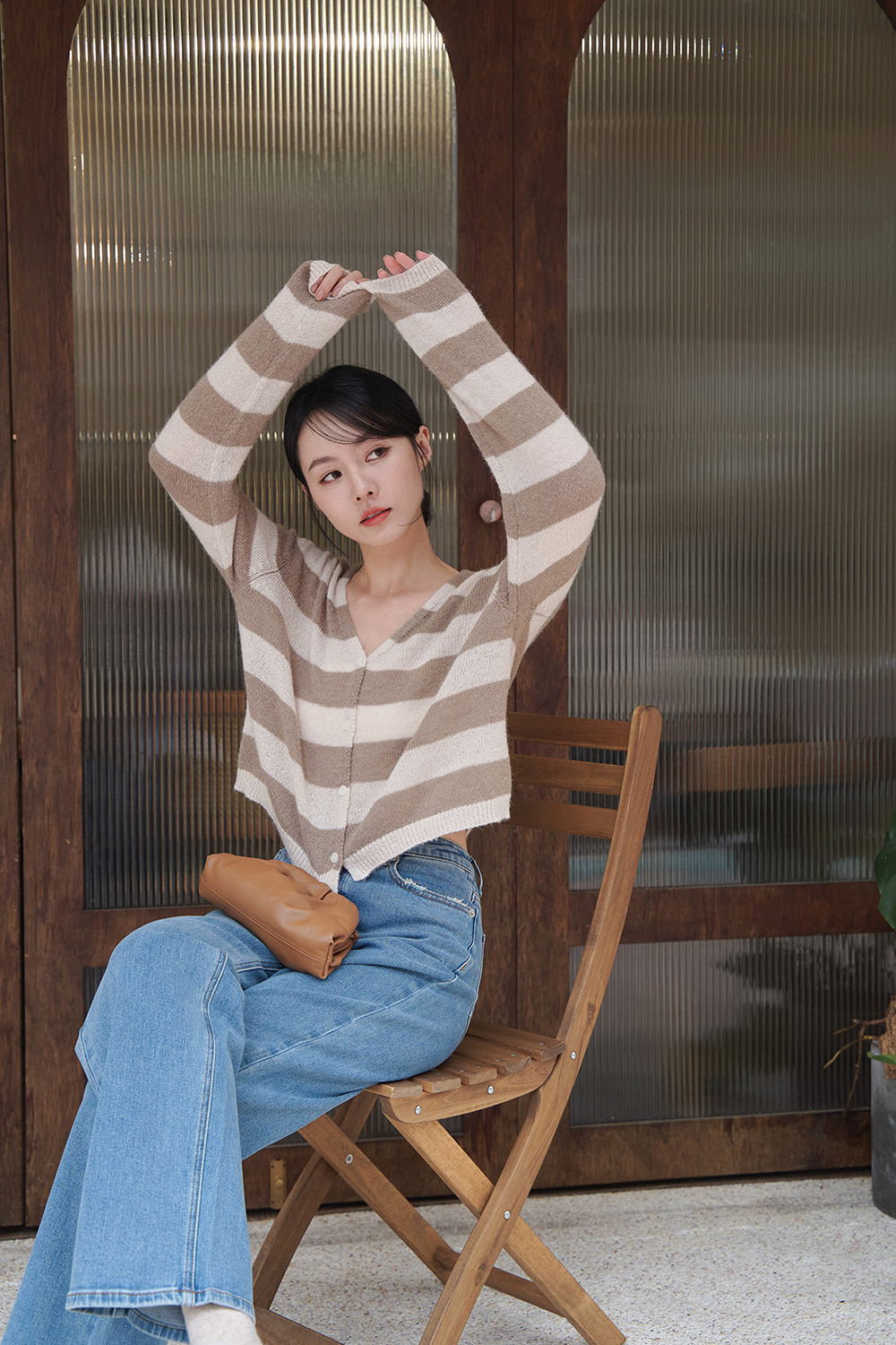 HEALER Made 慵懶時光 寬條紋羊毛針織外套