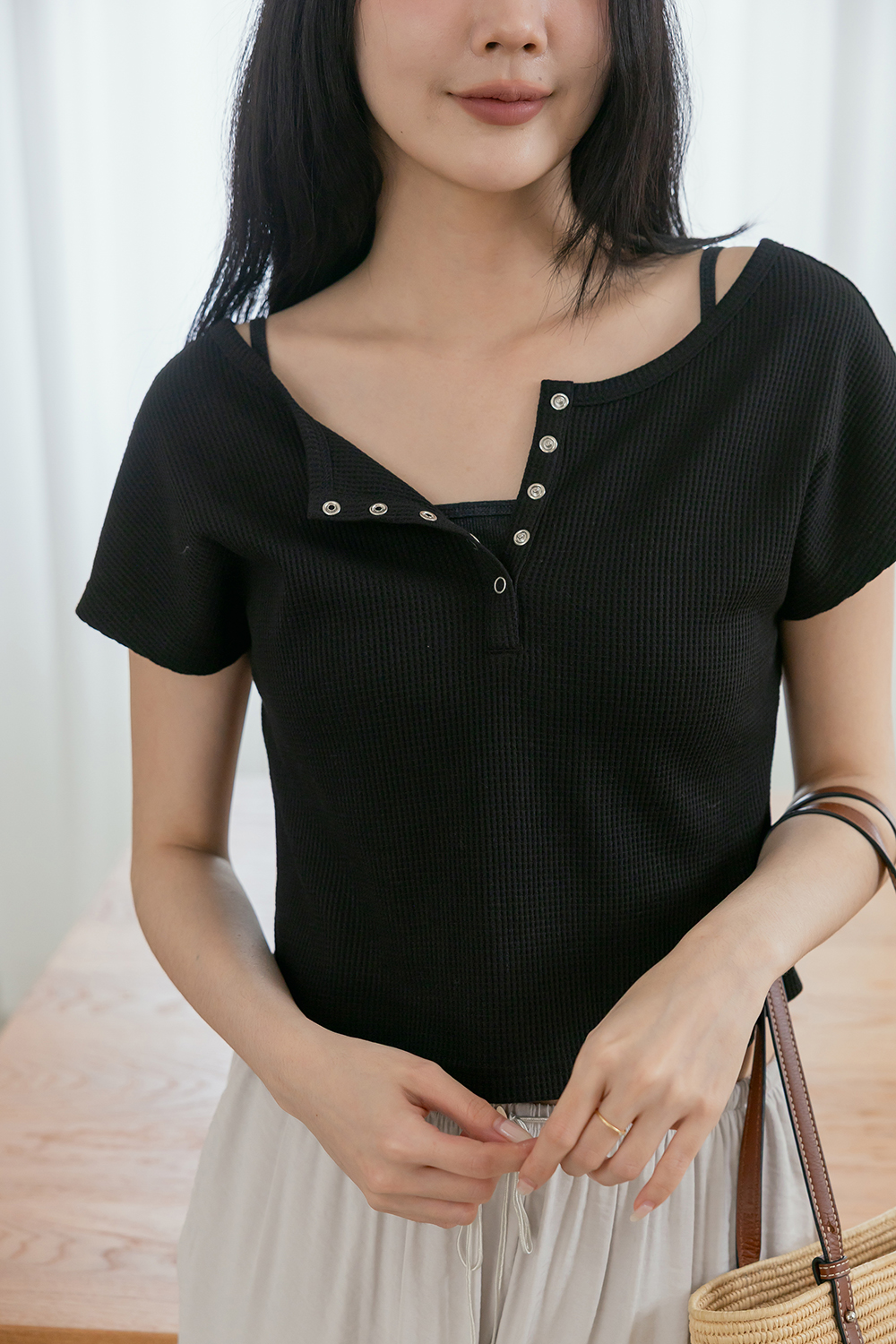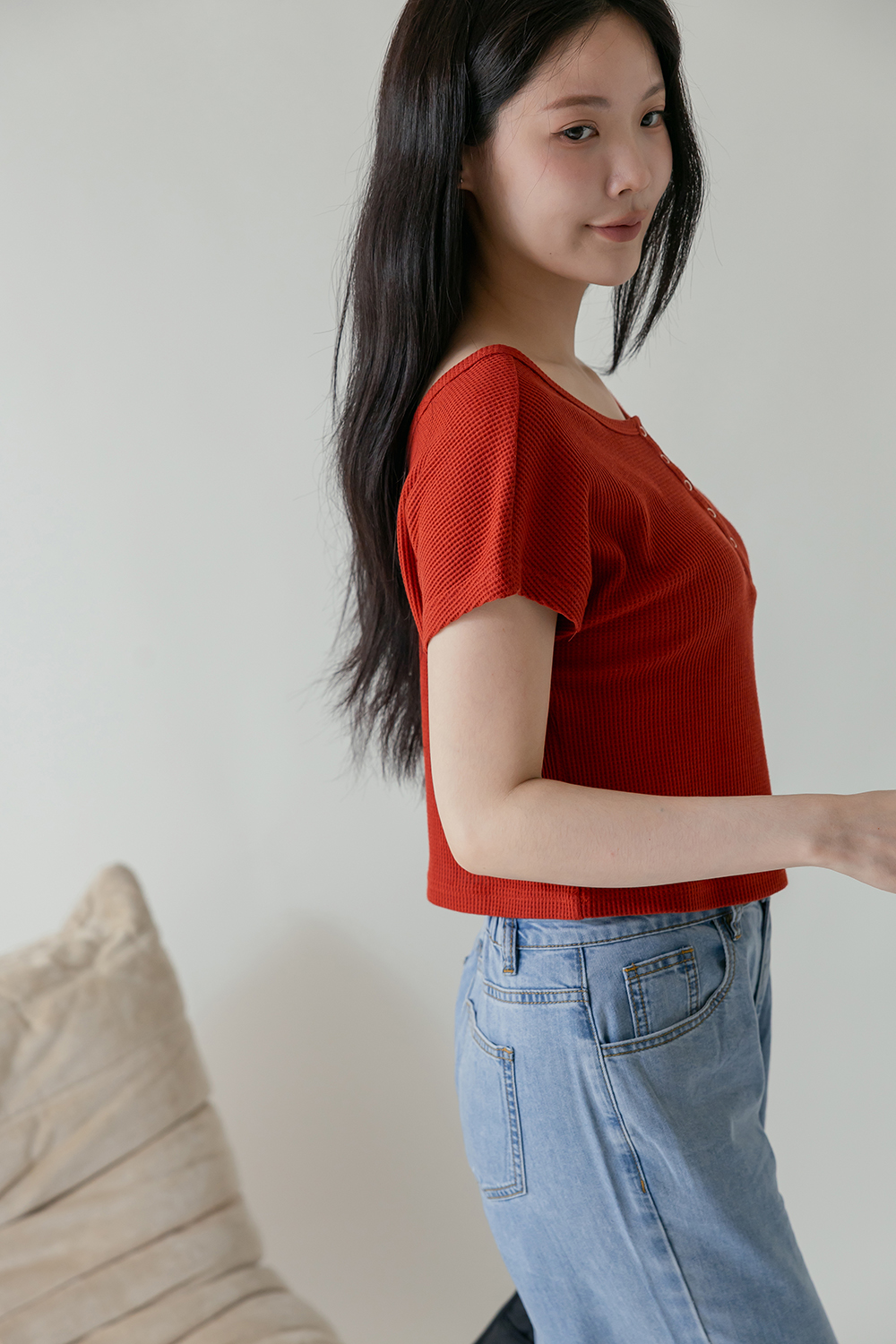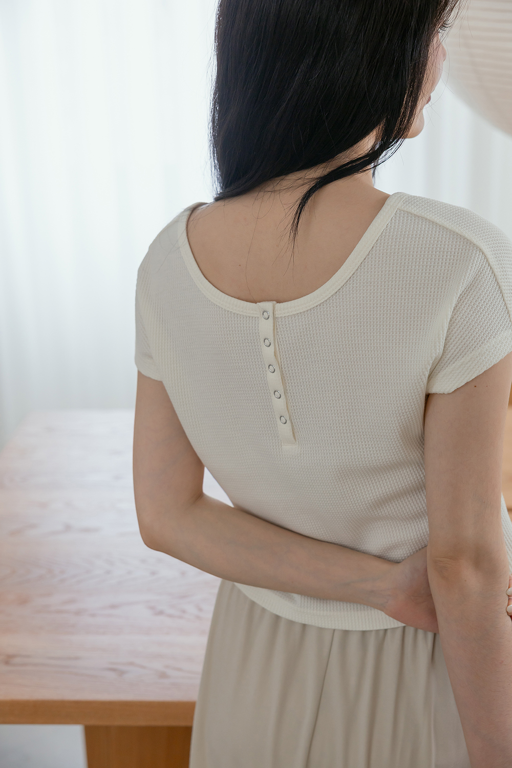 HEALER Made 自然有腰 兩面穿開釦鬆餅格短T