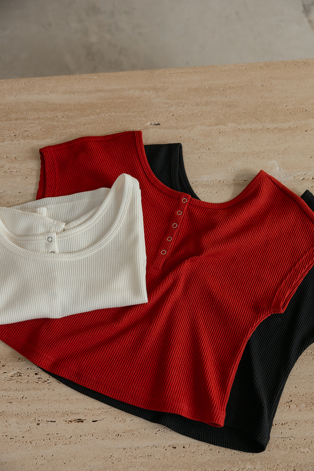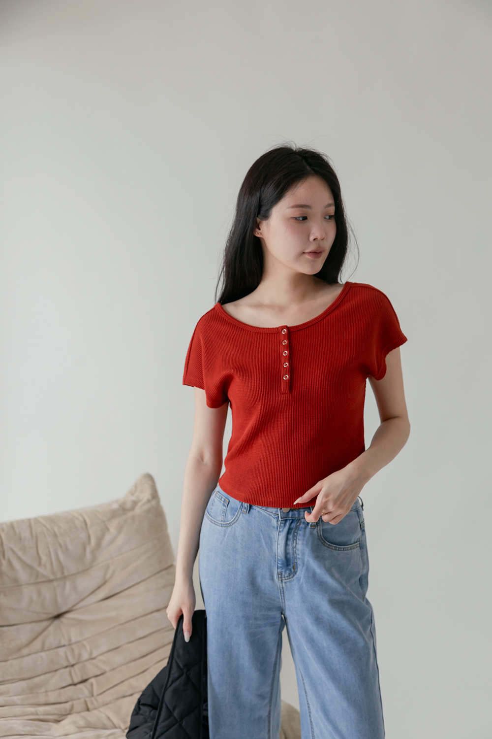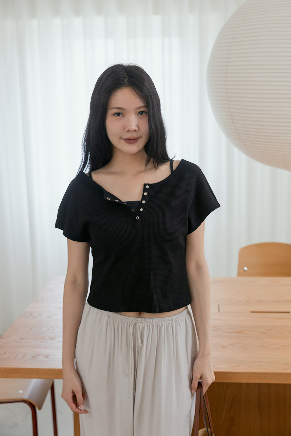 HEALER Made 自然有腰 兩面穿開釦鬆餅格短T
