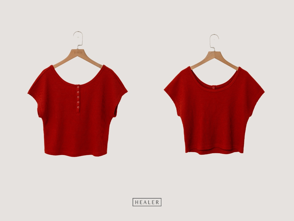 HEALER Made 自然有腰 兩面穿開釦鬆餅格短T HEALER Made 自然有腰 兩面穿開釦鬆餅格短T