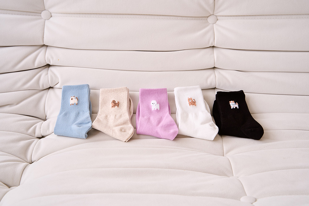 哪個小天才把療癒的狗狗貓貓繡在襪子上啦!