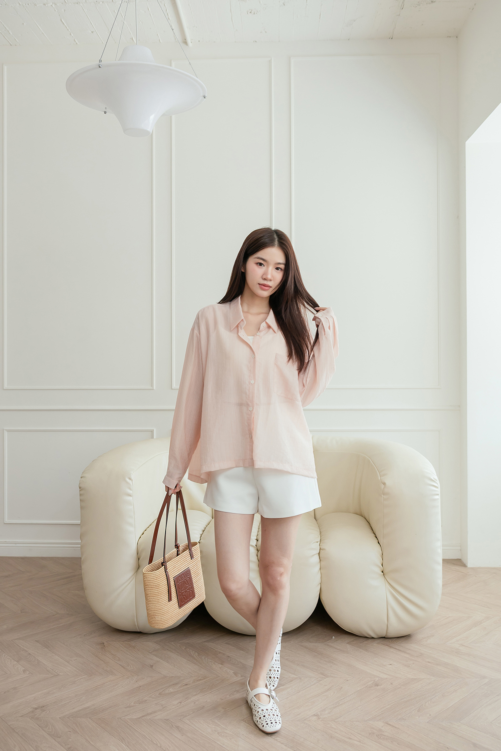 穿著感有點像西裝面料的厚雪紡