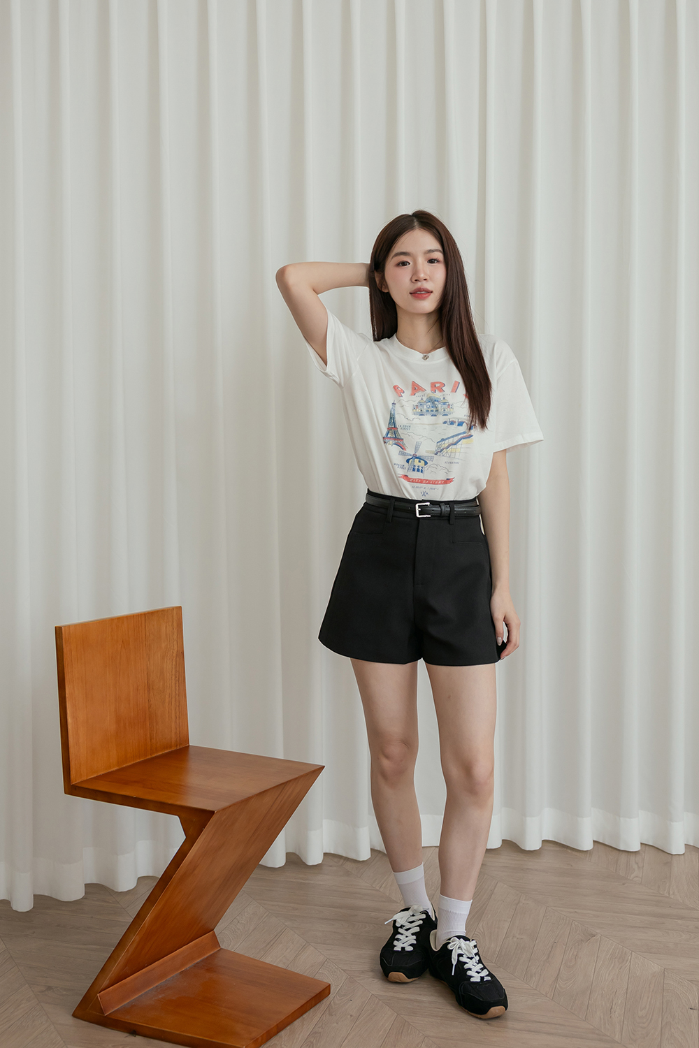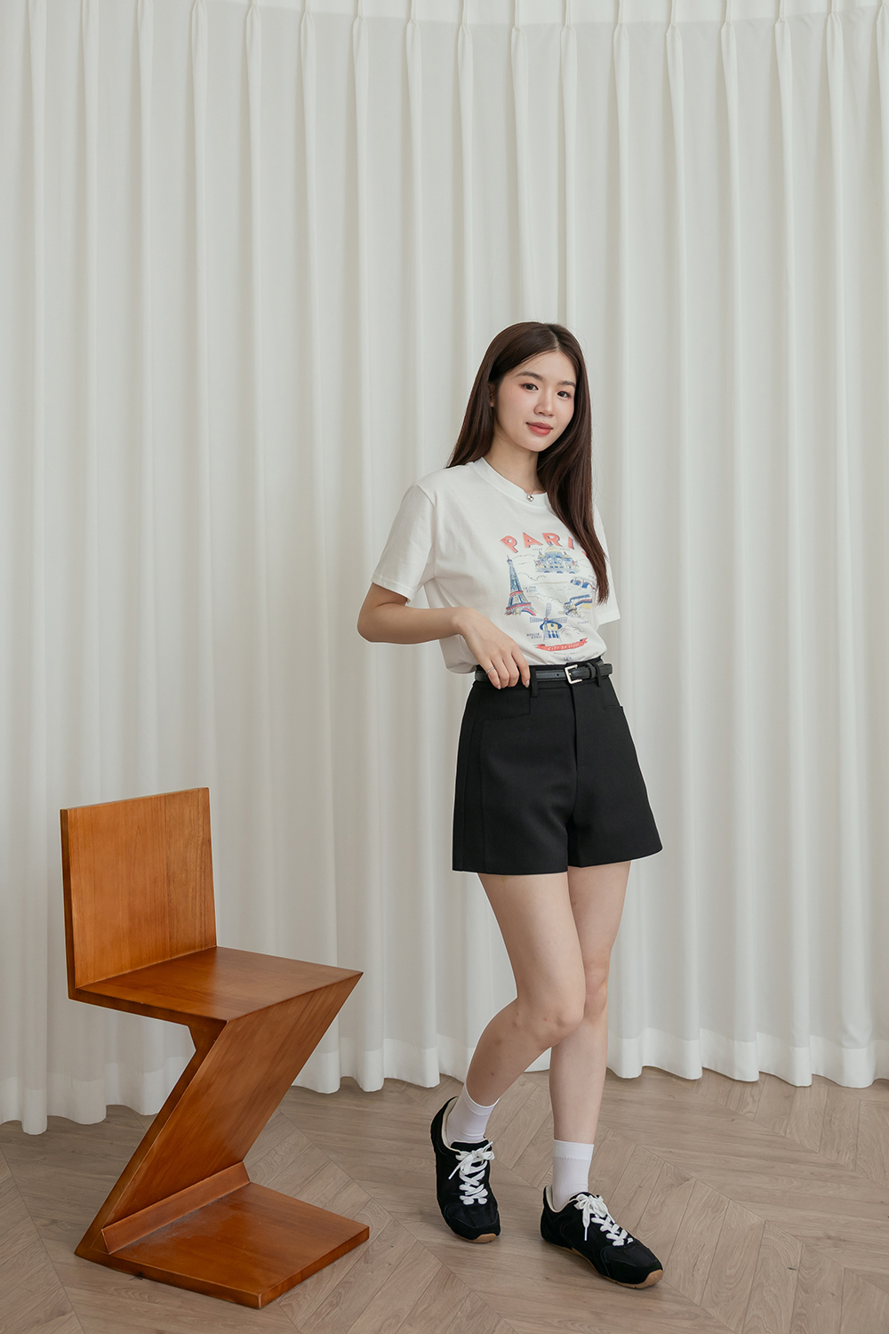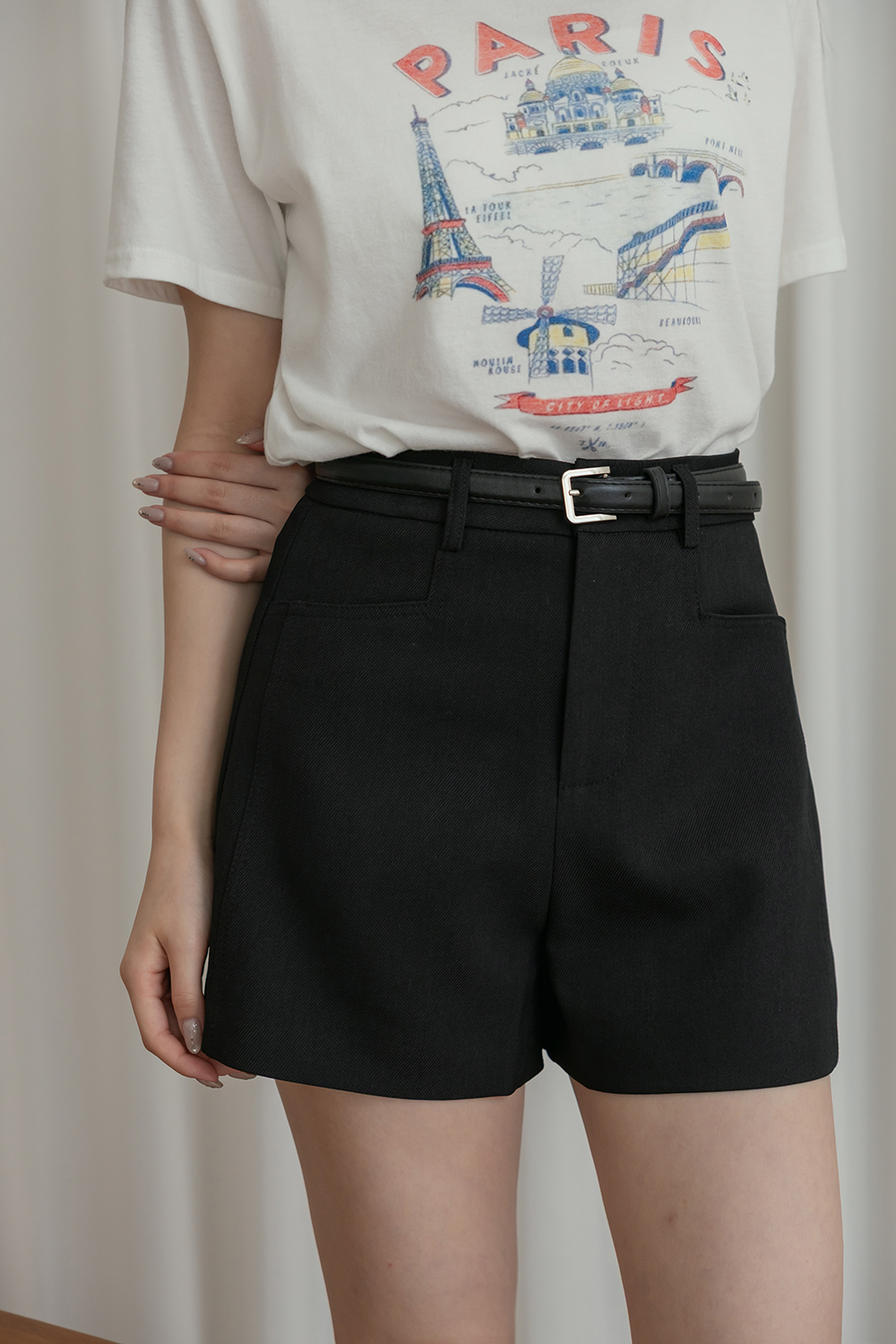 無可挑剔 修身A字短褲附皮帶