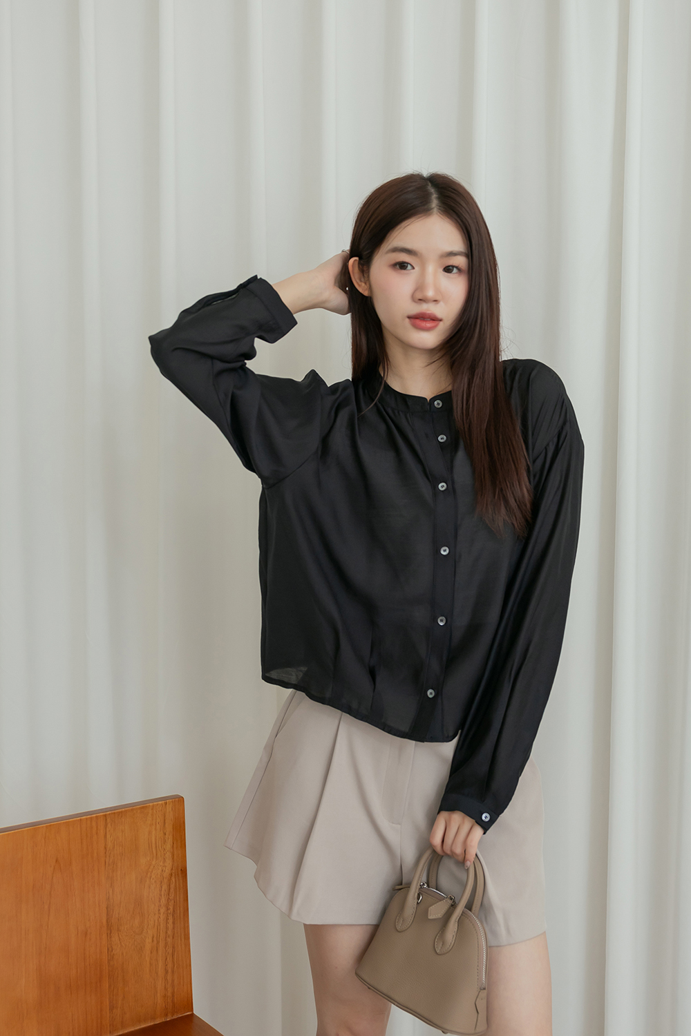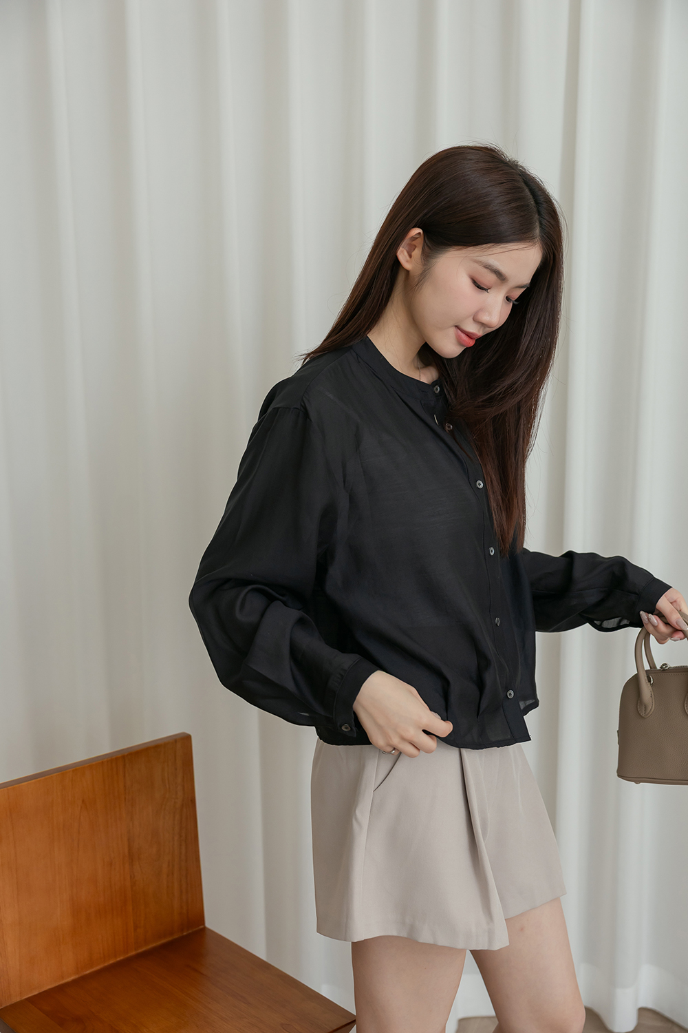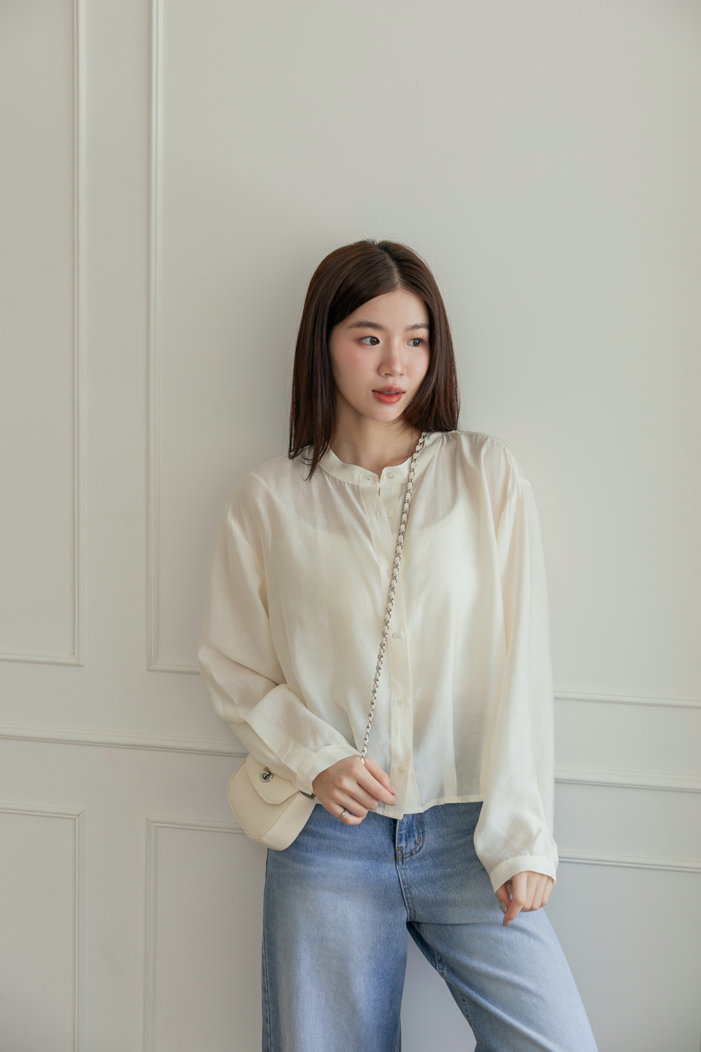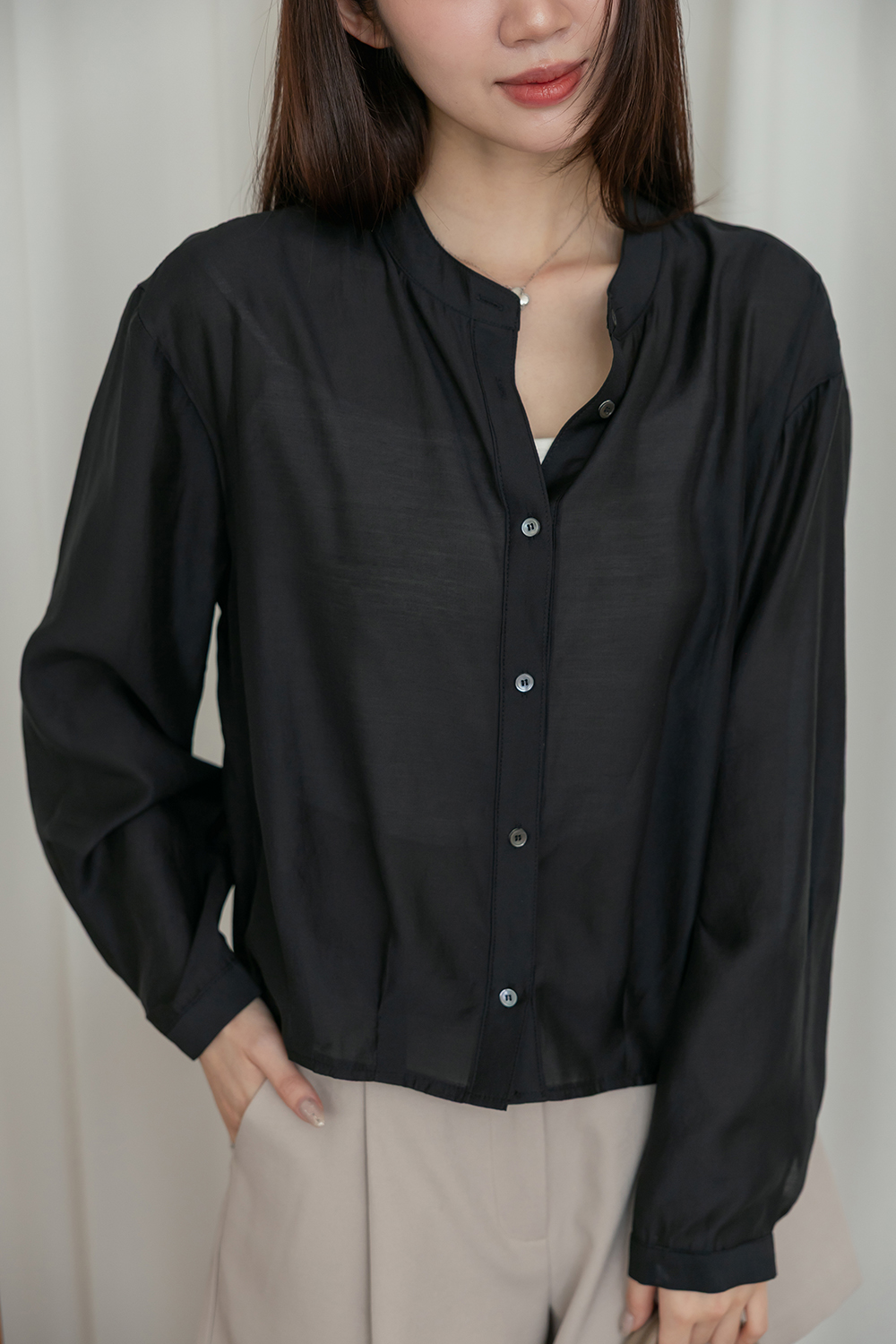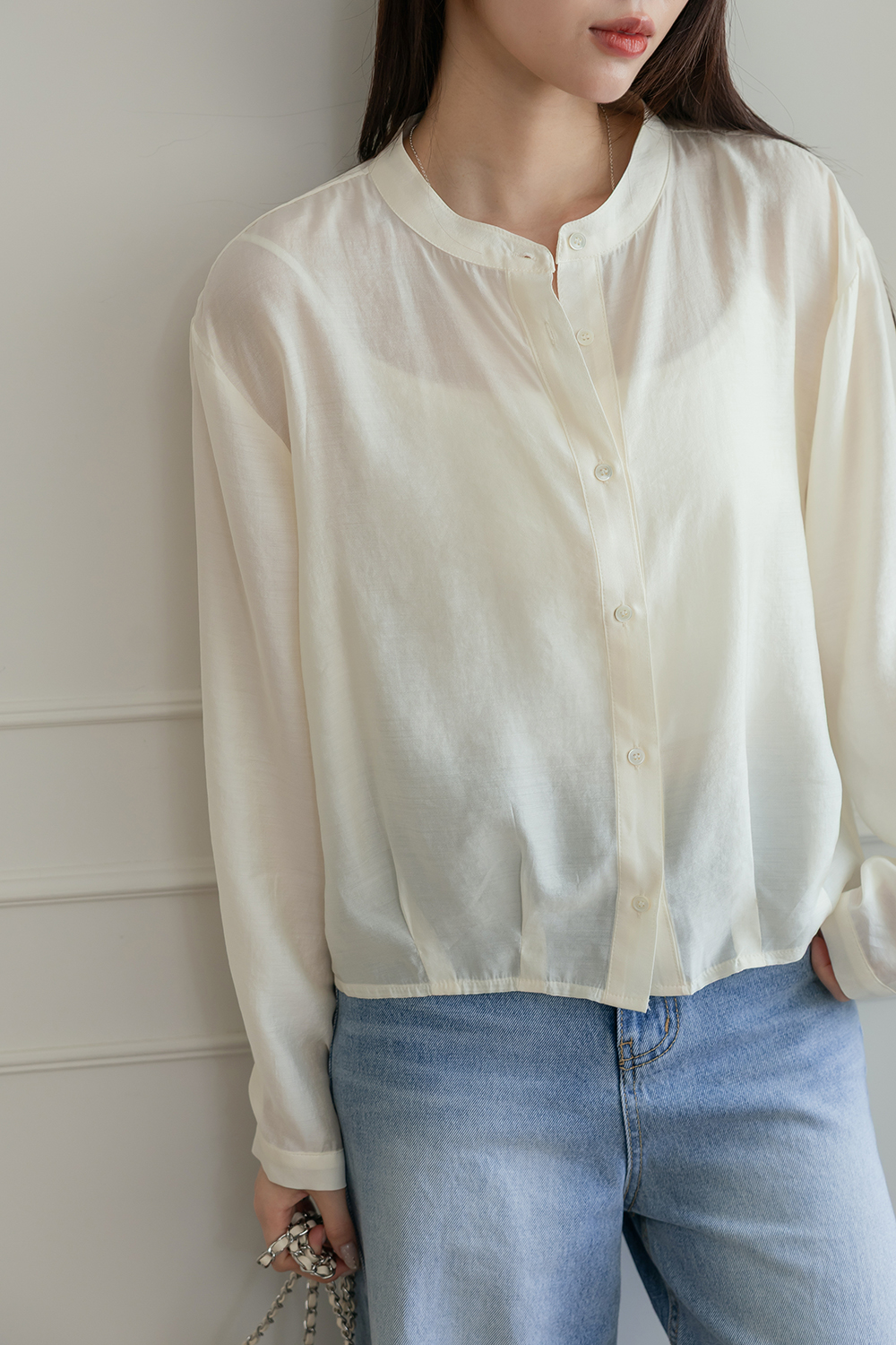 輕透濾鏡 微光澤質感無領襯衫