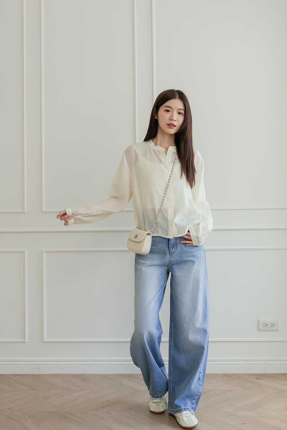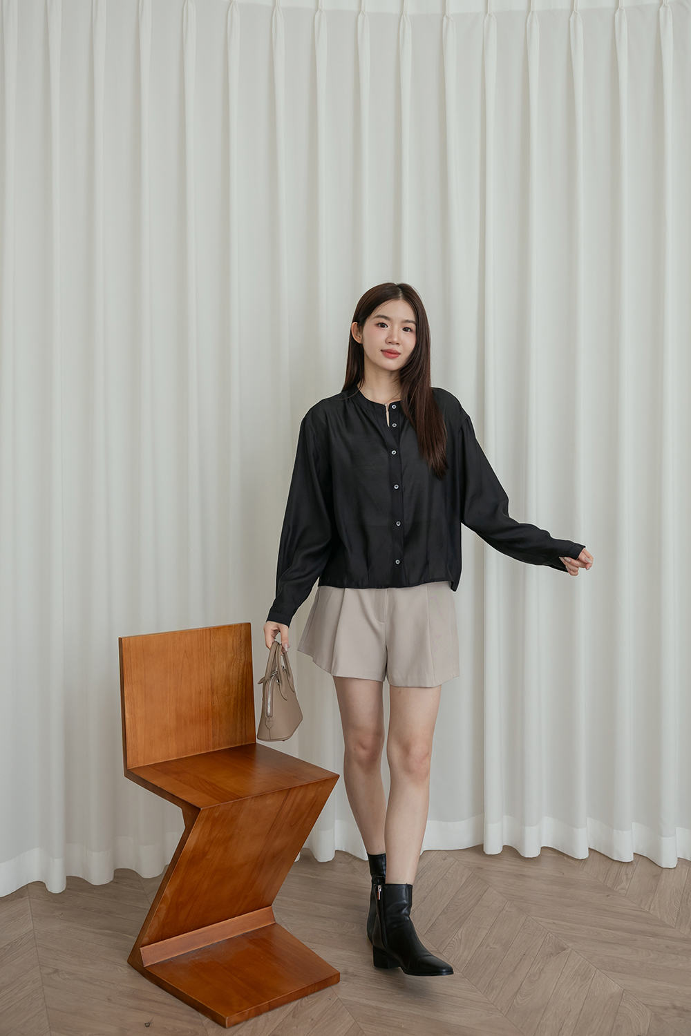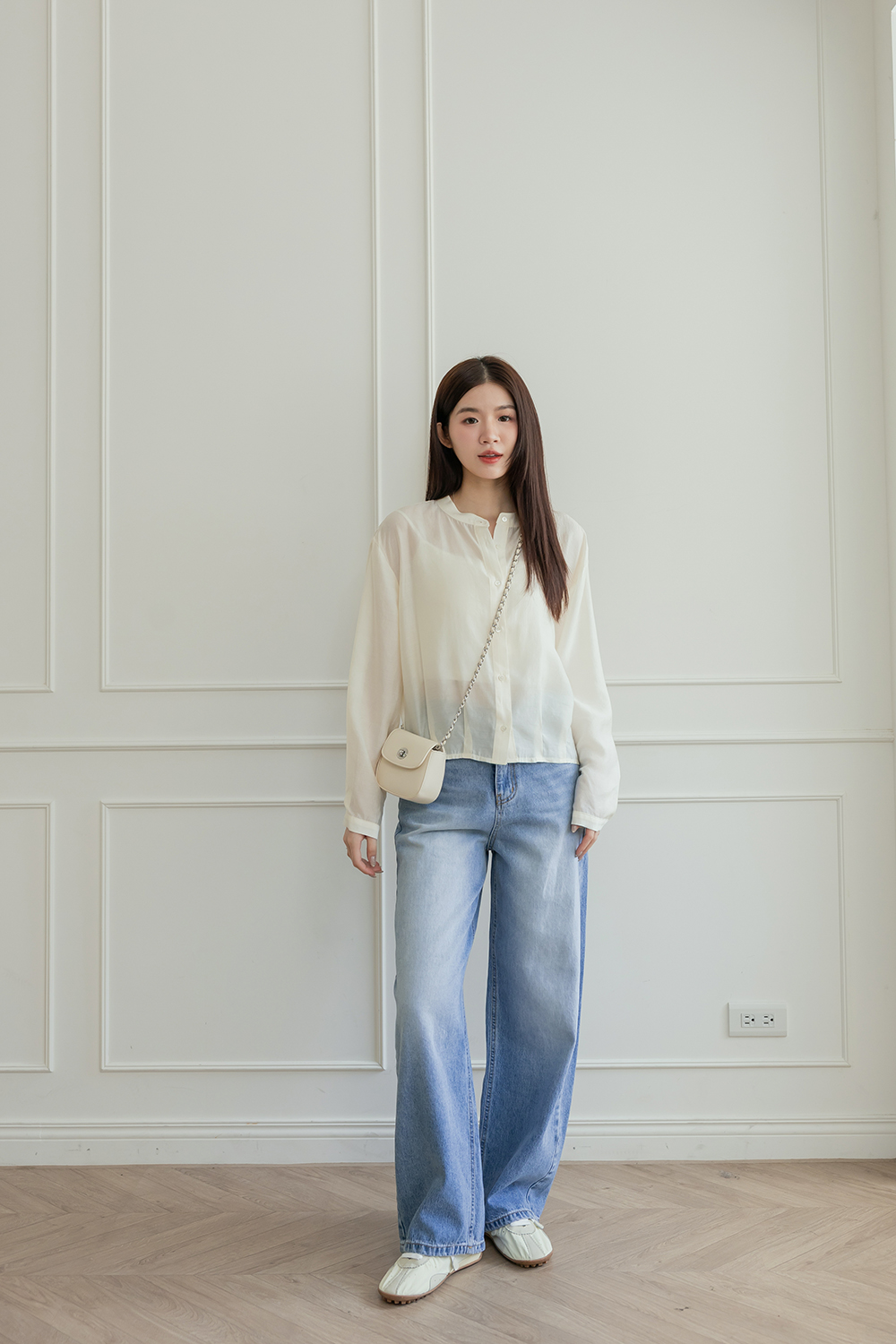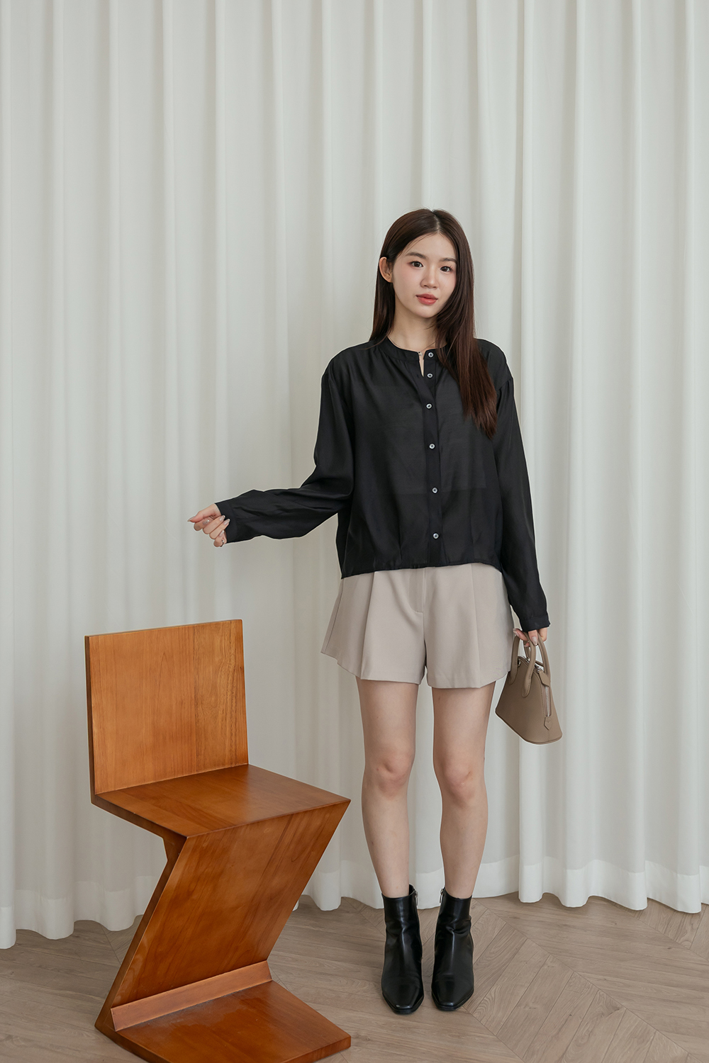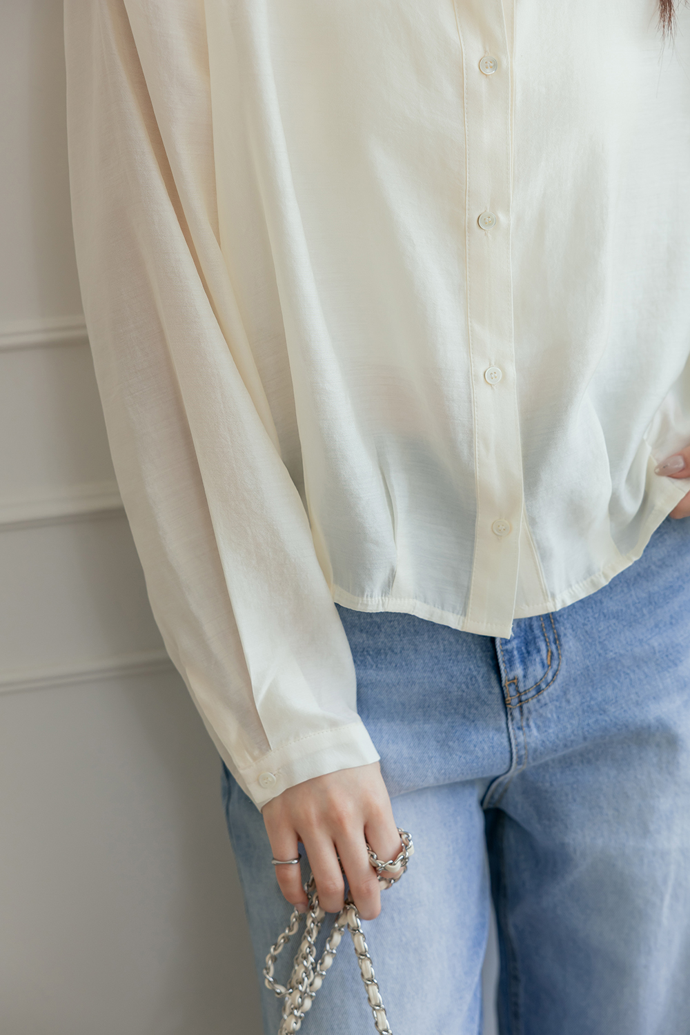 輕透濾鏡 微光澤質感無領襯衫