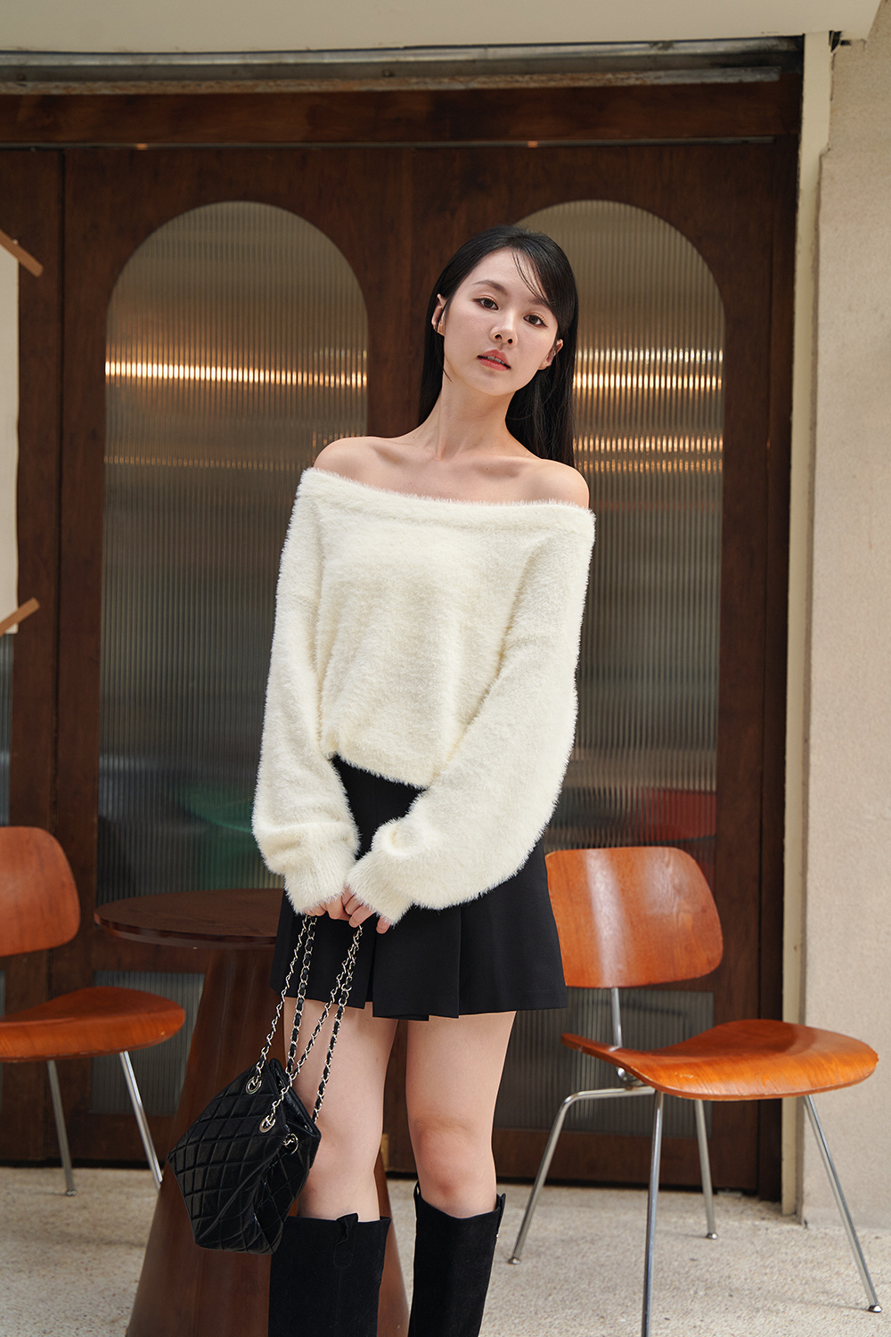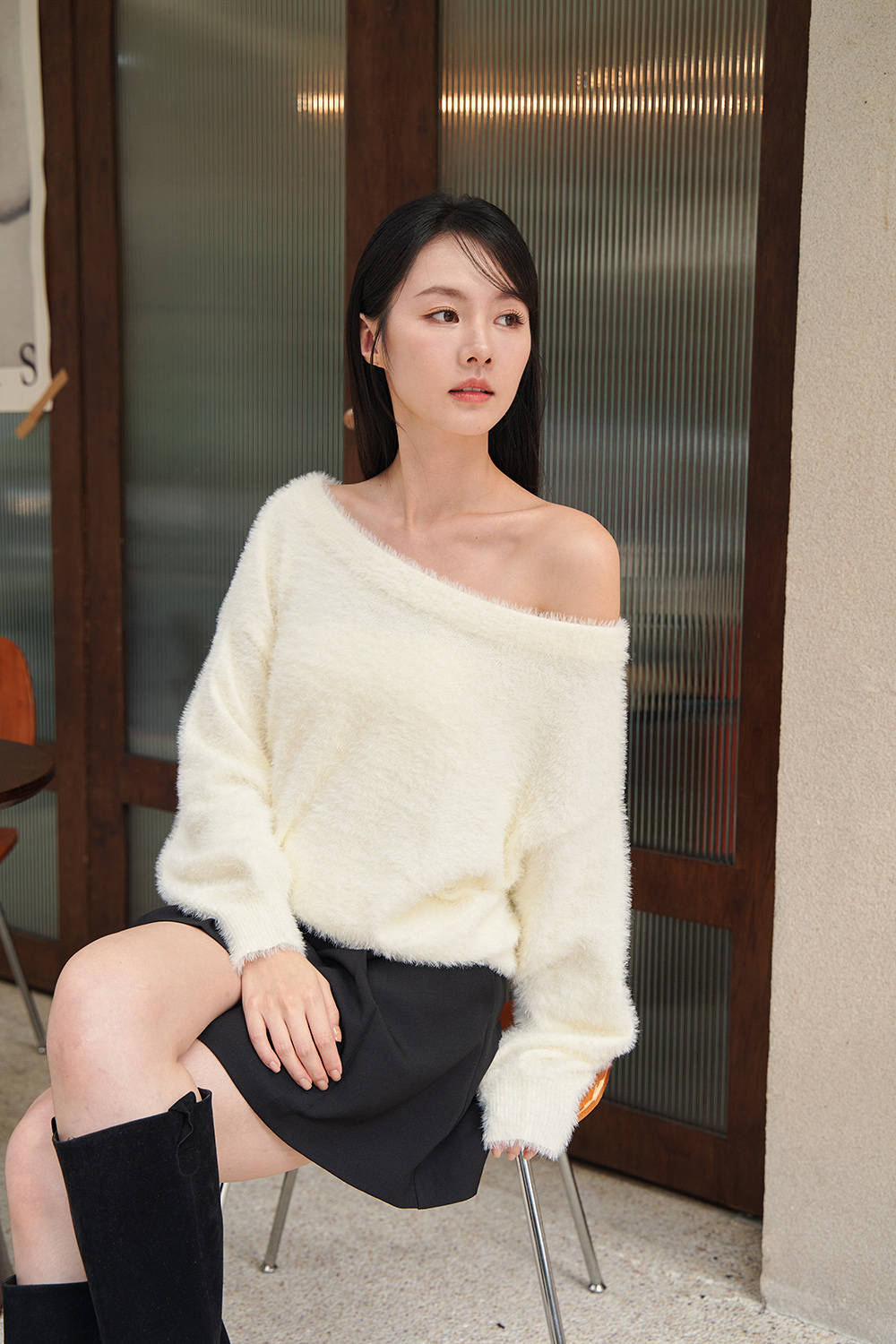 HEALER Made 初戀特調 毛毛斜領針織毛衣