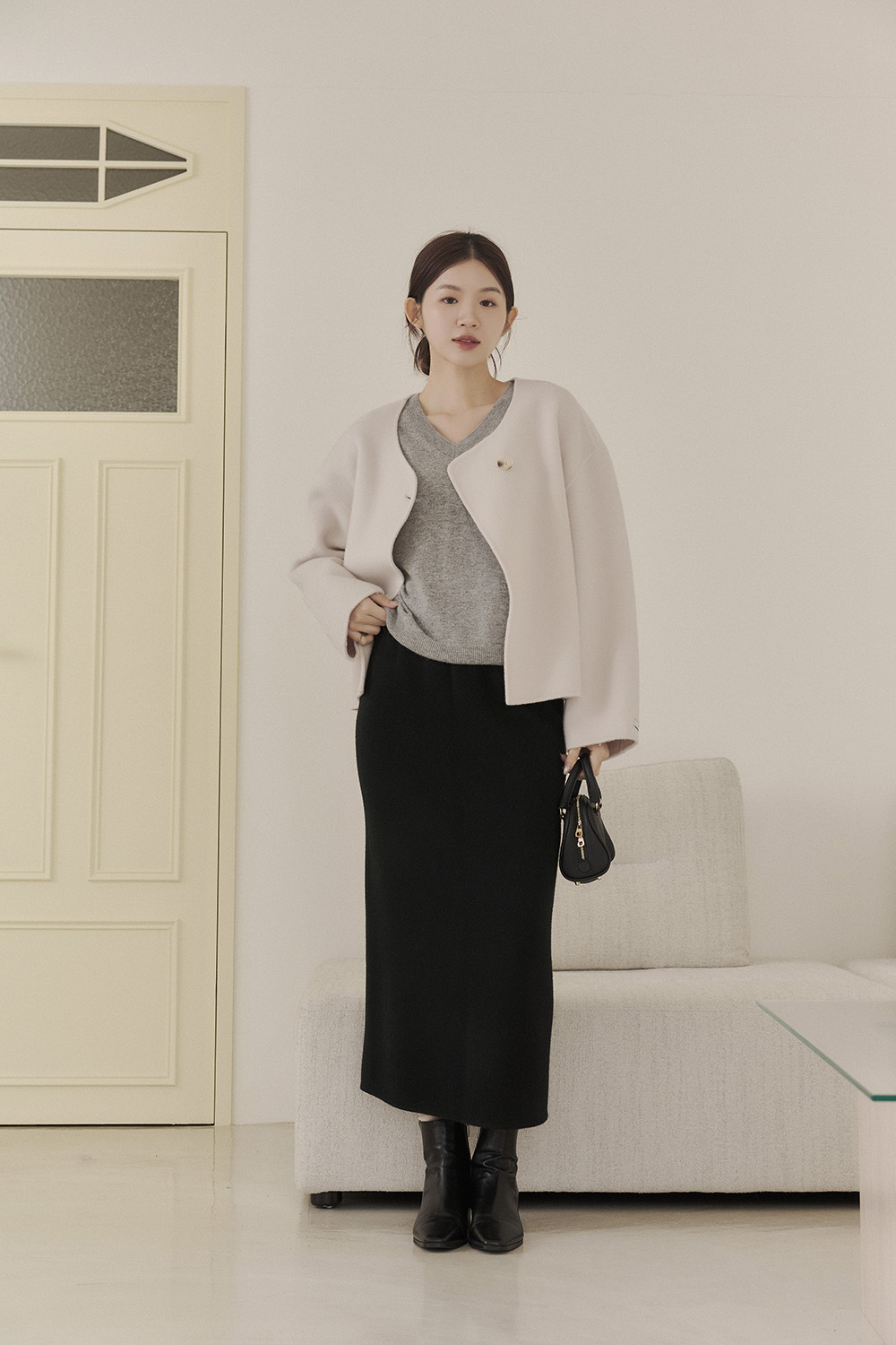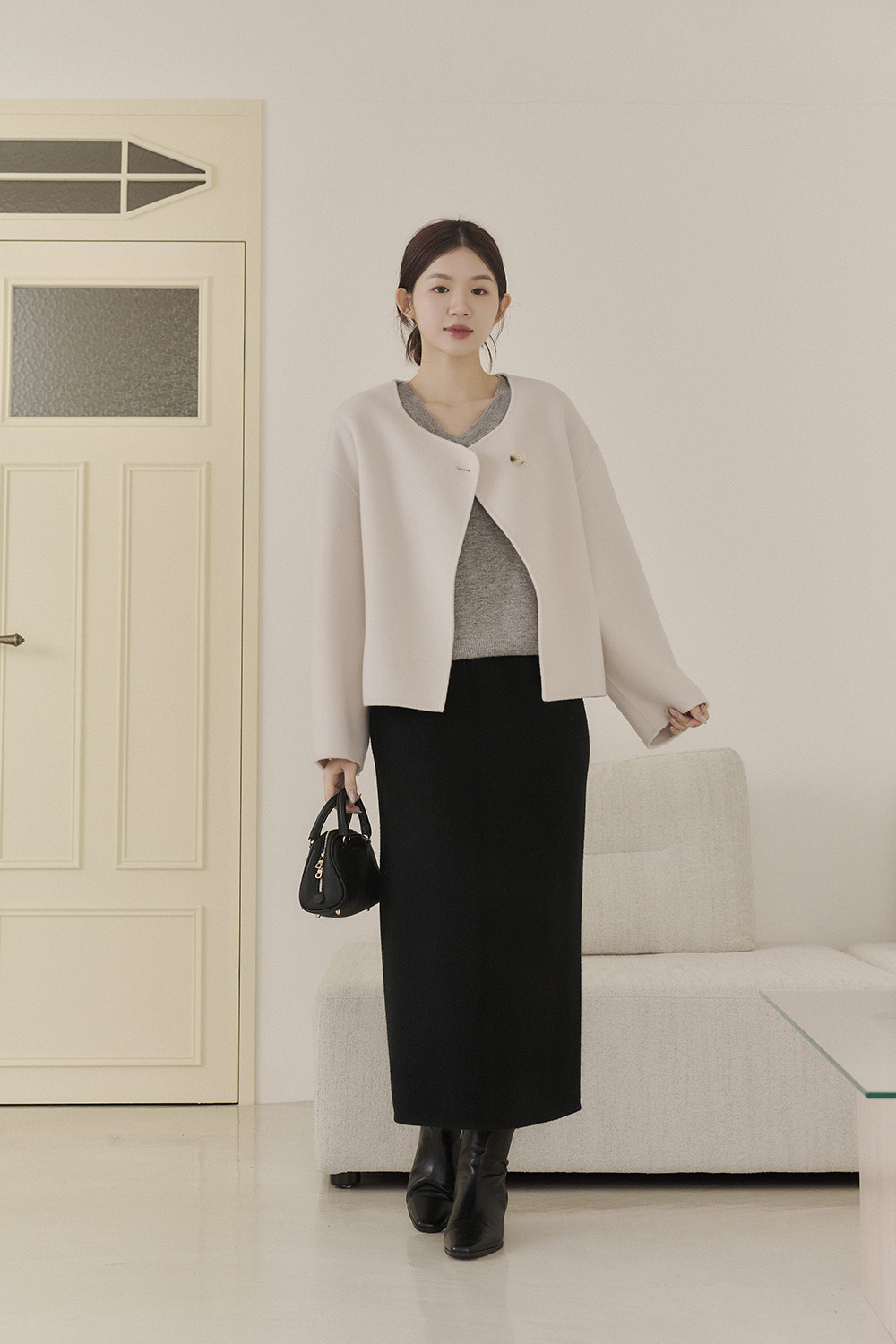 HEALER Made 香榭大道 100%羊毛無領單釦圍巾外套