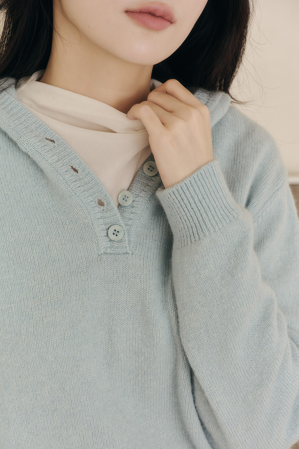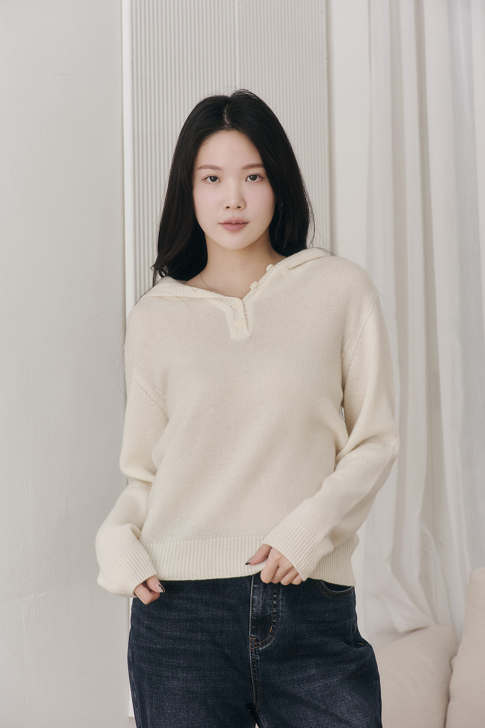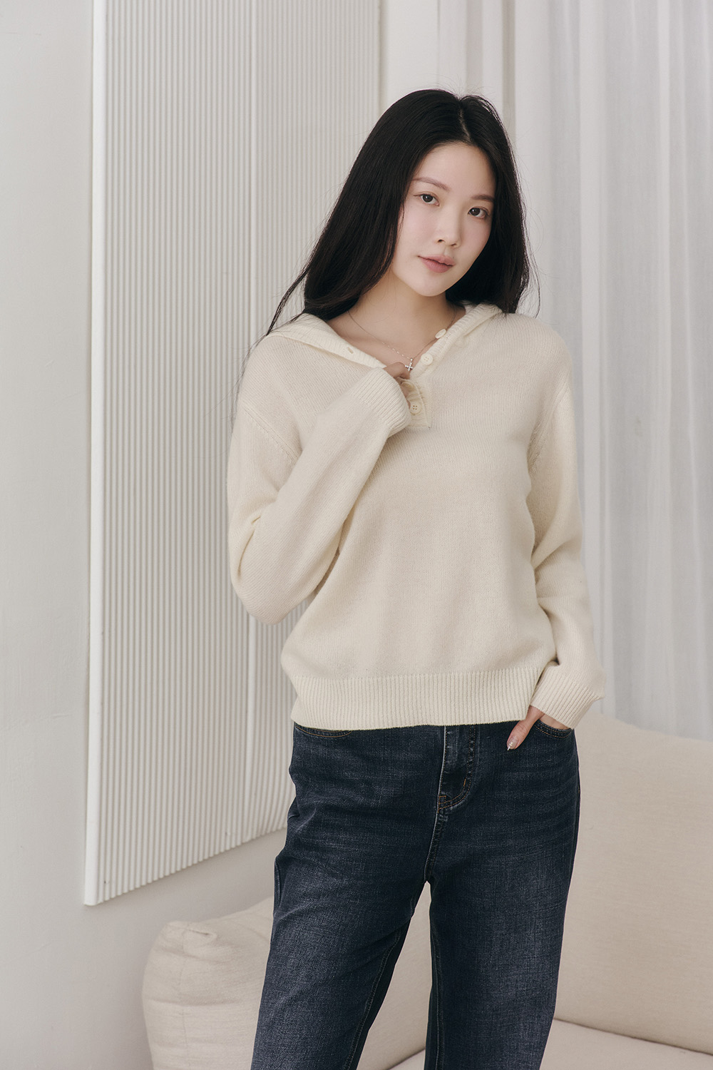 釦子跟毛衣同色 可以打開延伸脖子線條
