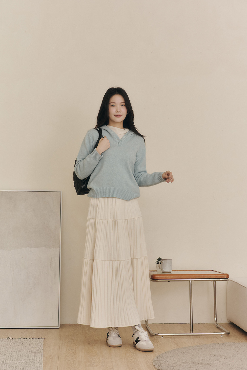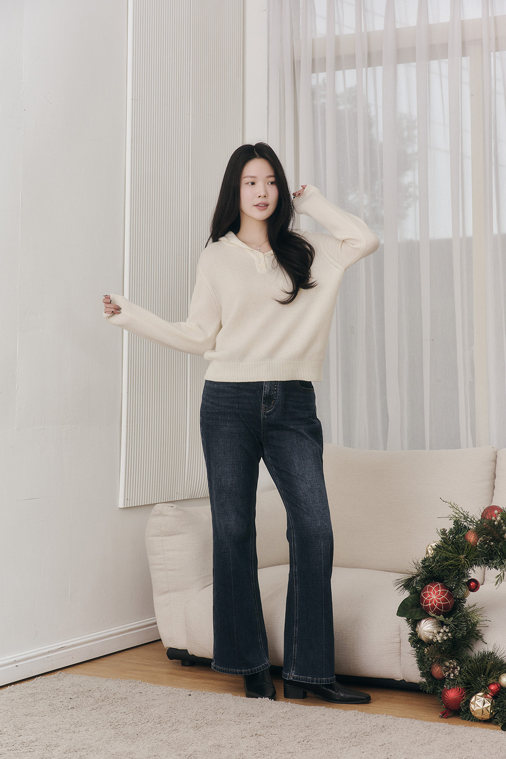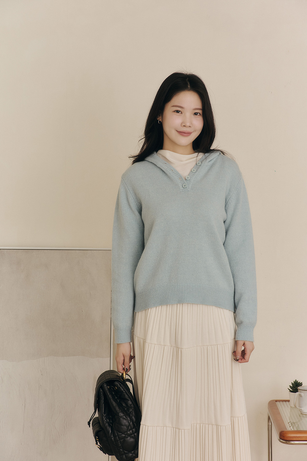 釦子跟毛衣同色 可以打開延伸脖子線條