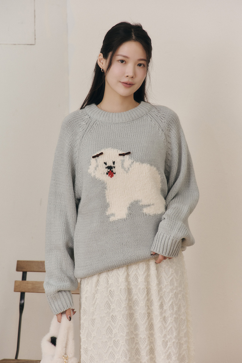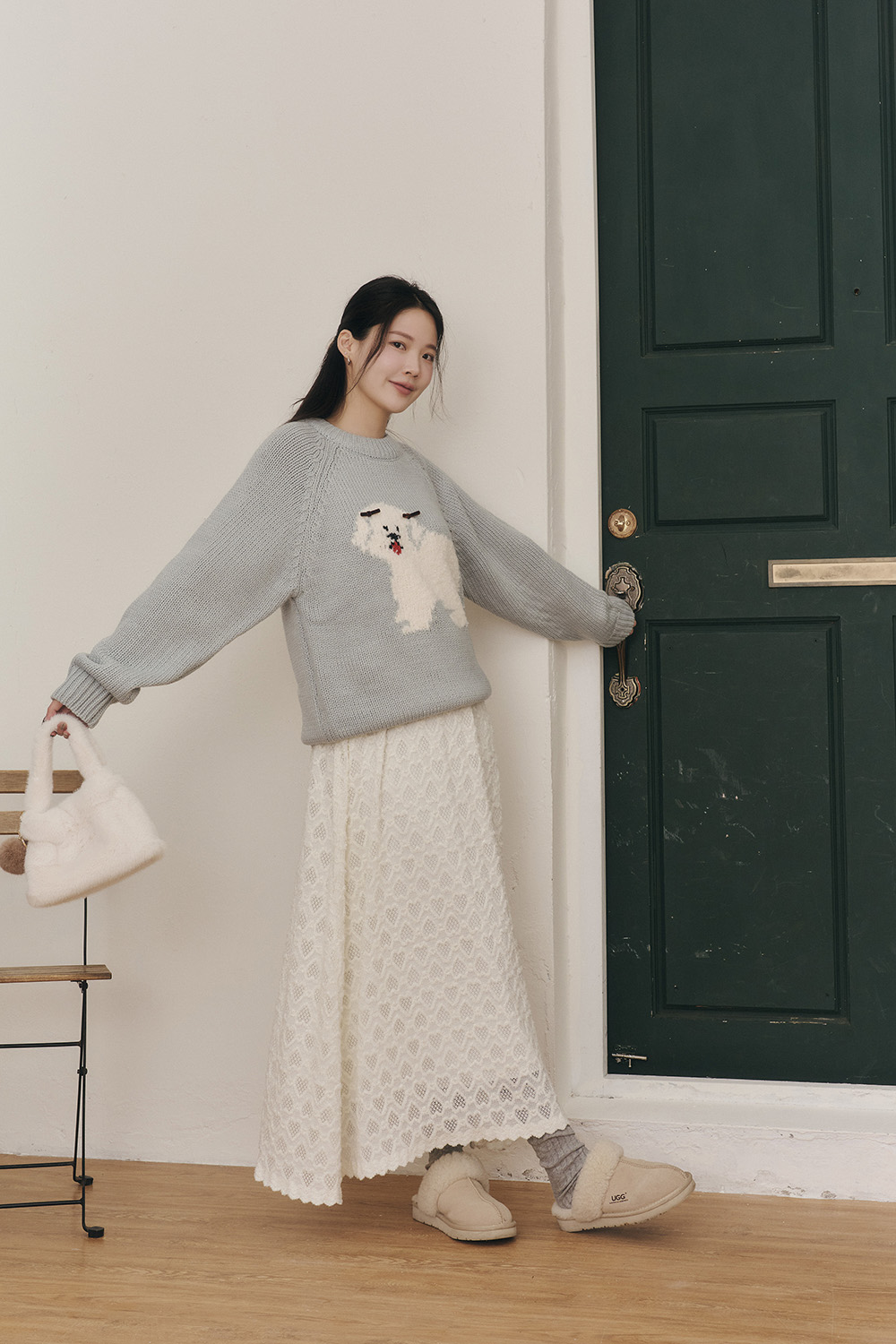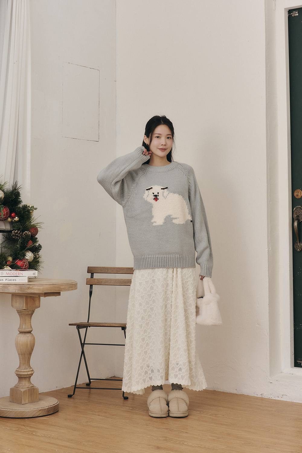 Xmas擠花趣 狗狗緹花粗針織毛衣