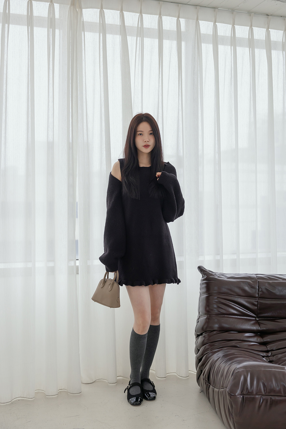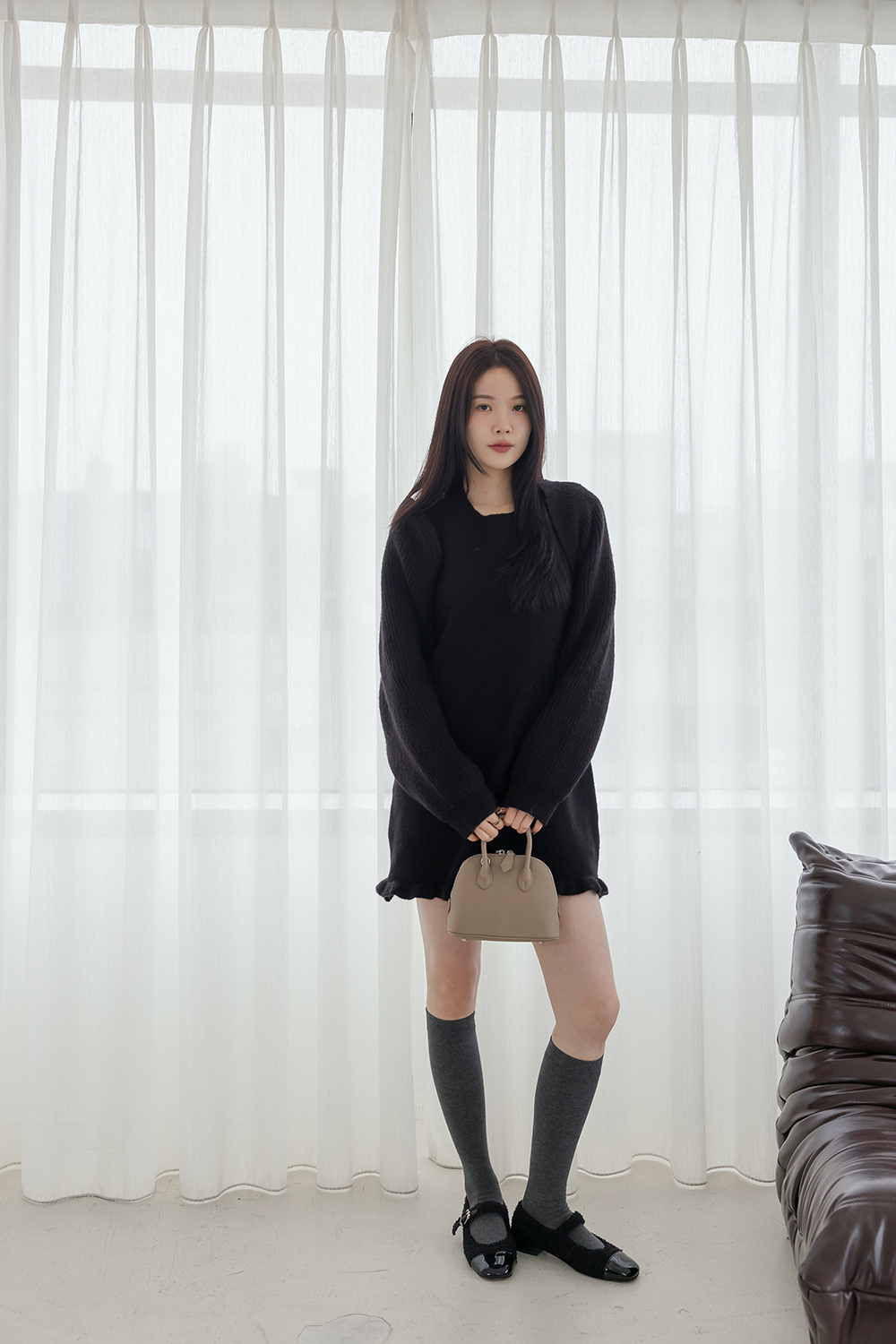 往下延伸小小裙襬還有滾荷葉邊很可愛