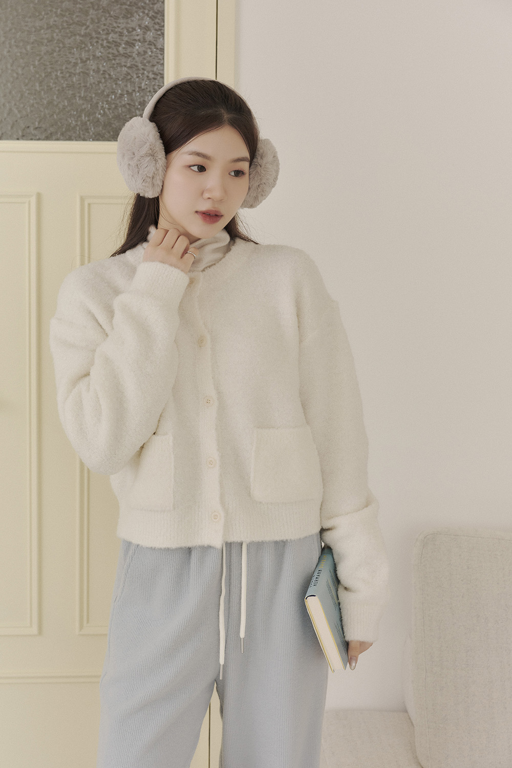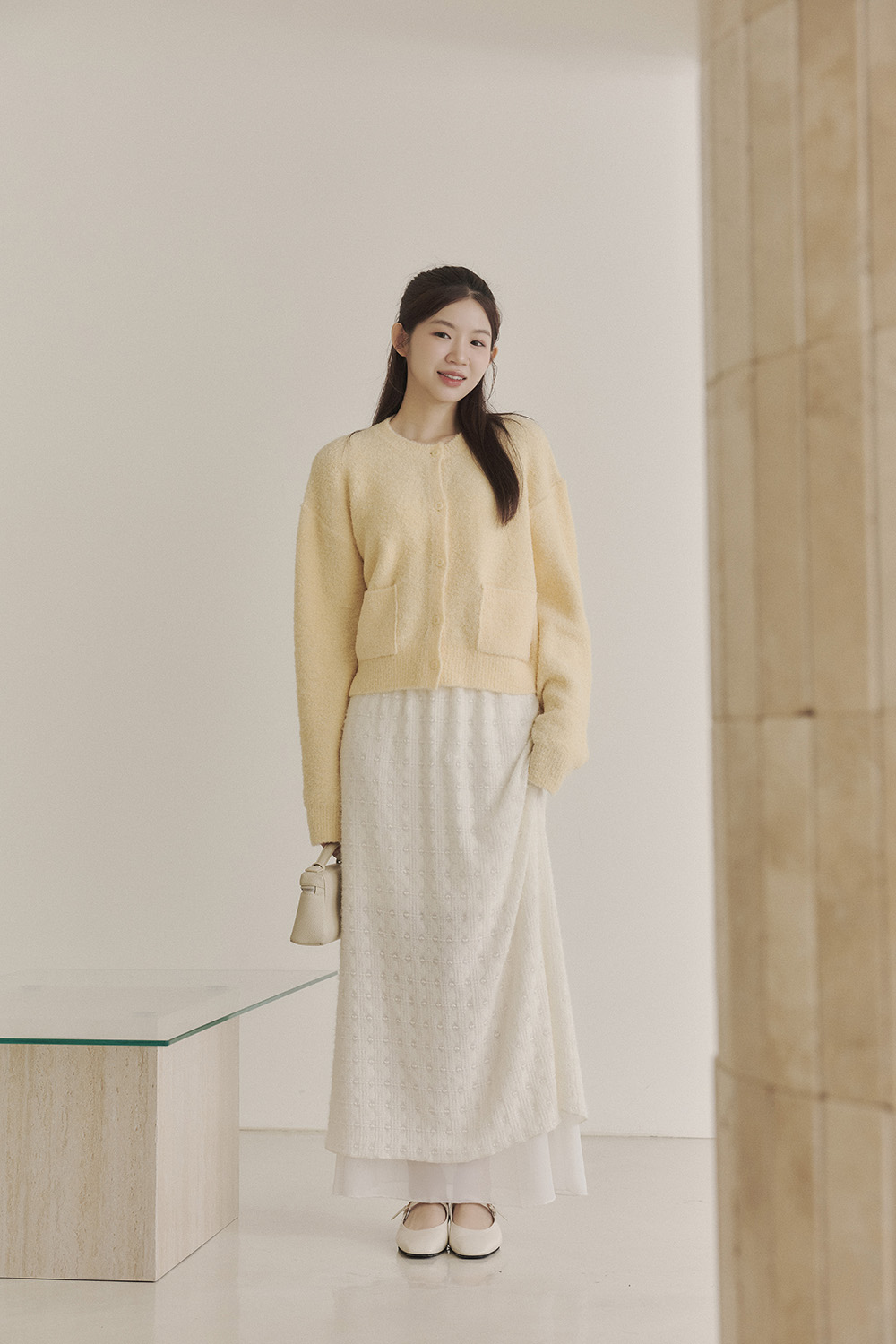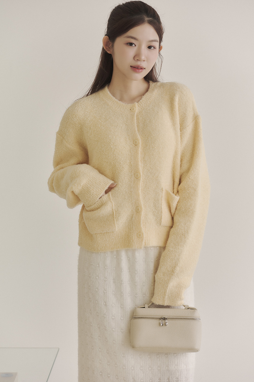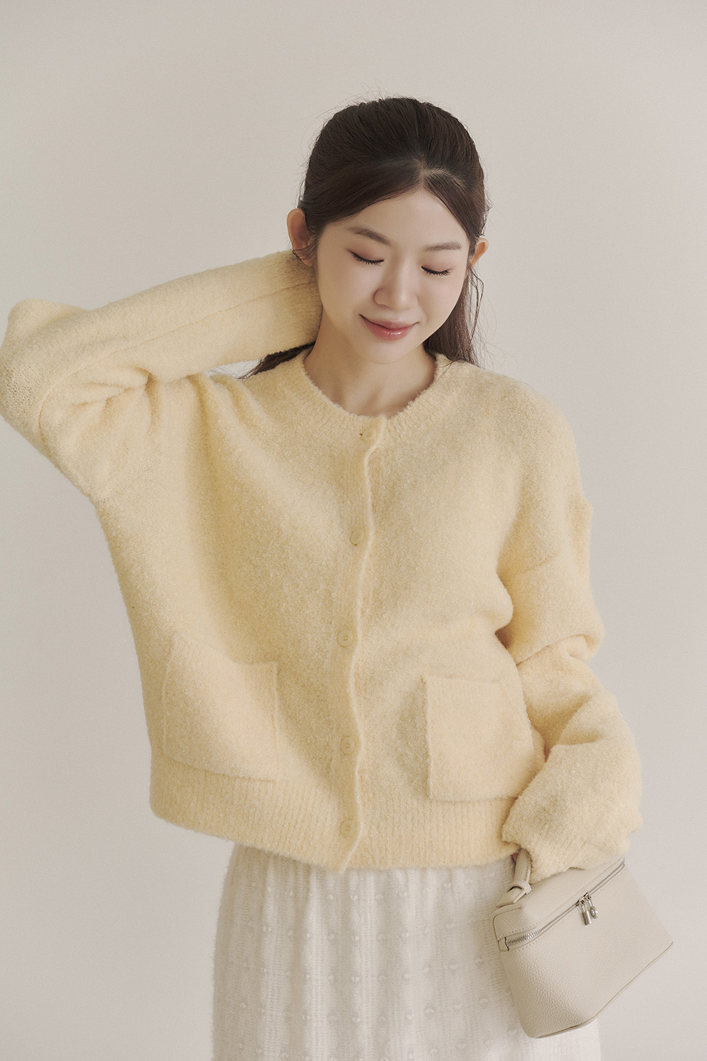 奶油鵝黃 圈圈紗雙口袋針織外套 奶油鵝黃 圈圈紗雙口袋針織外套