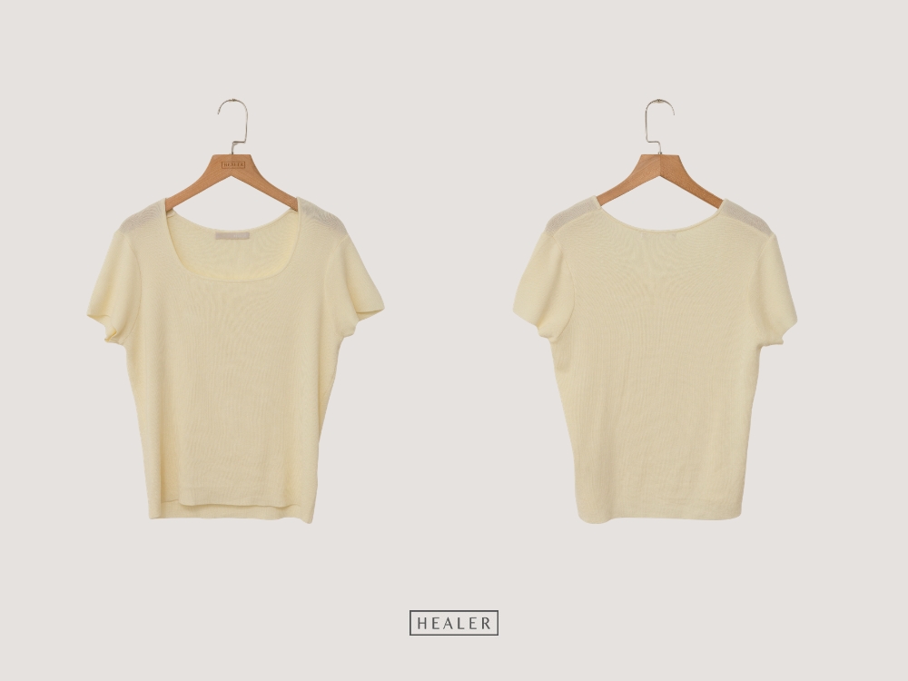 HEALER Made 輕柔舒適 涼感萊賽爾方領短袖針織