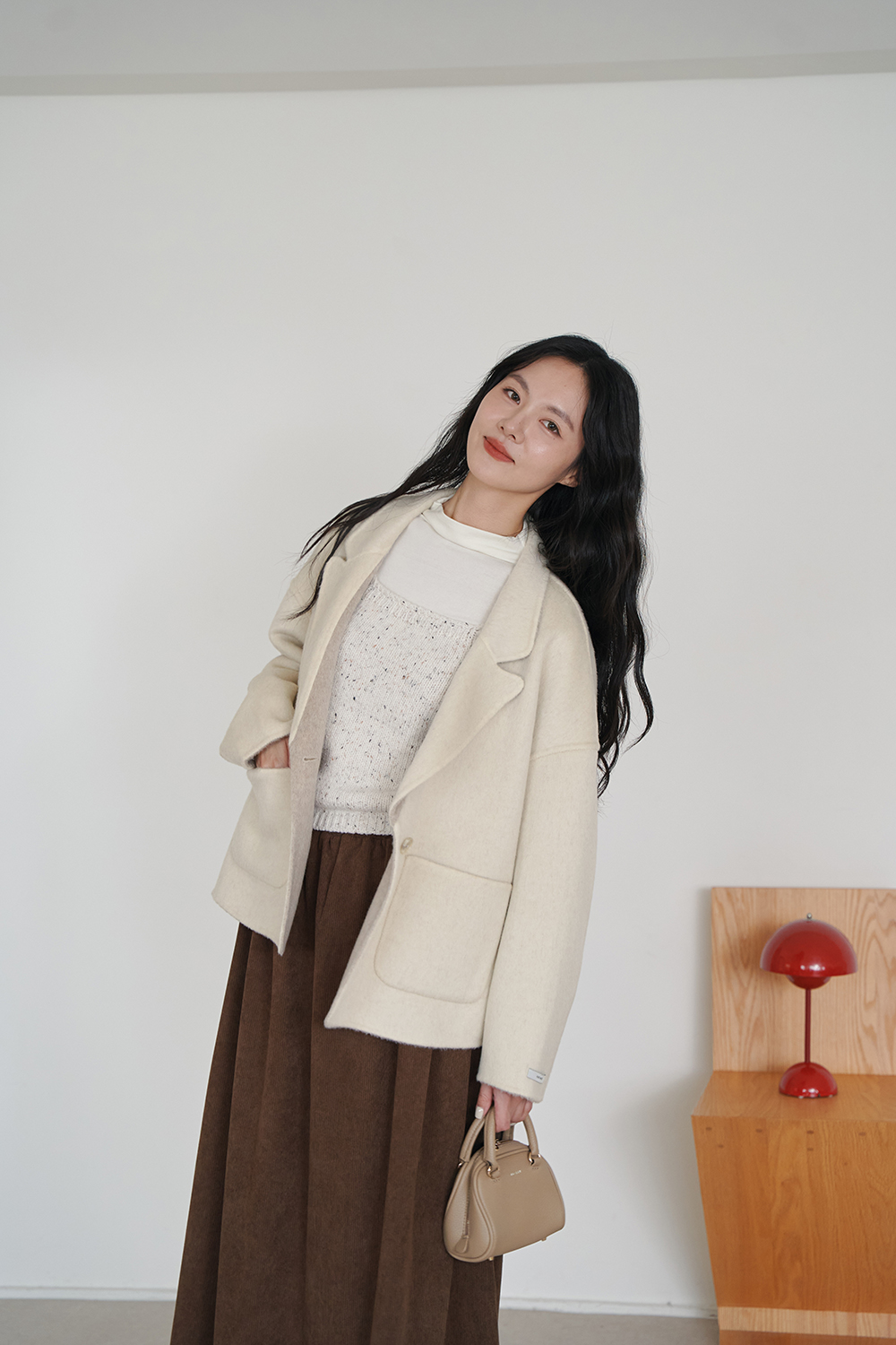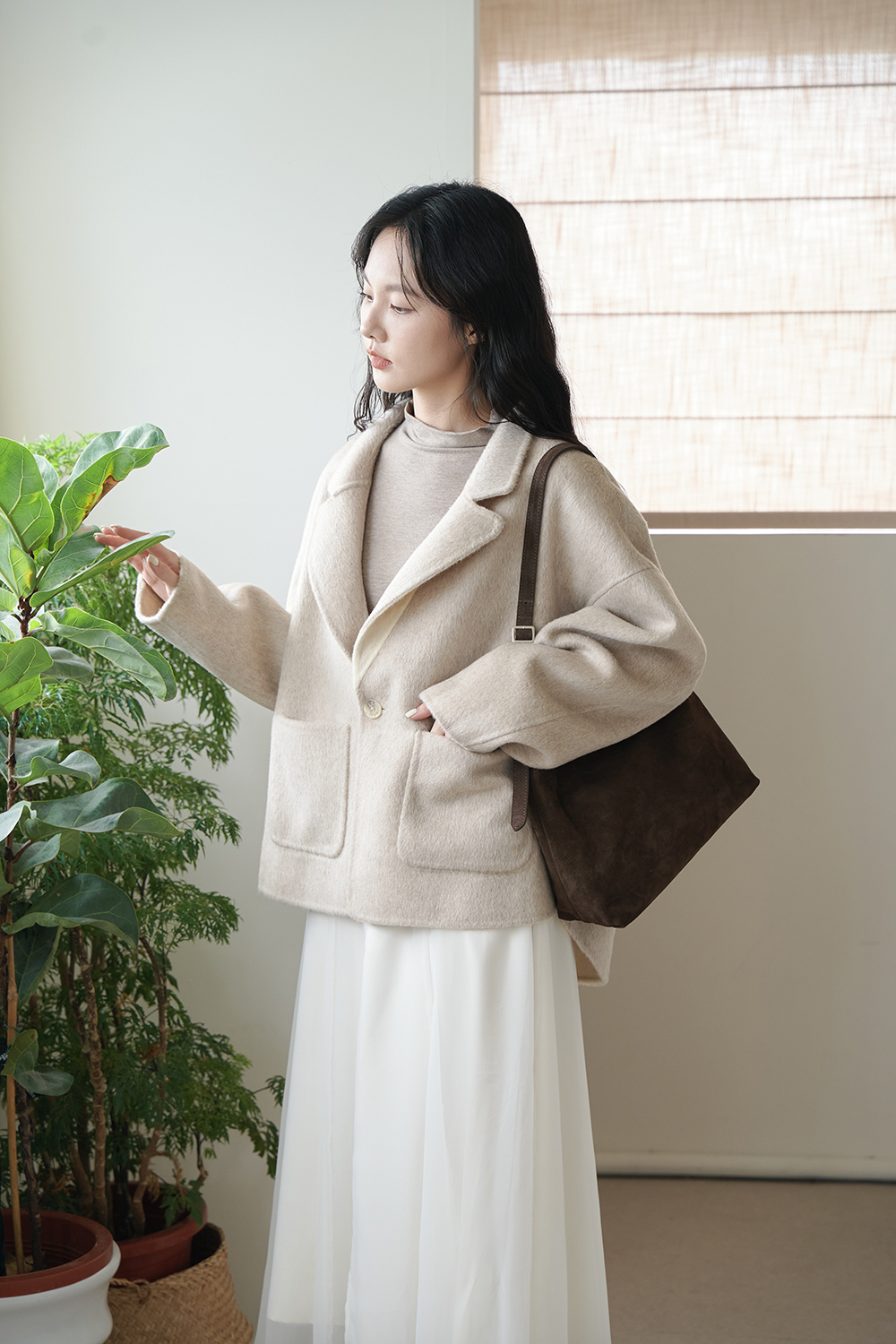 這款的毛羽感比之前的羊毛大衣都明顯一些