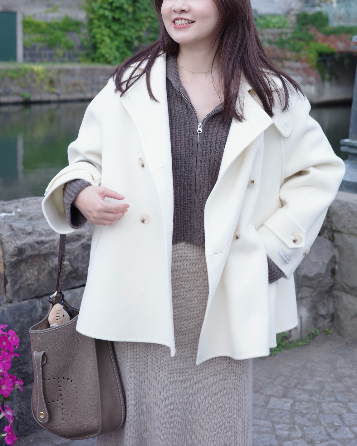 微傘襬斗篷式大衣 完全是炸私訊等級! 穿起來有點小千金氣場感✨ 領片可以拉起來立領 擋風+顯臉小 下身如果搭配短褲短裙 再配長靴自帶氣場真的正到不行耶(好直男的形容哈哈😎!! 排釦我們沒有制式的從領口設計到底 中間第二顆刻意不縫製 有種不會太正式的休閒簡約感 🤍白色是氣質名媛色 🖤黑色是高雅時尚小千金 ✦材質成份:白:80%羊毛+20%聚酯纖維 黑:100%羊毛