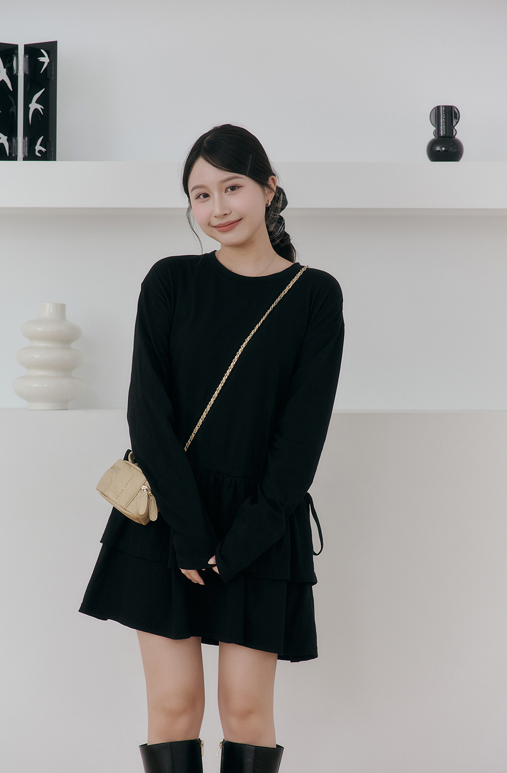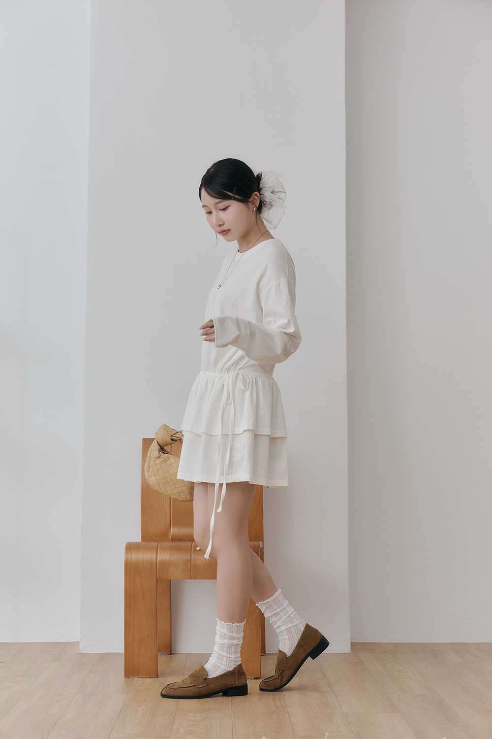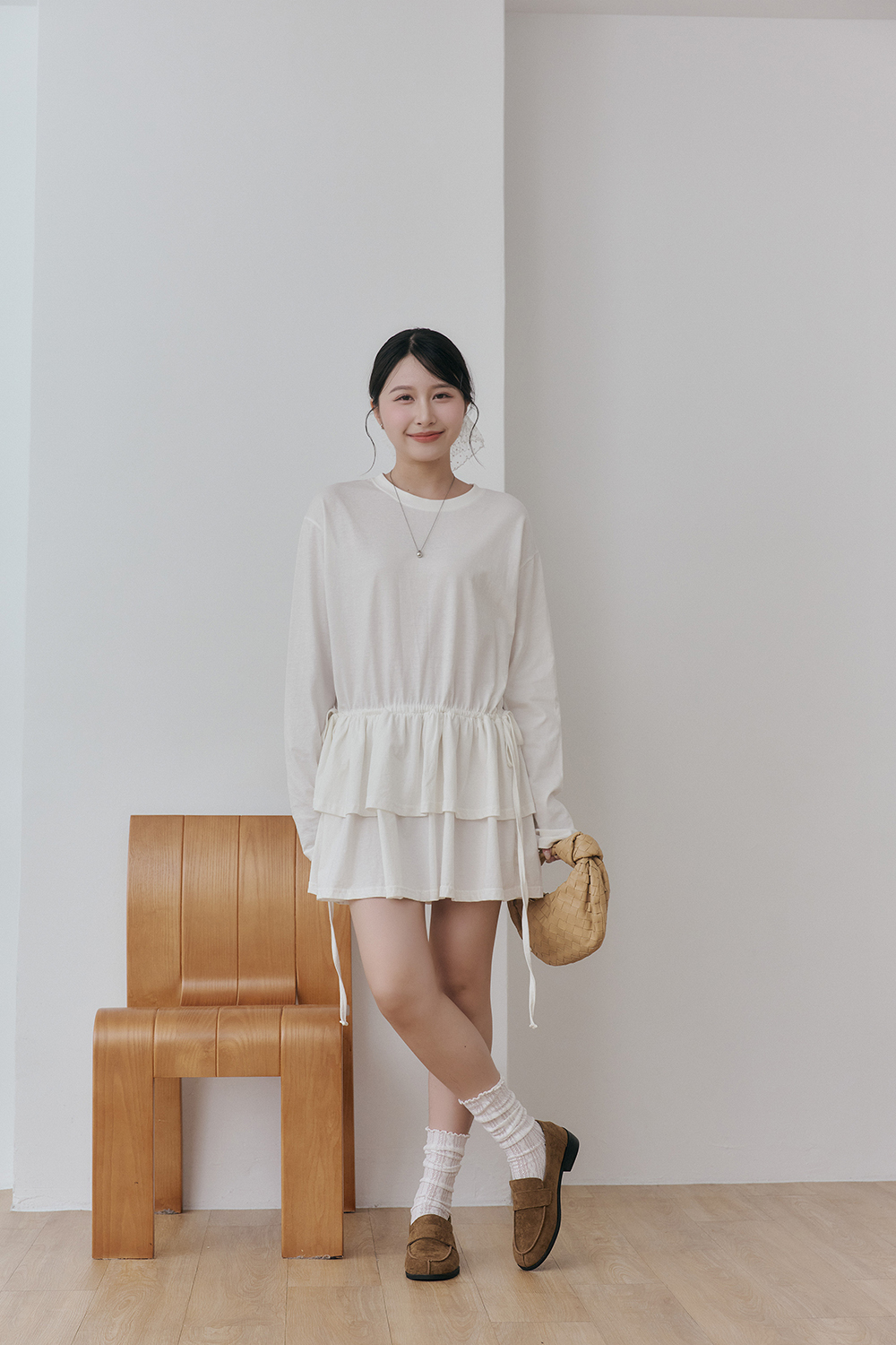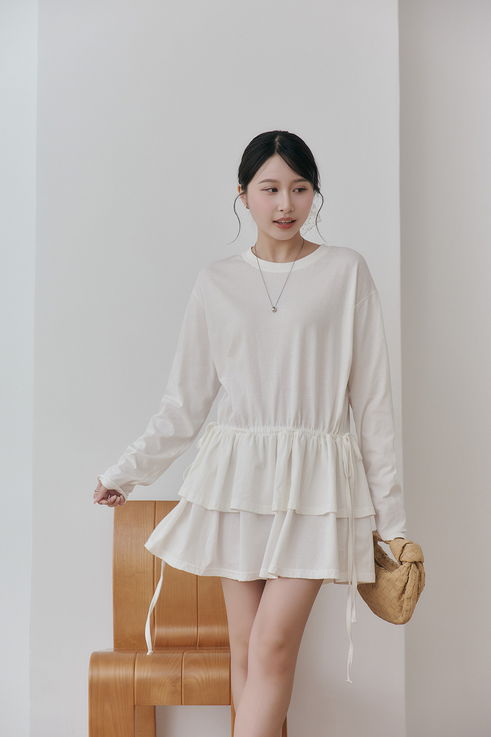 如果比較高的女孩也可以把抽繩綁高腰身