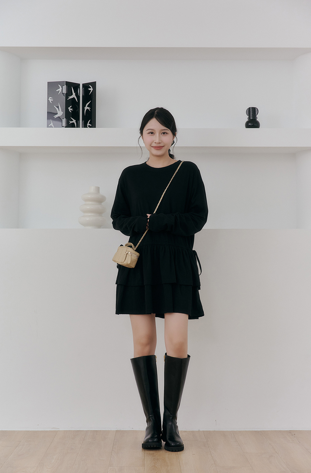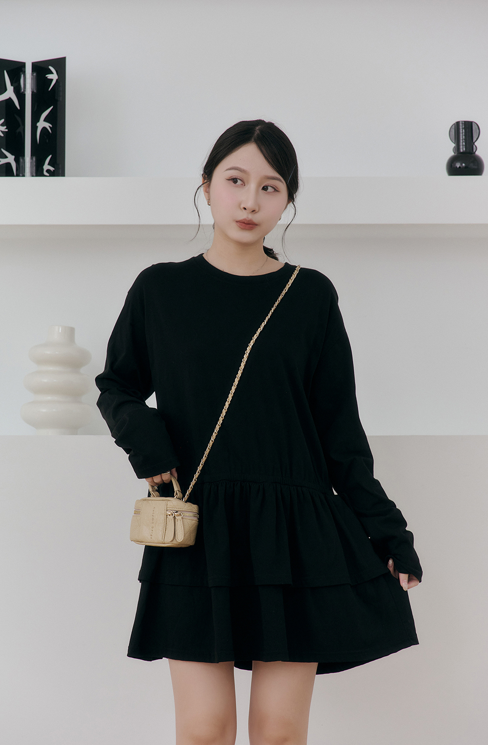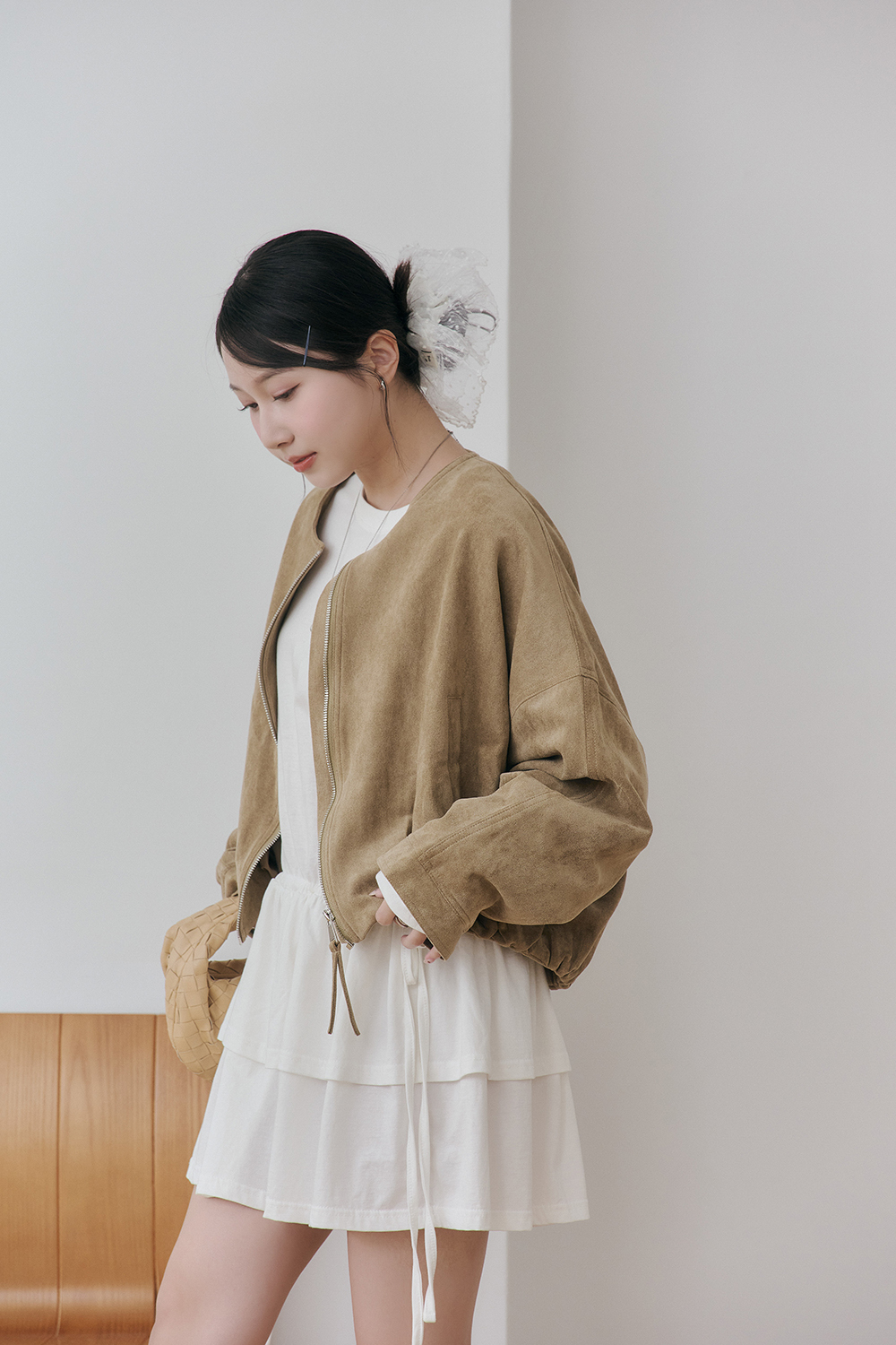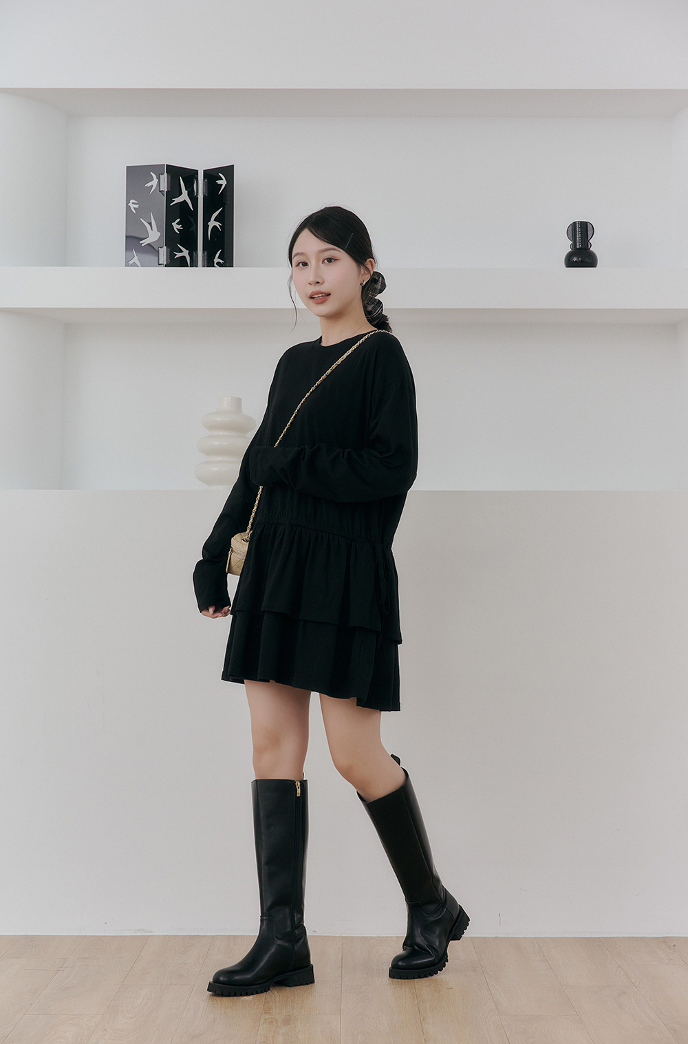 如果比較高的女孩也可以把抽繩綁高腰身