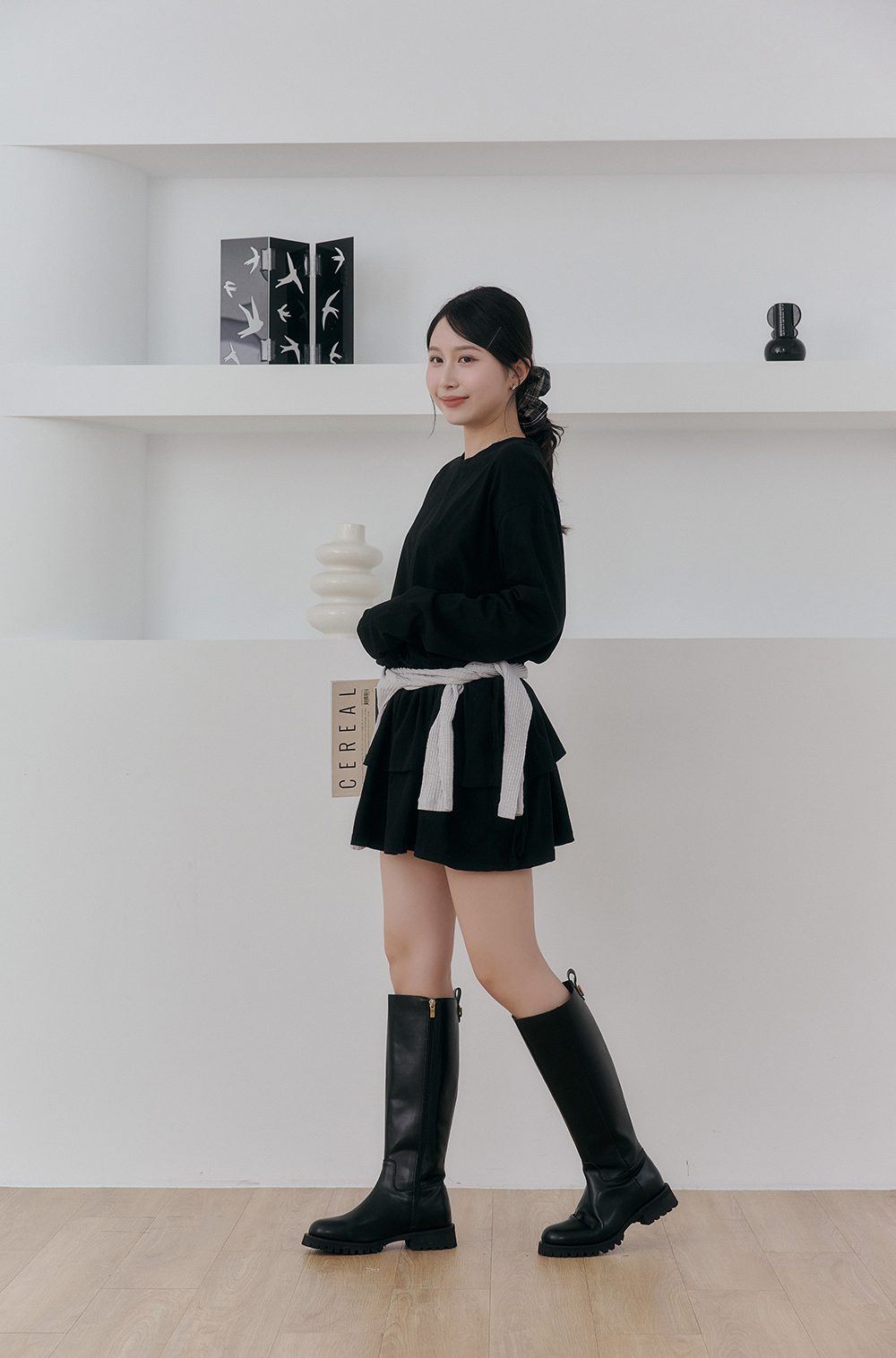 下面配長褲 韓國歐膩也會這樣穿