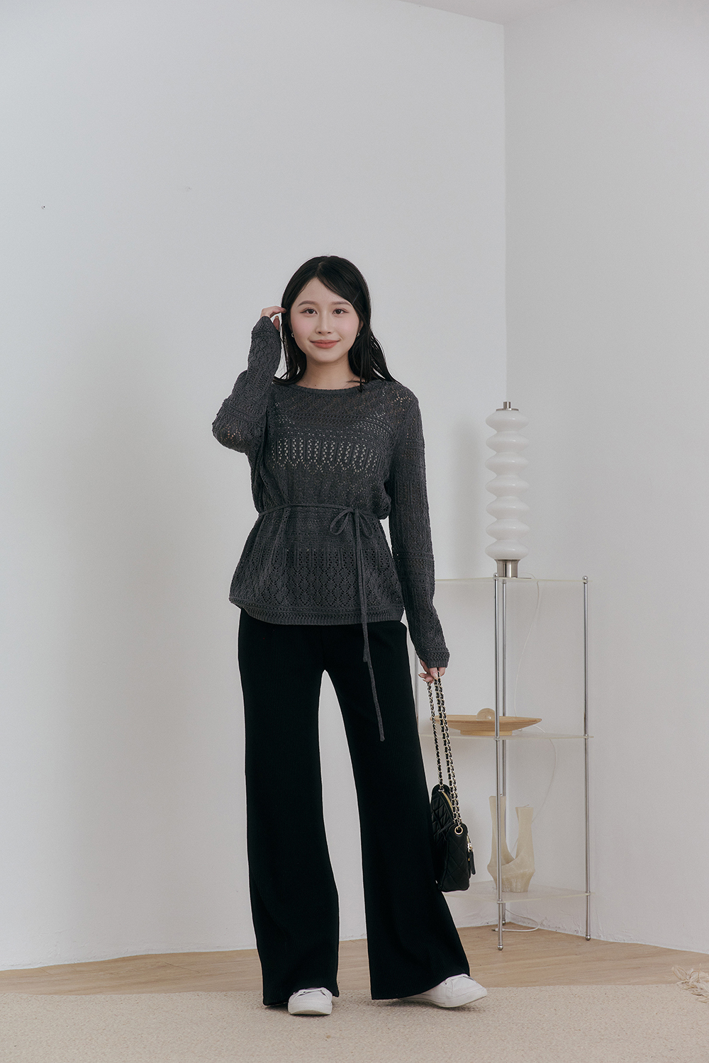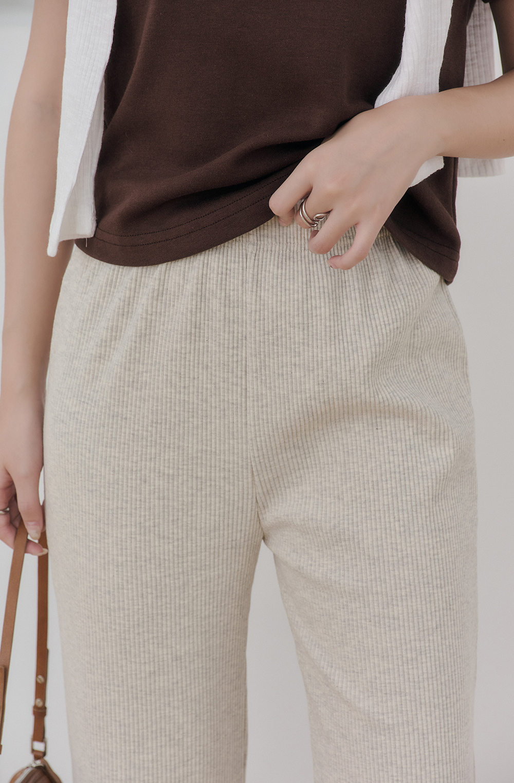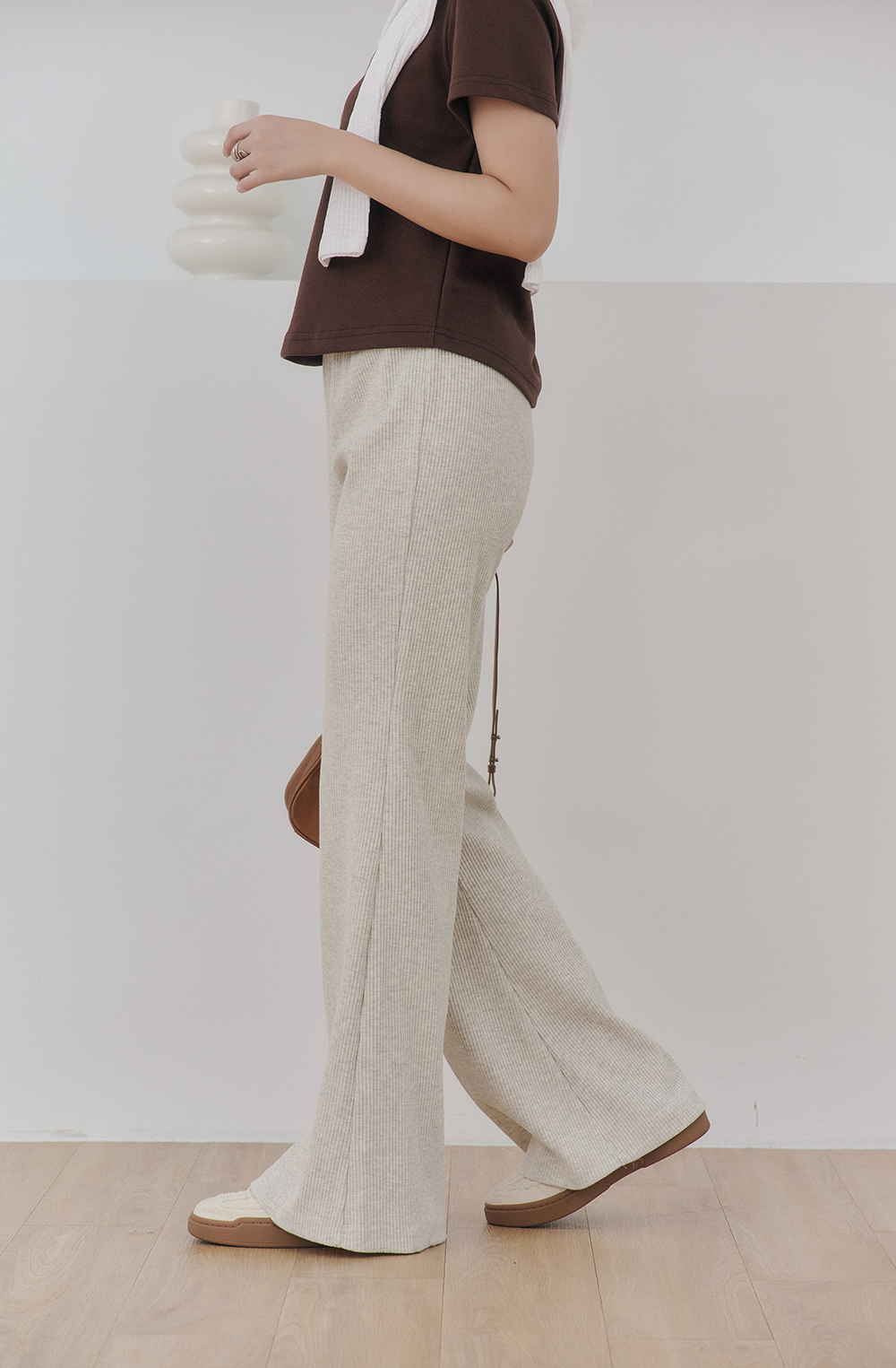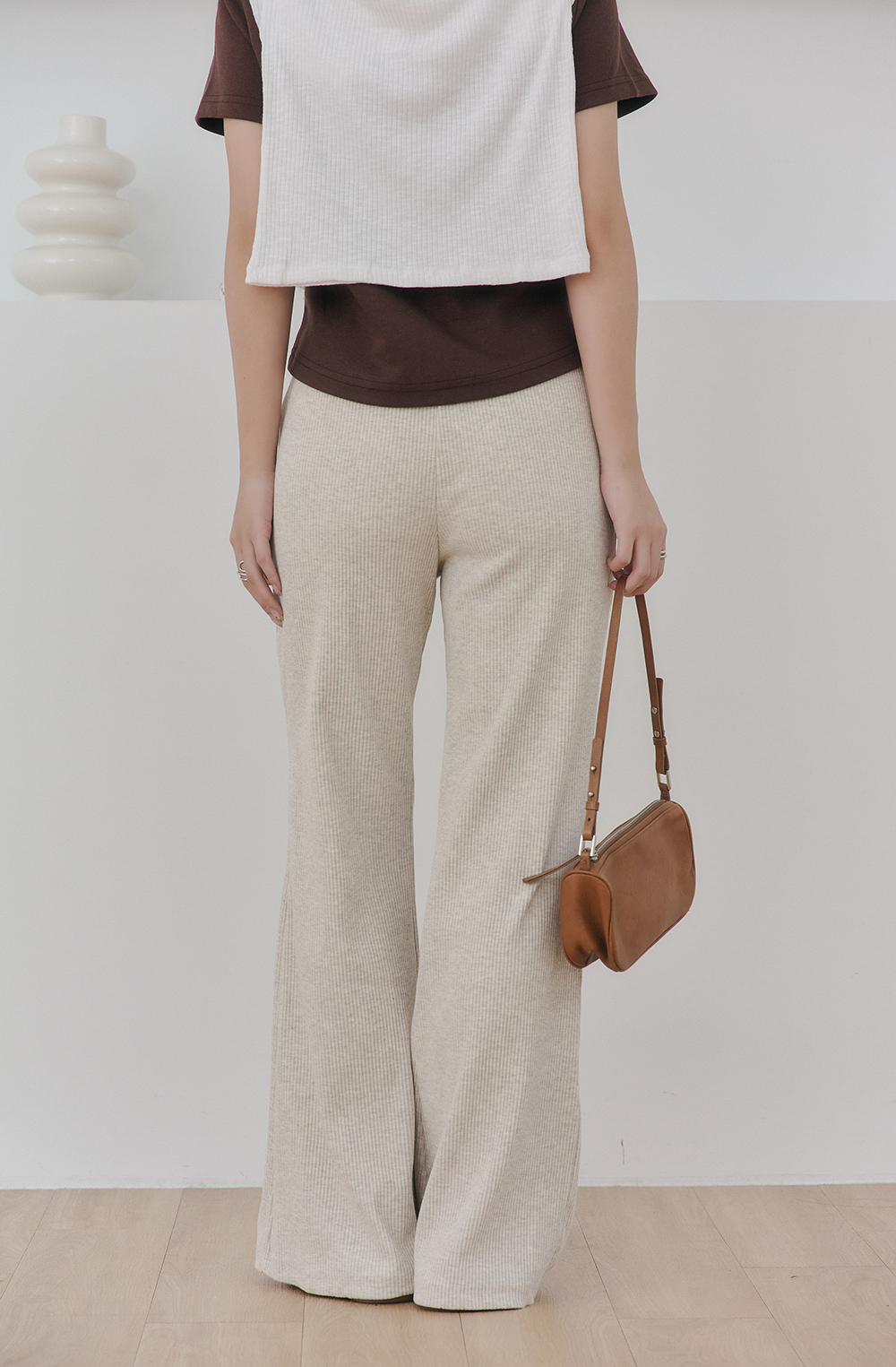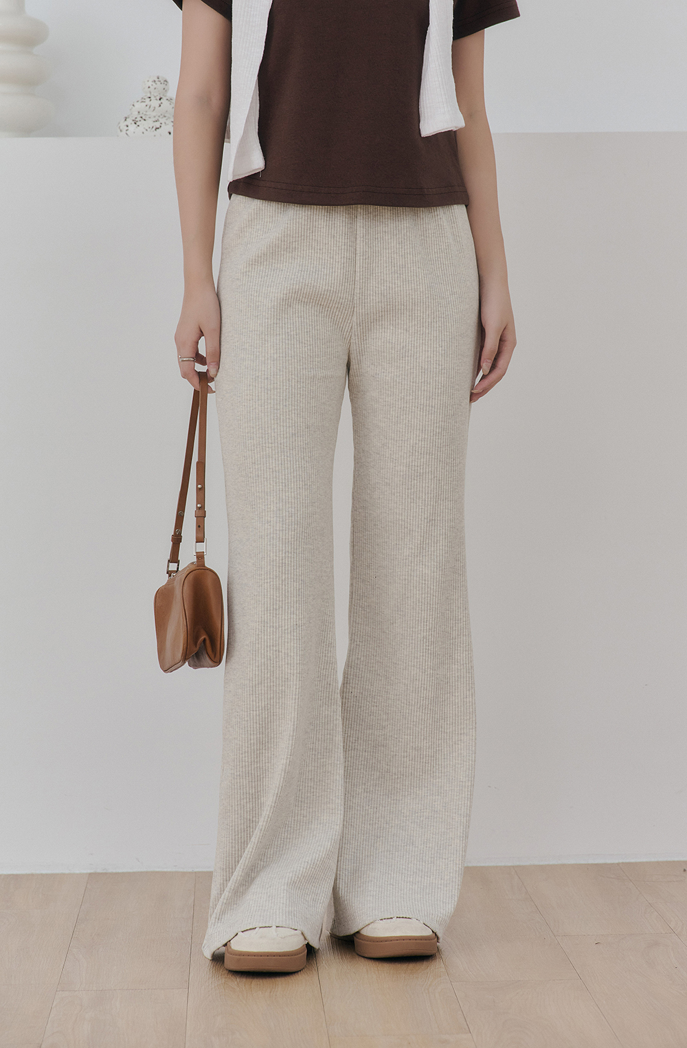 腿比命長 坑條顯瘦鬆緊喇叭褲