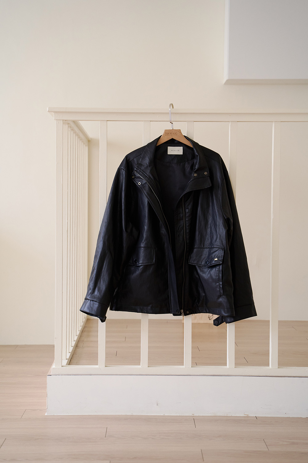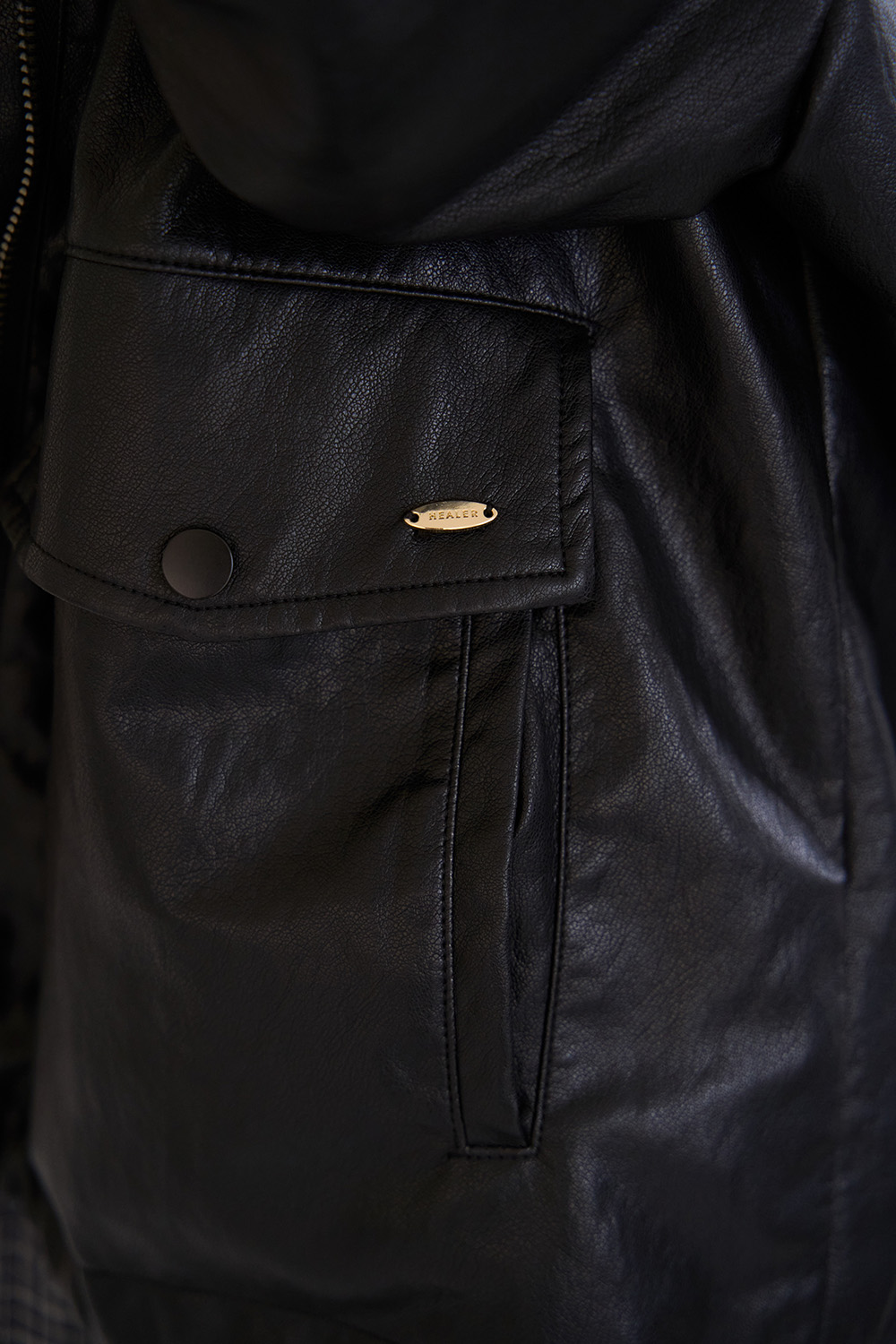 HEALER Made 最強皮外 立領抽繩質感皮外套