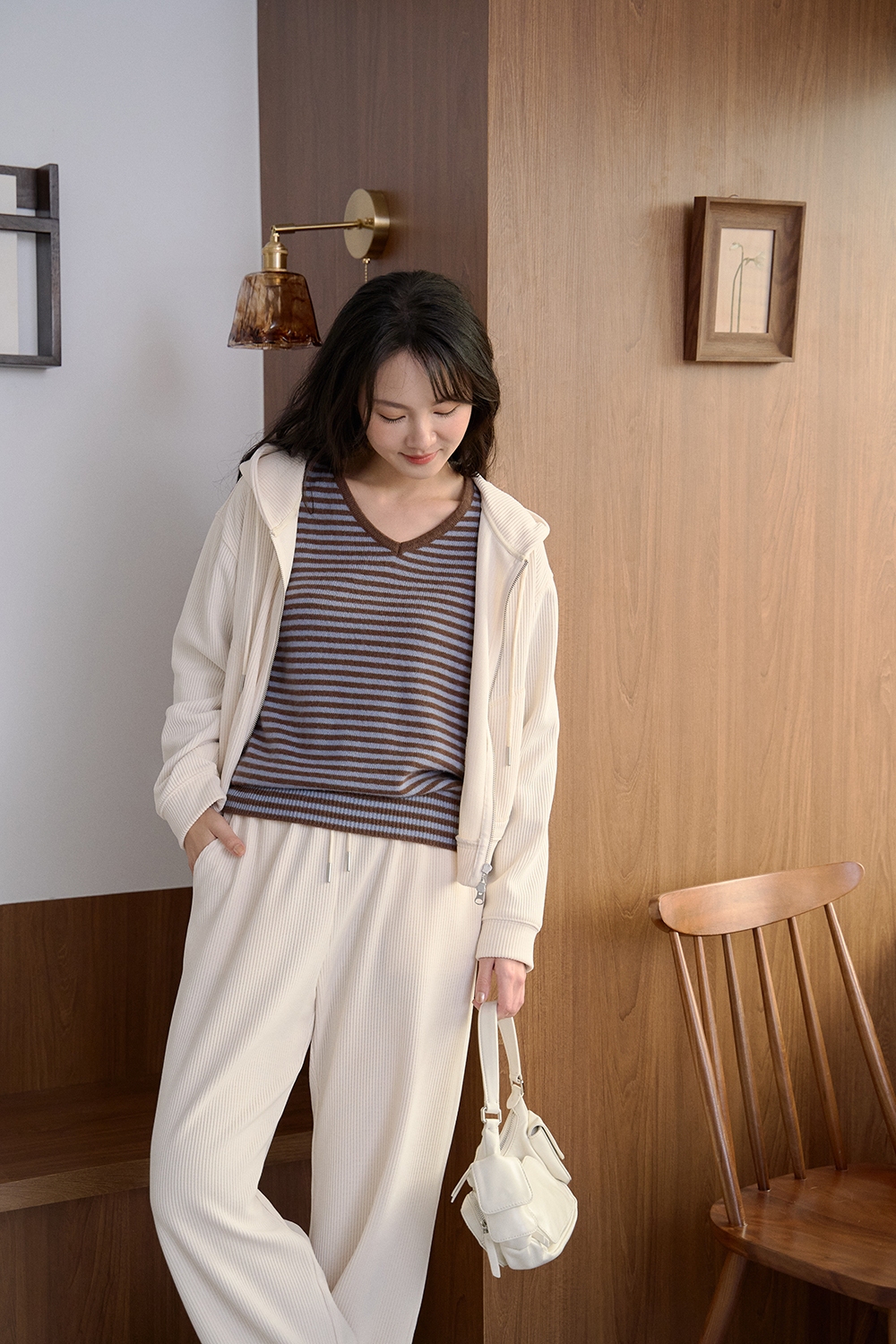 它的V領露出裡面那件的層次感穿搭也是極好看!