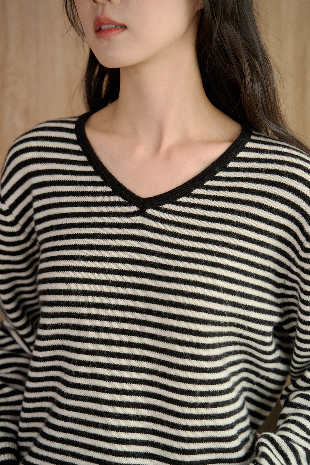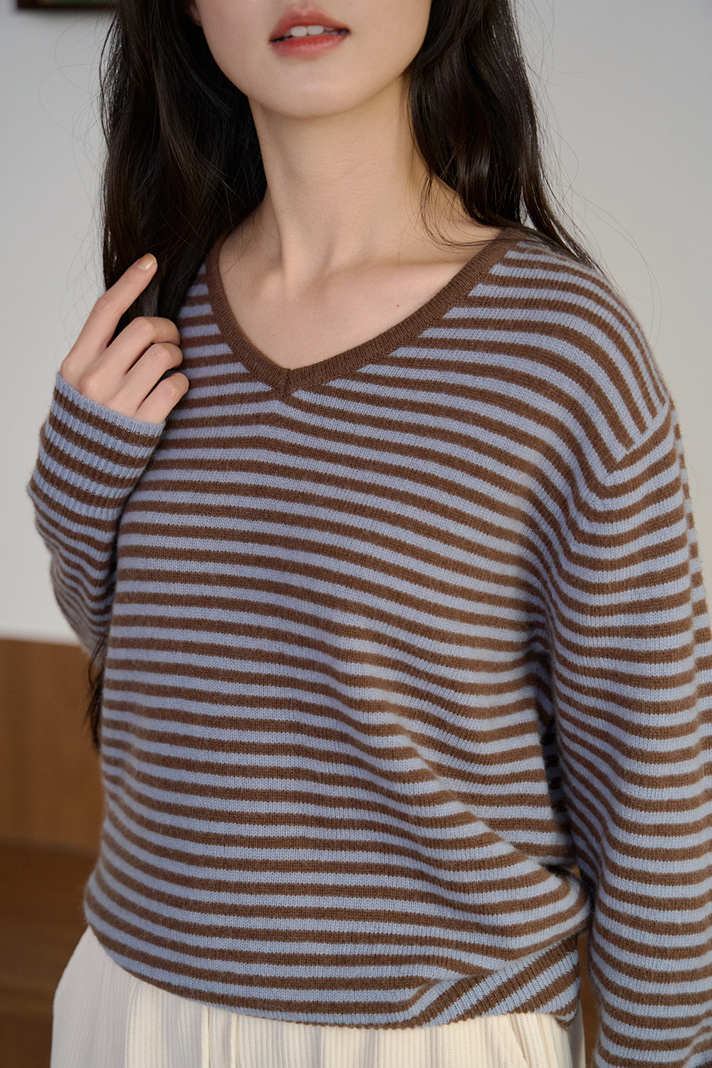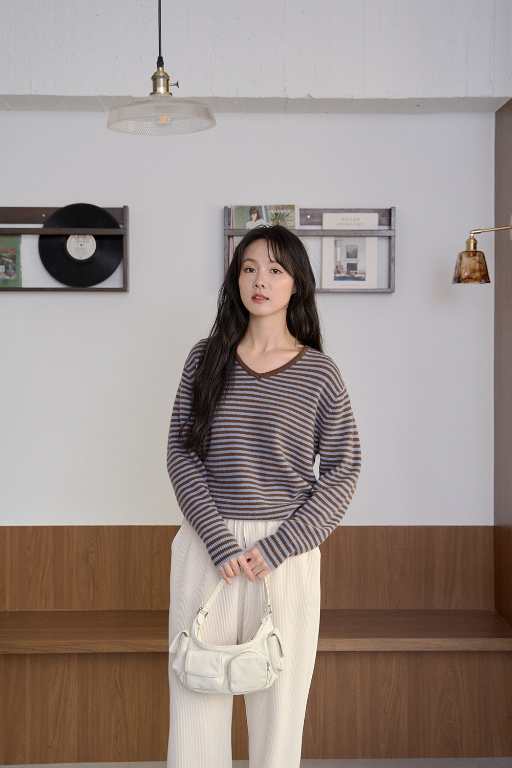 抹醬三明治 細條紋V領針織衫