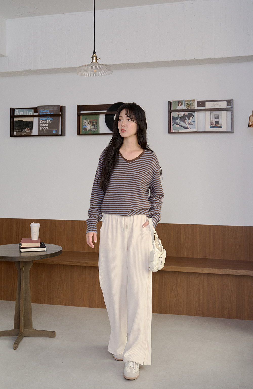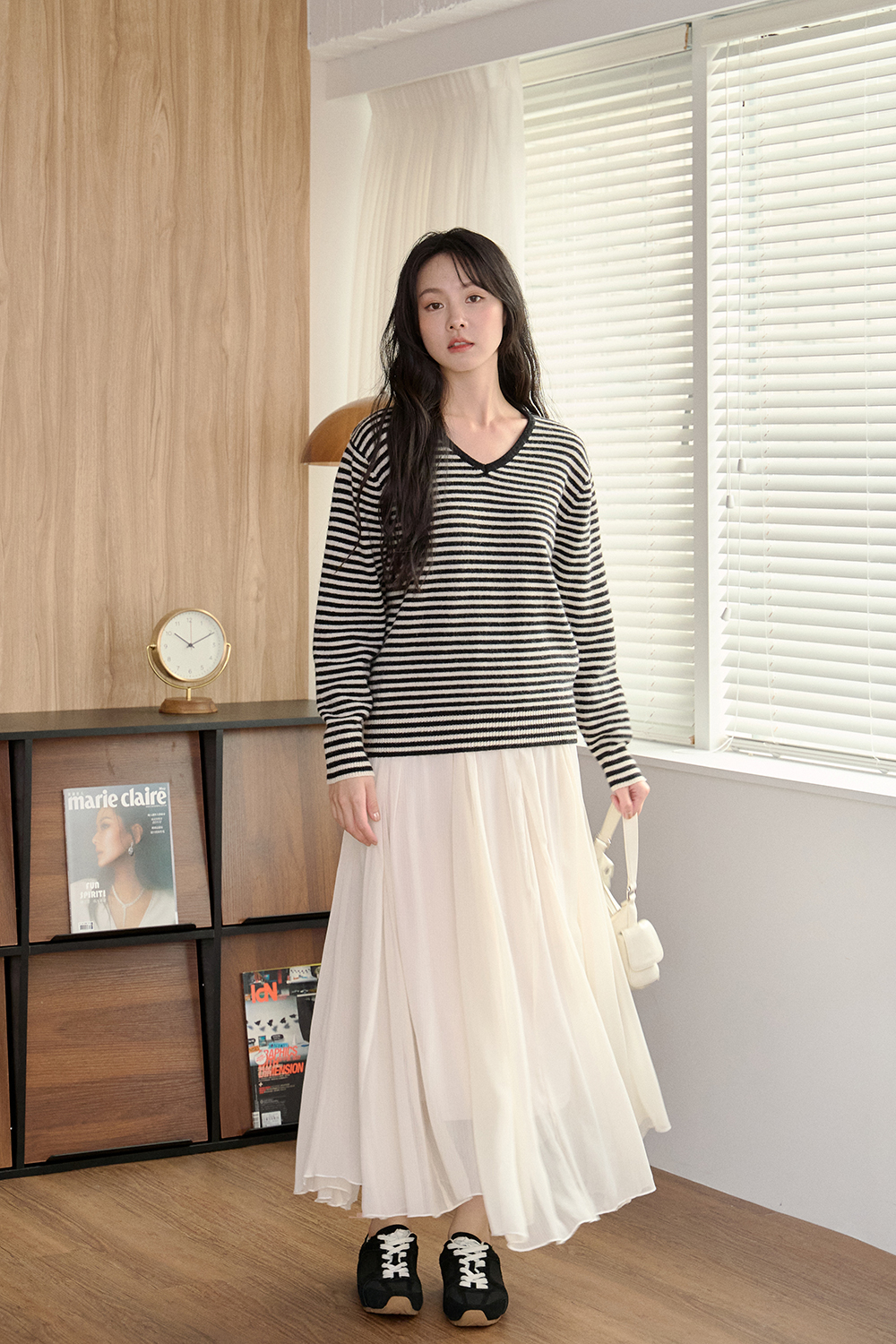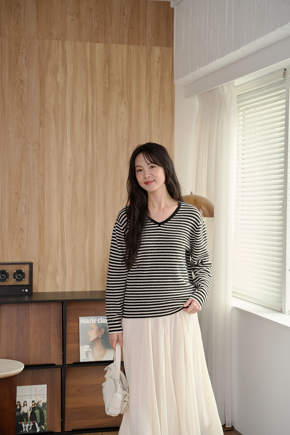 抹醬三明治 細條紋V領針織衫