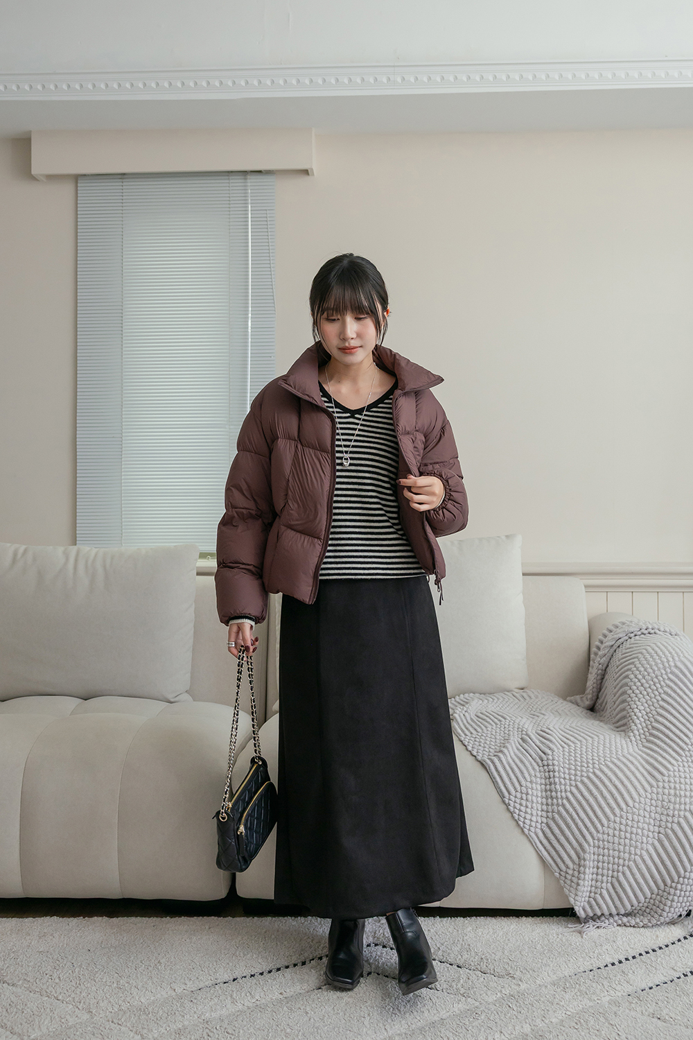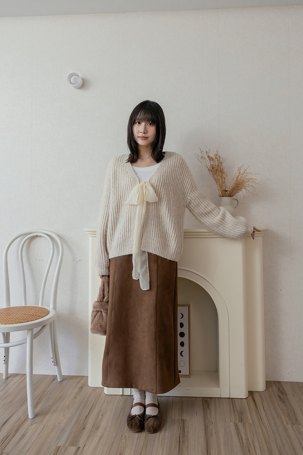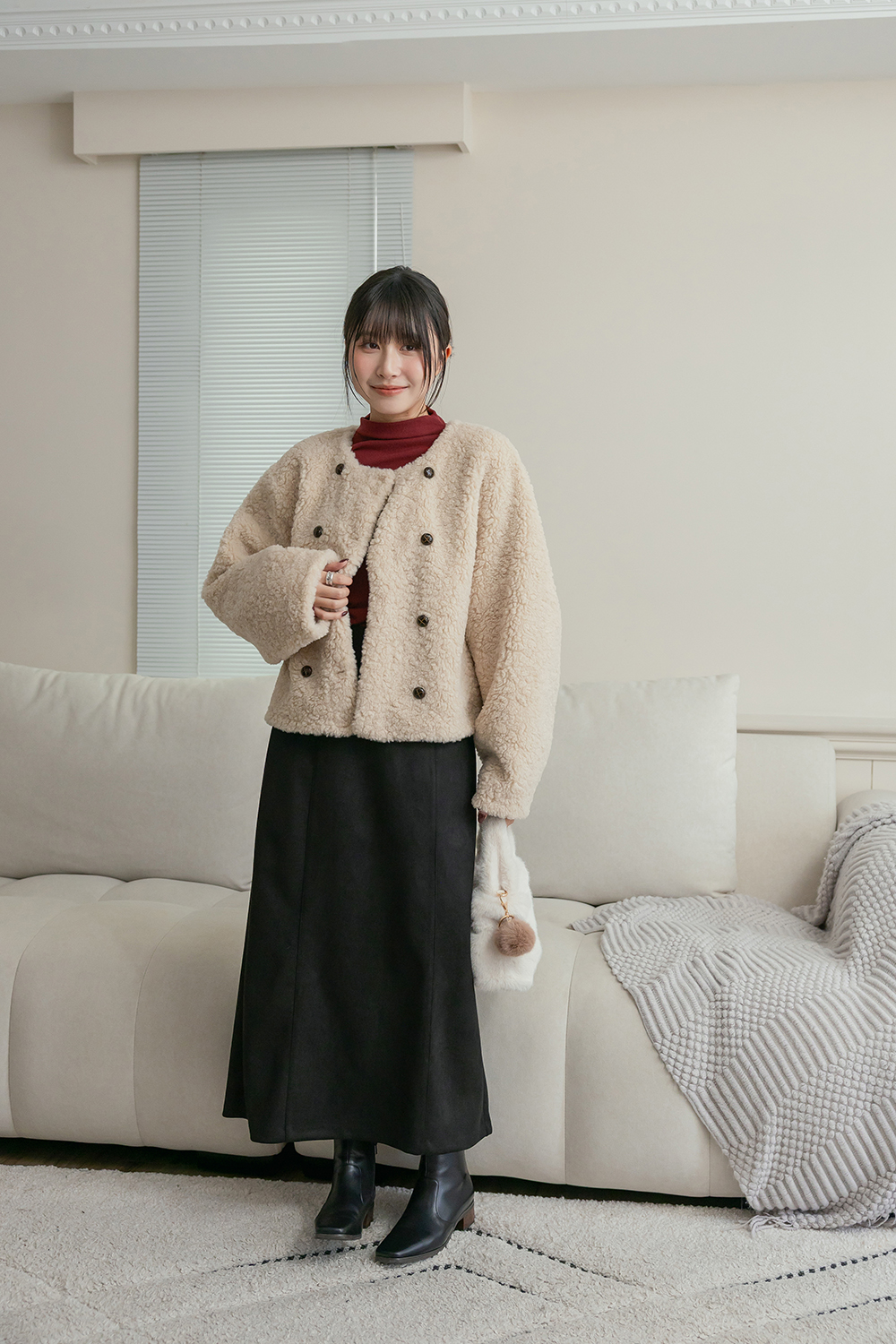 布料摸起來是微微絨感 很有秋冬氛圍 穿起來舒服又輕盈 🤎
