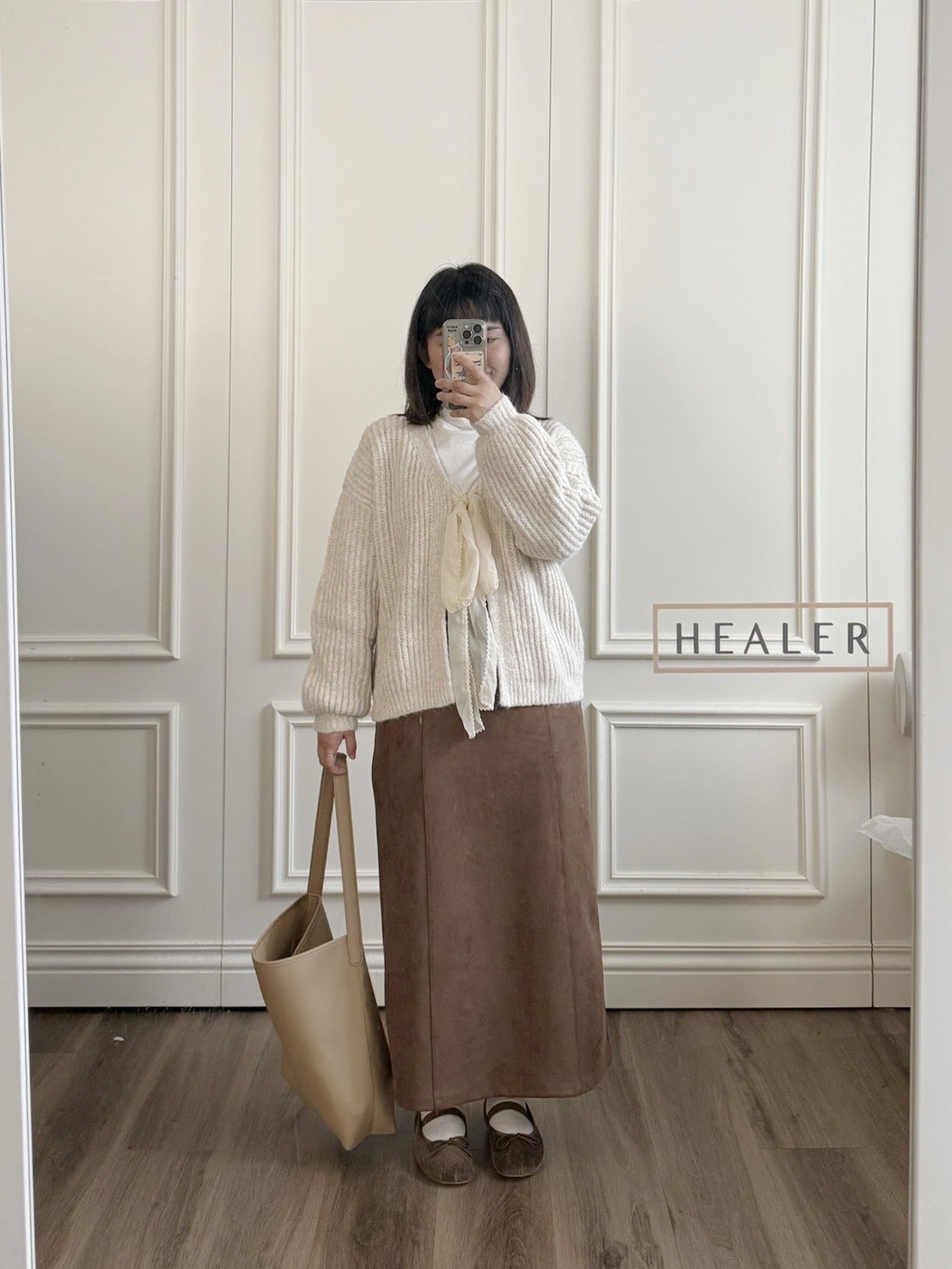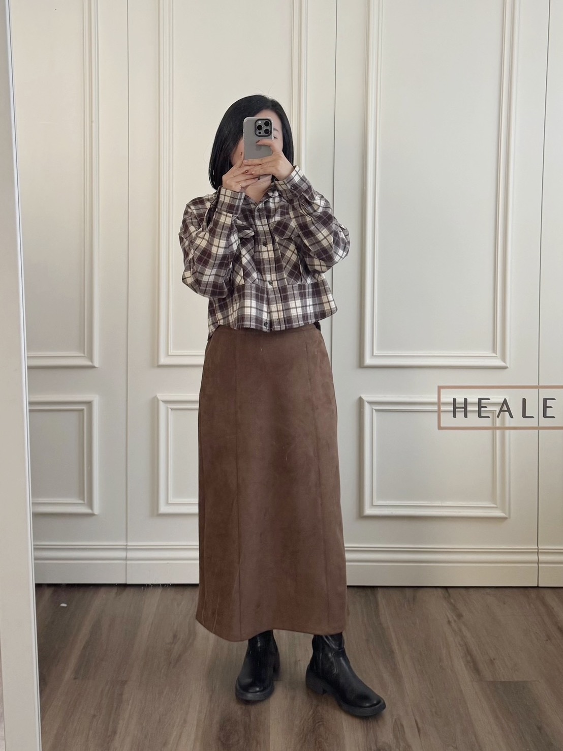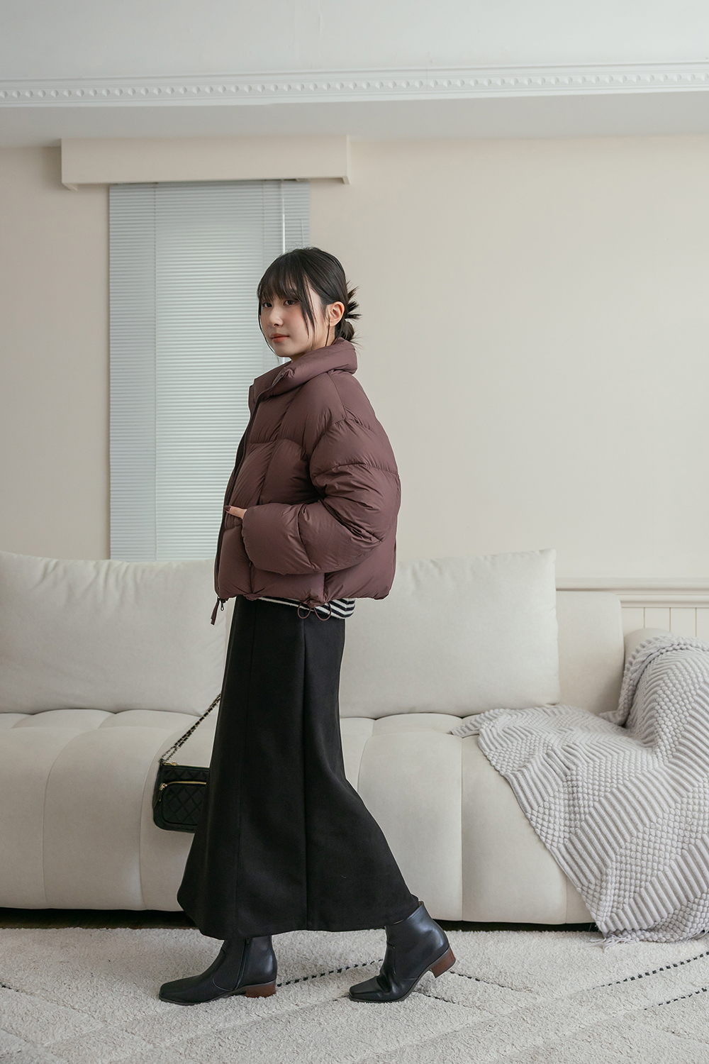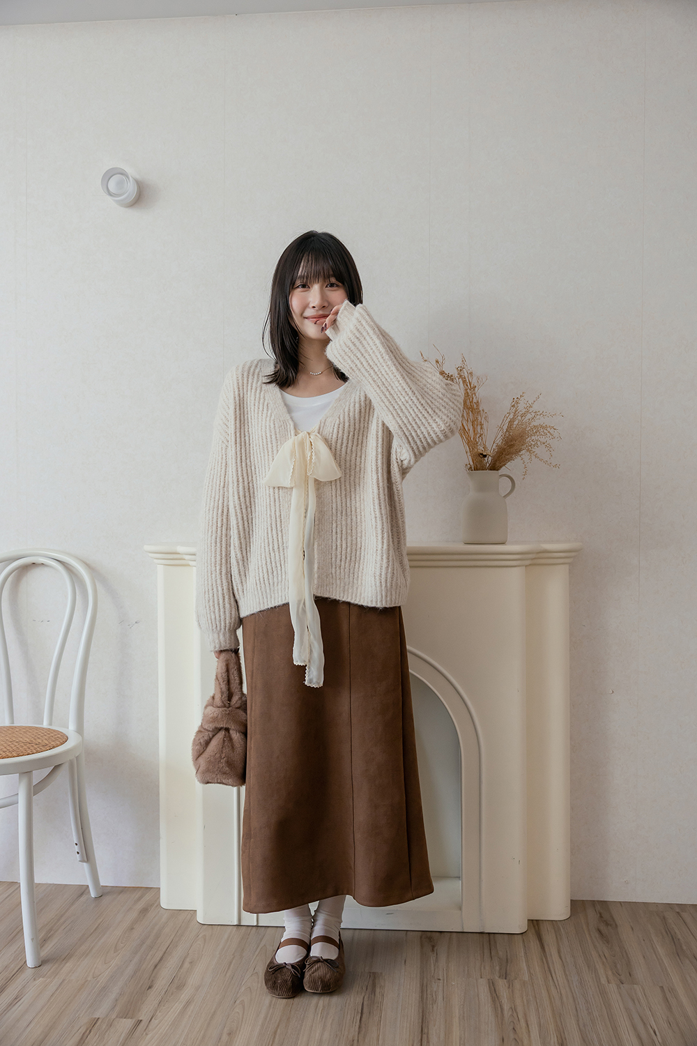 布料摸起來是微微絨感 很有秋冬氛圍 穿起來舒服又輕盈 🤎