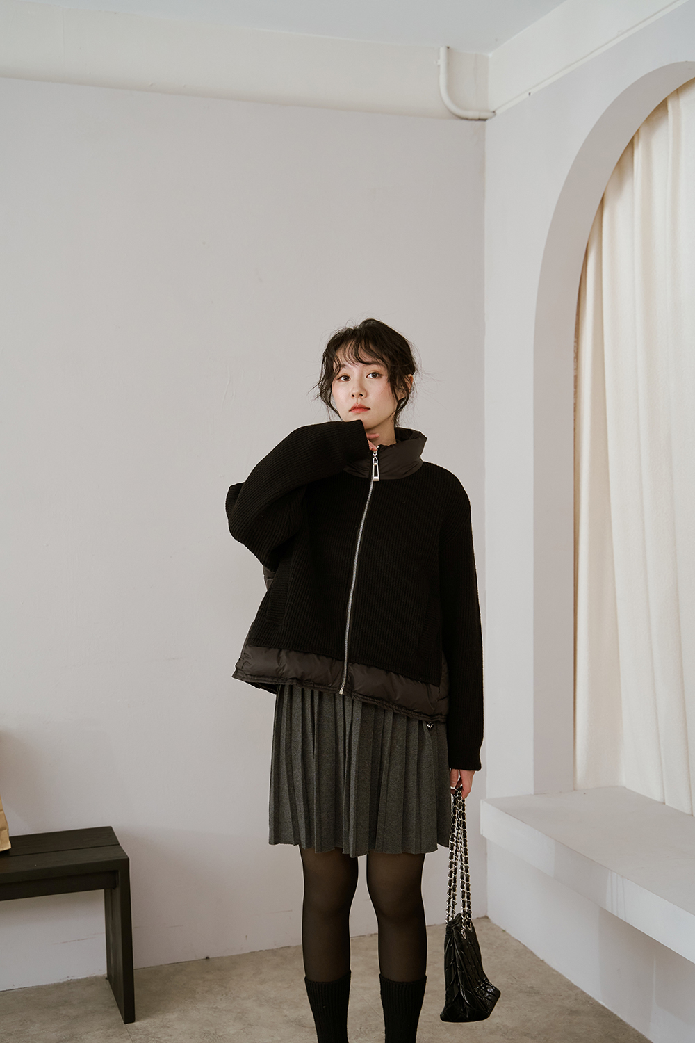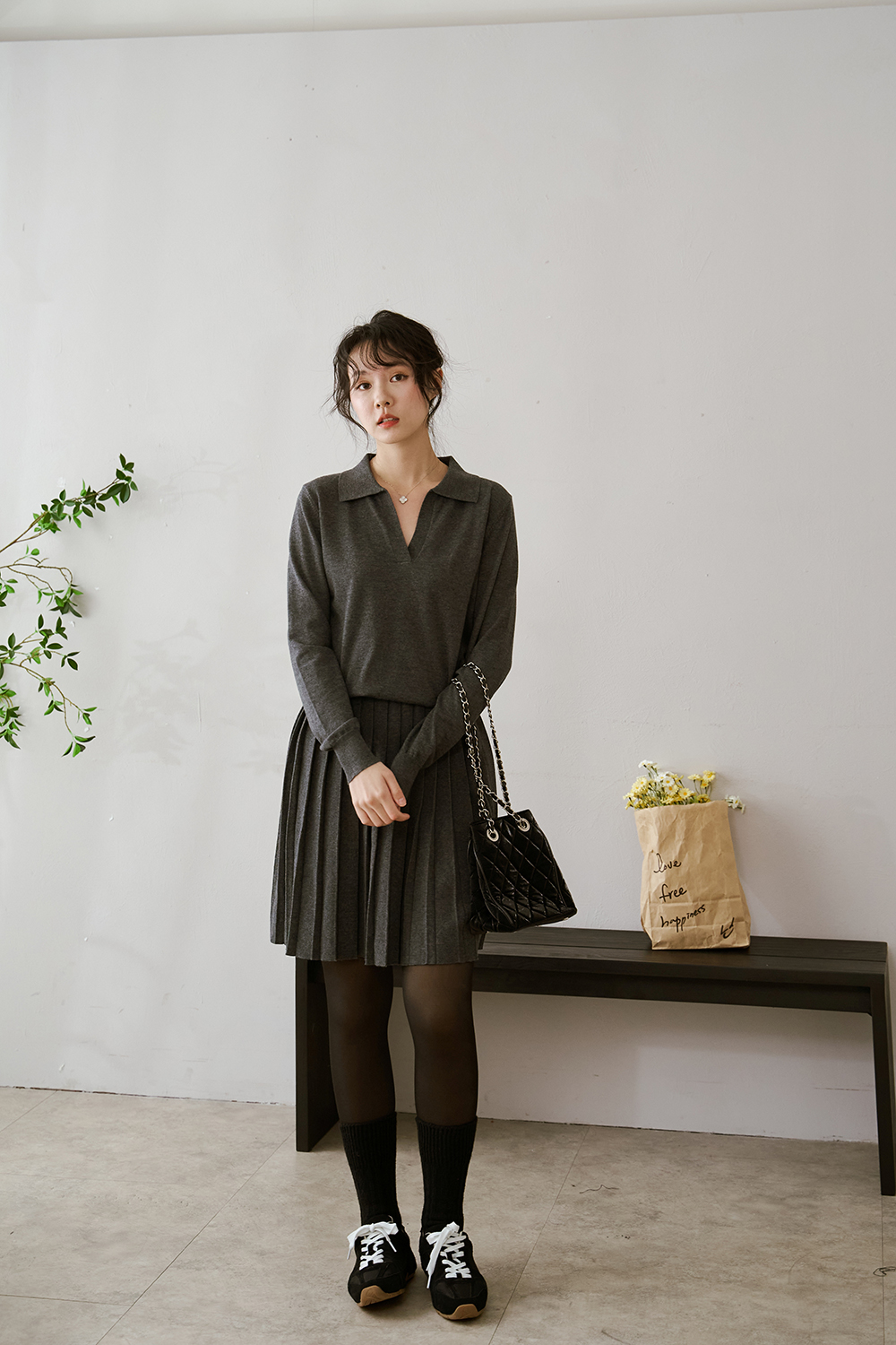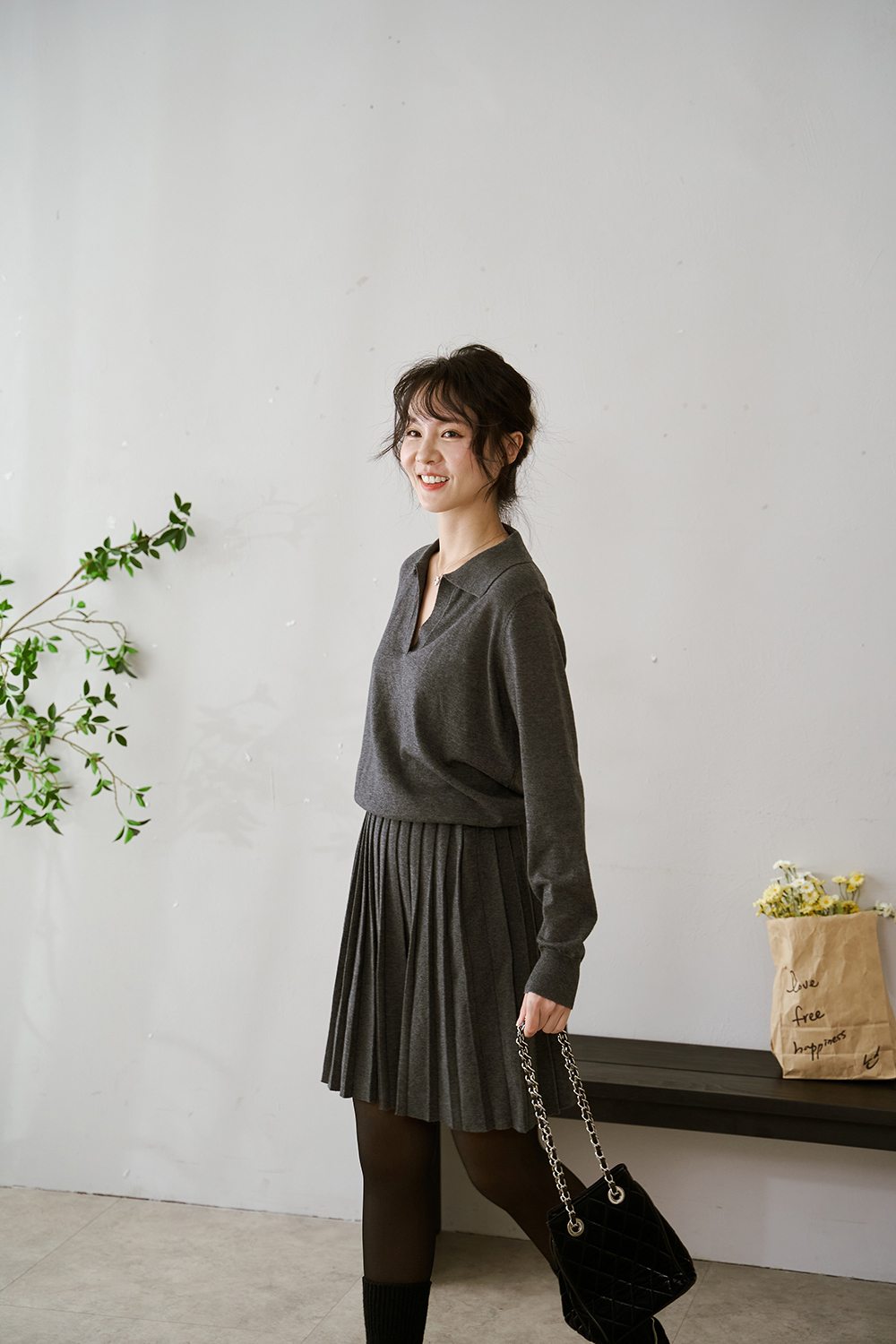 下身百褶裙 整體線條自然垂墜 修飾身形