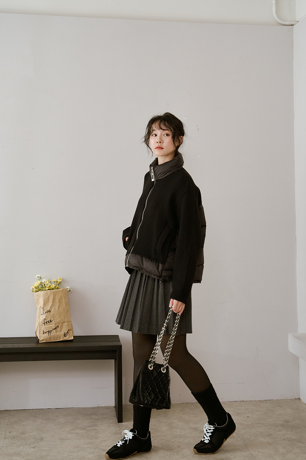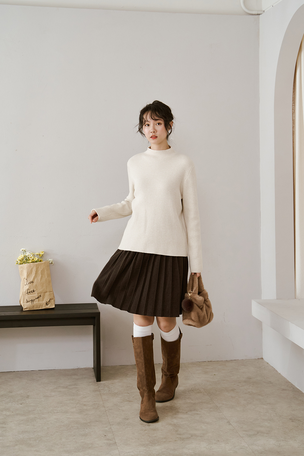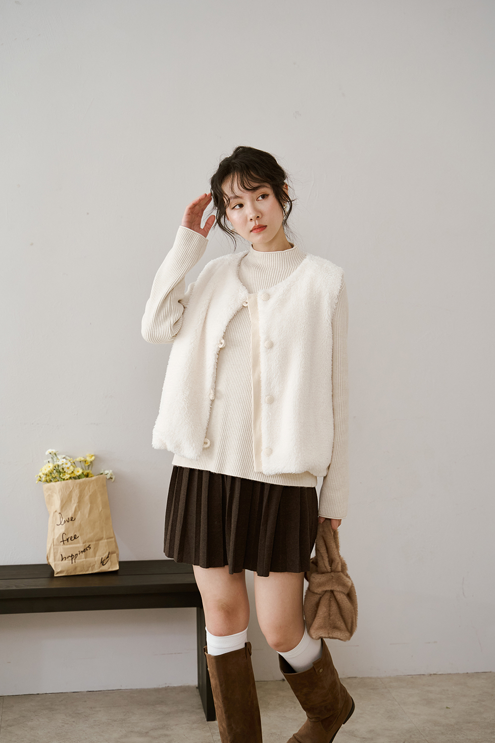 下身百褶裙 整體線條自然垂墜 修飾身形