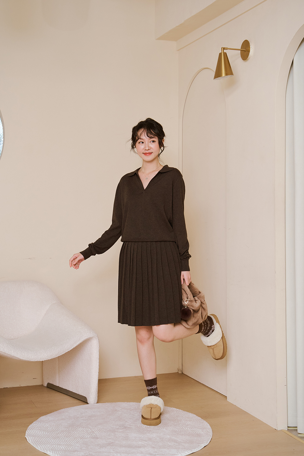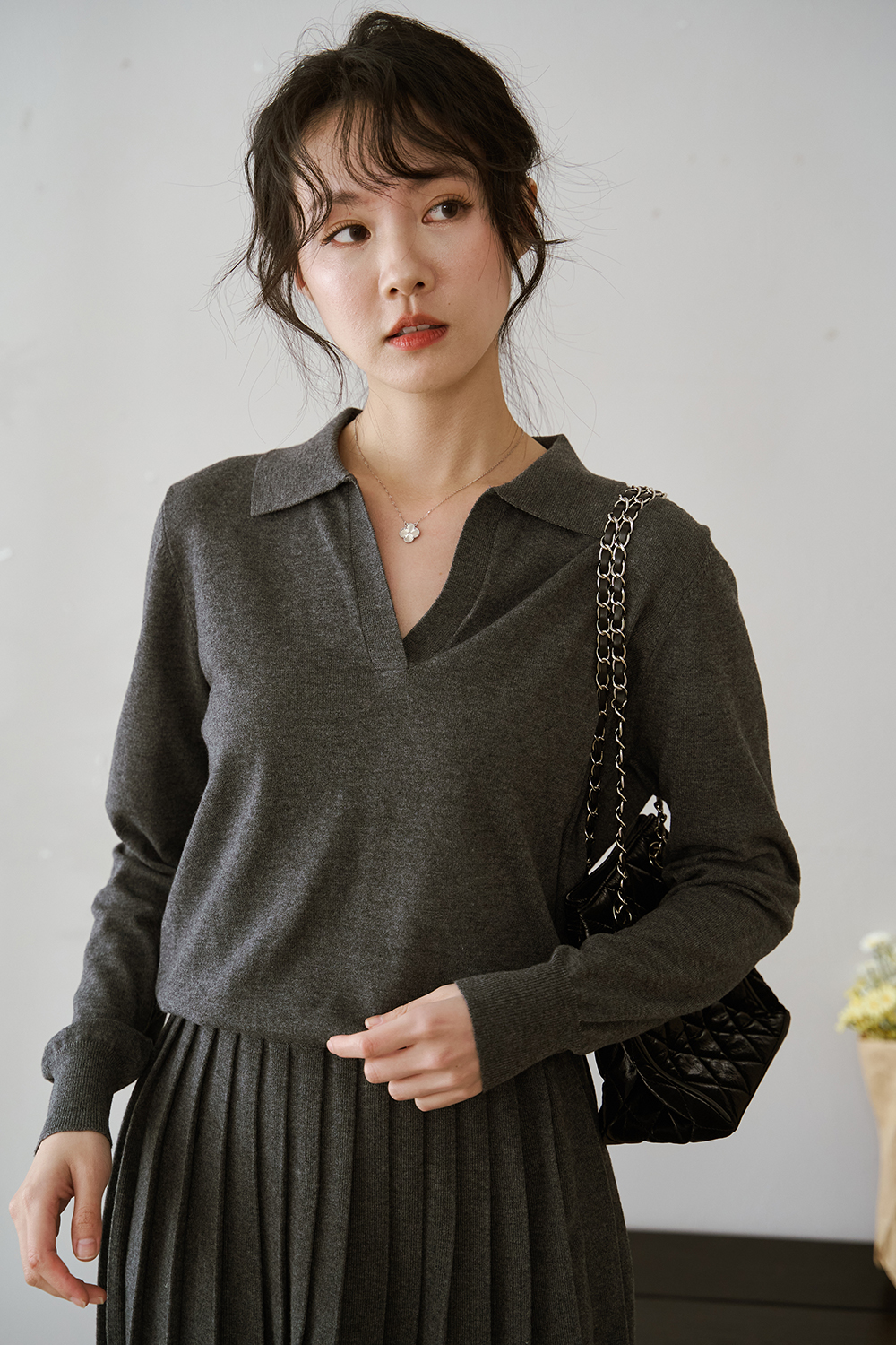約會五分鐘 翻領針織衫+百褶裙SET